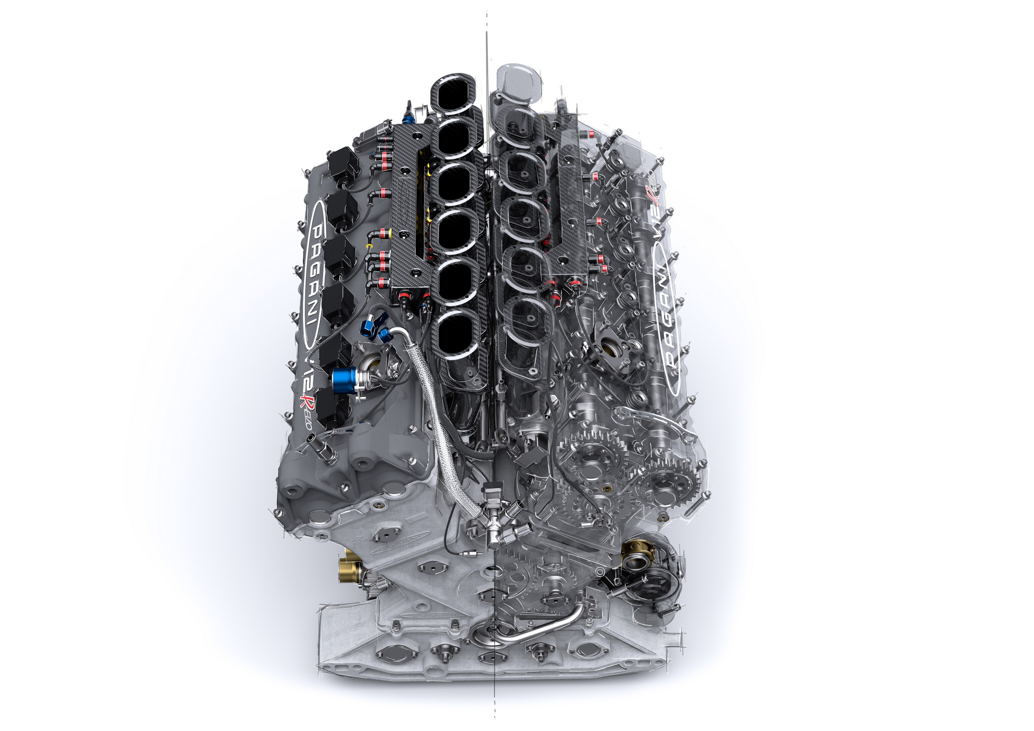 ขุมพลังแบบ V12-R EVO ขนาด 6.0 ลิตร N/A ที่อัพเกรดขึ้นไปจาก Huayra R รีดกำลังได้ถึง 900 แรงม้า ที่ 8,750 รอบ/นาที แรงบิดสูงสุด 770 นิวตันเมตร ที่ 5,800-8,200 รอบ/นาที ลากรอบได้สุด 9,200 รอบ เกียร์เป็นแบบ 6 สปีด ซีเควนเซียล ทำเฉพาะใน Huayra ตัวแข่ง ฉับไวแถมเบาเพียง 80 กก. เท่านั้น ชิ้นส่วนสำคัญอื่นๆ ก็ปรับปรุงด้วย ตั้งแต่ท่อร่วมไอดี ได้รับการปรับให้เหมาะสมด้วยการออกแบบทรัมเป็ตใหม่และเพลาลูกเบี้ยวใหม่เพื่อเพิ่มประสิทธิภาพกระบวนการดูดอากาศ ระบบไอเสียก็ปรับค่าเพิ่มประสิทธิภาพและเสียงที่โหดขึ้น