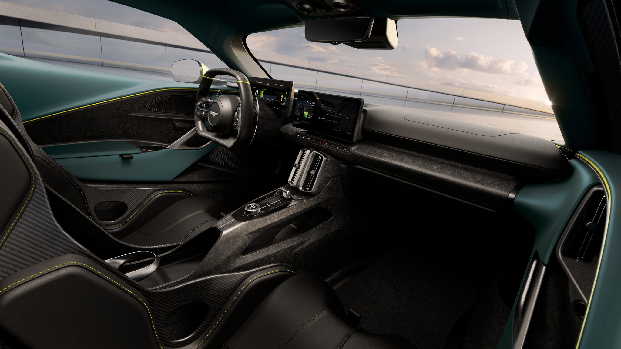 ห้องโดยสารเป็นงานออกแบบใหม่ดุดันแต่ไม่ละทิ้งความหรูหรา จอหน้าปัดคนขับดิจิตอลขนาด 10.25 นิ้ว จอสัมผัสอินโฟเทนเมนต์กลางขนาด 10.25 นิ้ว สองจอนี้แสดงข้อมูลต่างๆ ของตัวรถได้อย่างละเอียดยิบซึ่งทำมาเฉพาะ Valhalla เบาะนั่งคาร์บอนไฟเบอร์ชิ้นเดียวจัดตำแหน่งนั่งคนขับสไตล์รถแข่ง F1 สุนทรีย์ไปกับระบบเสียงรอบทิศทาง Bowers & Wilkins 14 ลำโพง กำลังขับ 745 วัตต์