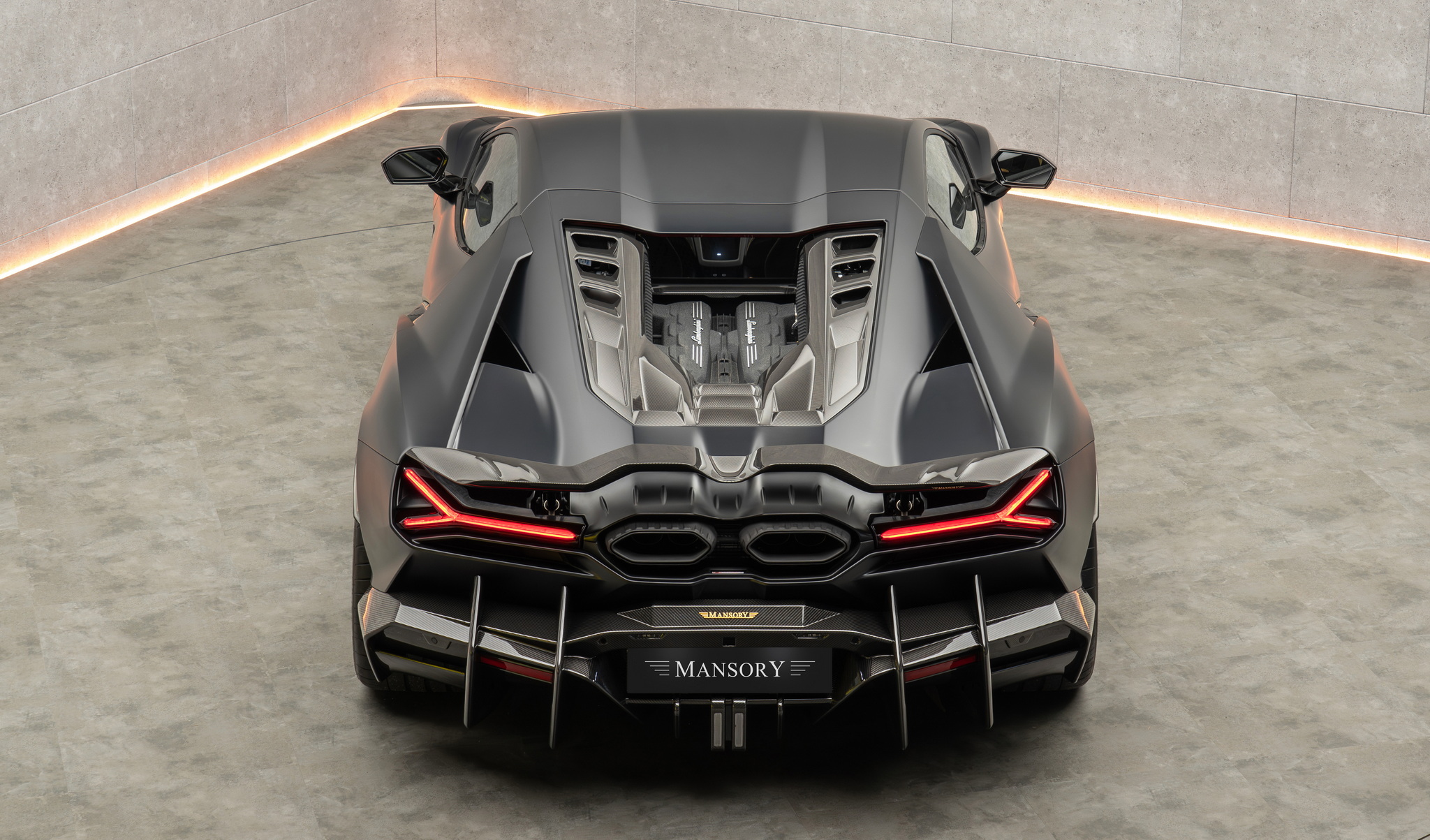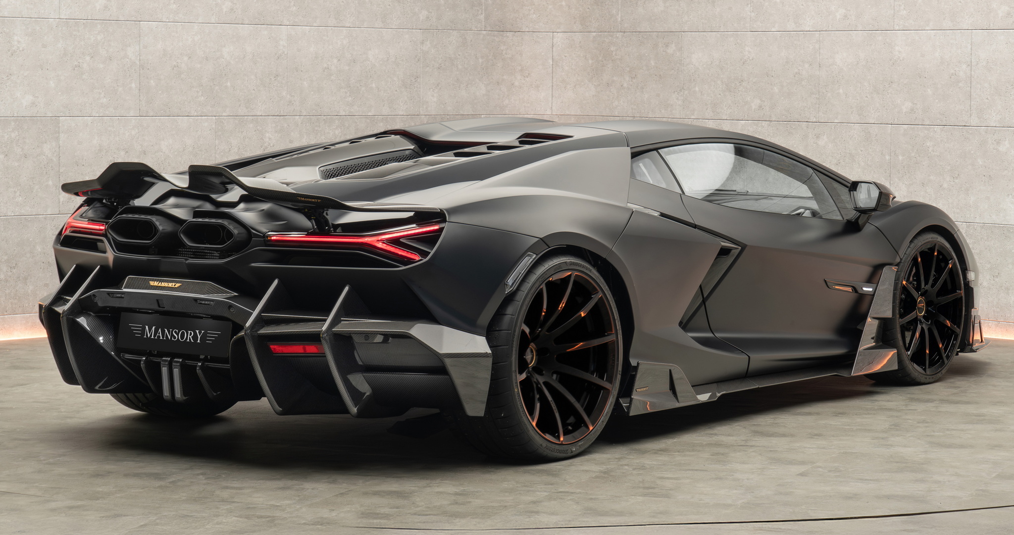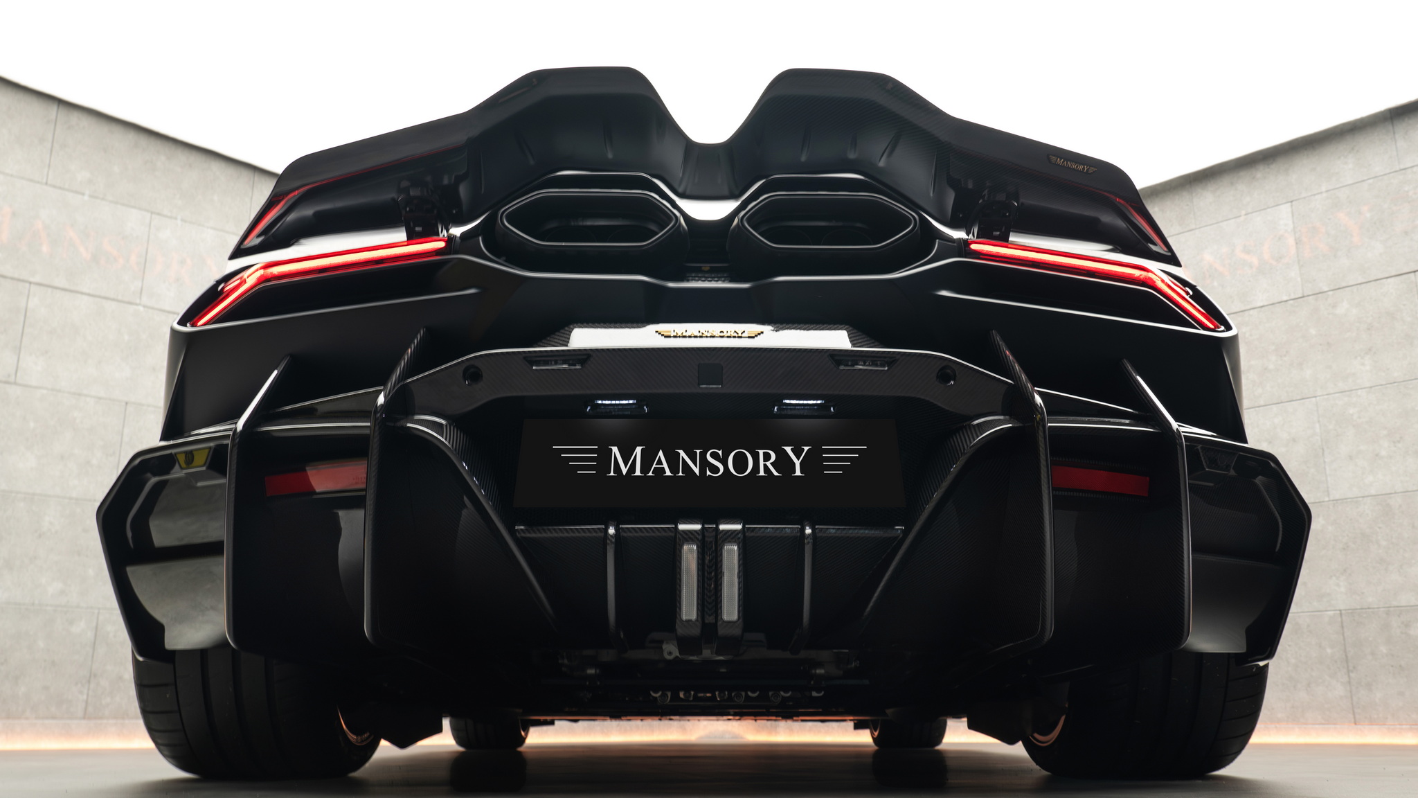 Mansory ปรับแต่ง Revuelto แบบรอบคันพัฒนาชิ้นส่วนใหม่เป็นคาร์บอนไฟเบอร์ทั้งหมด ดุดันขึ้นพร้อมแรงกดที่เพิ่มขึ้น มีลิ้นสปอยเลอร์หน้า ฝากระโปรงหน้าใหม่ สเกิร์ตข้างดีไซน์มีครีบจัดเรียงอากาศซุ้มล้อหน้า ล้อเบาพิเศษลาย FV.10 หน้าขอบ 21 นิ้ว หลังขอบ 22 นิ้ว หุ้มยางสมรรถนะสูงขนาด 265/30 ZR21 และ 355/25ZR22 บั้นท้ายติดตั้งดิฟฟิวเซอร์ชุดใหม่และปีกท้ายคาร์บอนไฟเบอร์ช่วยมอบประสิทธิภาพได้อย่างยอดเยี่ยม ท่อไอเสียยังคงรูปลักษณ์เดิมไว้