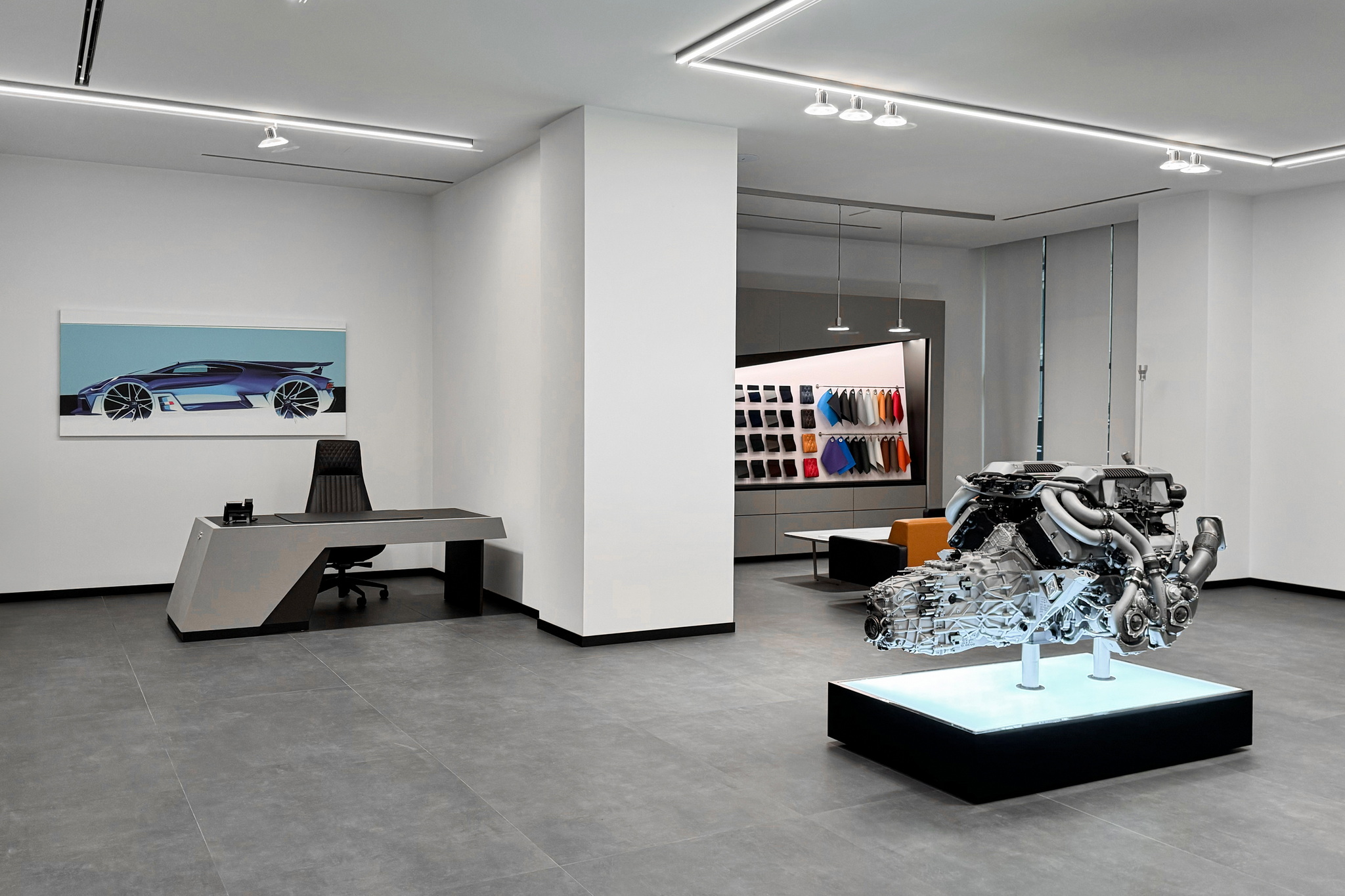 Bugatti Baku โชว์รูมแห่งล่าสุดและถือเป็นโชว์รูม Bugatti ที่ใหญ่ที่สุดในโลก อยู่ใจกลางเมืองบากู ประเทศอาเซอร์ไบจาน ซึ่งตั้งอยู่บนชายฝั่งตะวันตกของทะเลคาสเปียนในภูมิภาคคอเคซัส (Caucasus) ของเอเชียตะวันตก