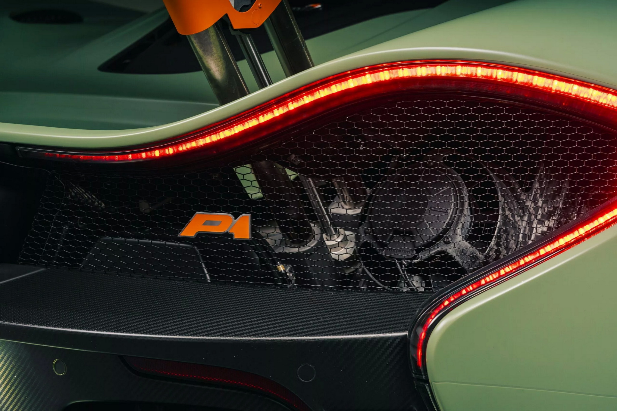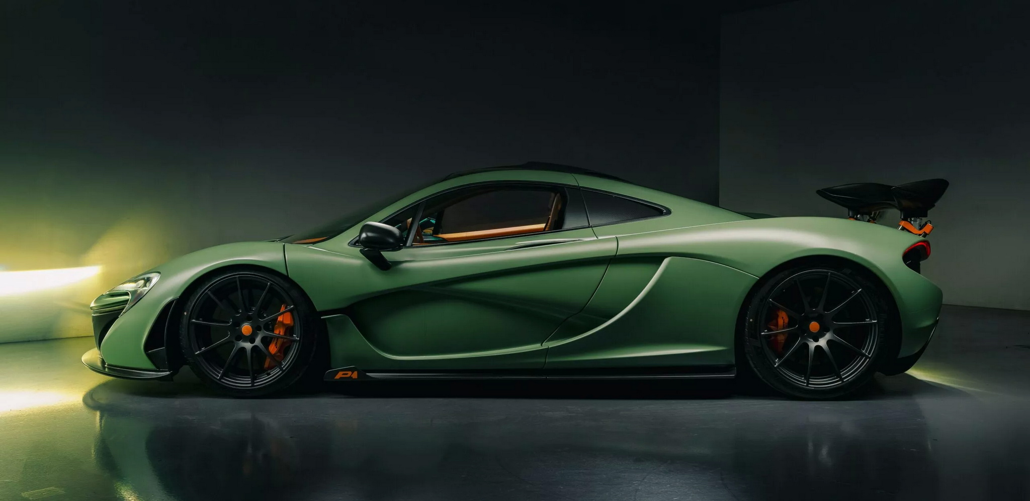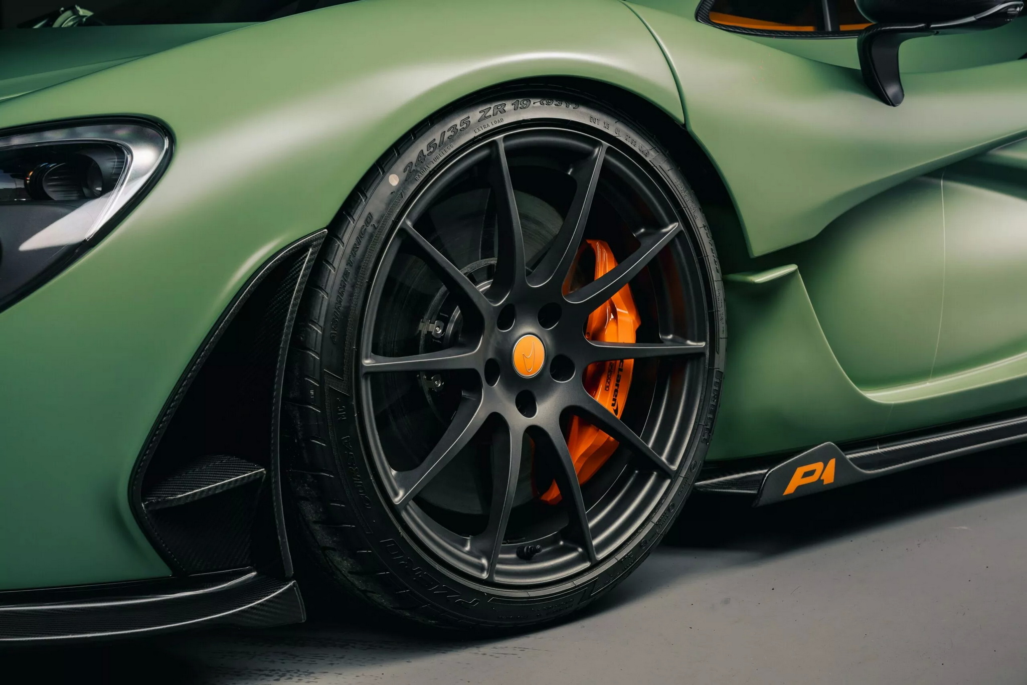McLaren P1 ผลิตออกมาเพียง 375 คันในโลก นี่คือหนึ่งใน P1 ที่หายากสุดๆ ด้วยตัวถังภายนอกสีเขียวด้านดั้งเดิมจากโรงงาน โดดเด่นยิ่งขึ้นด้วยการใช้สีส้ม McLaren Orange ตามจุดต่างๆ เช่น โลโก้ McLaren บนฝากระโปรงหน้า, โลโก้ P1 สเกิร์ตข้าง, คาลิปเปอร์เบรก, ฝาครอบล้อ, ส่วนบนของกระบอกไฮดรอลิกสปอยเลอร์ท้าย และโลโก้ P1 บนฝาครอบเครื่อง