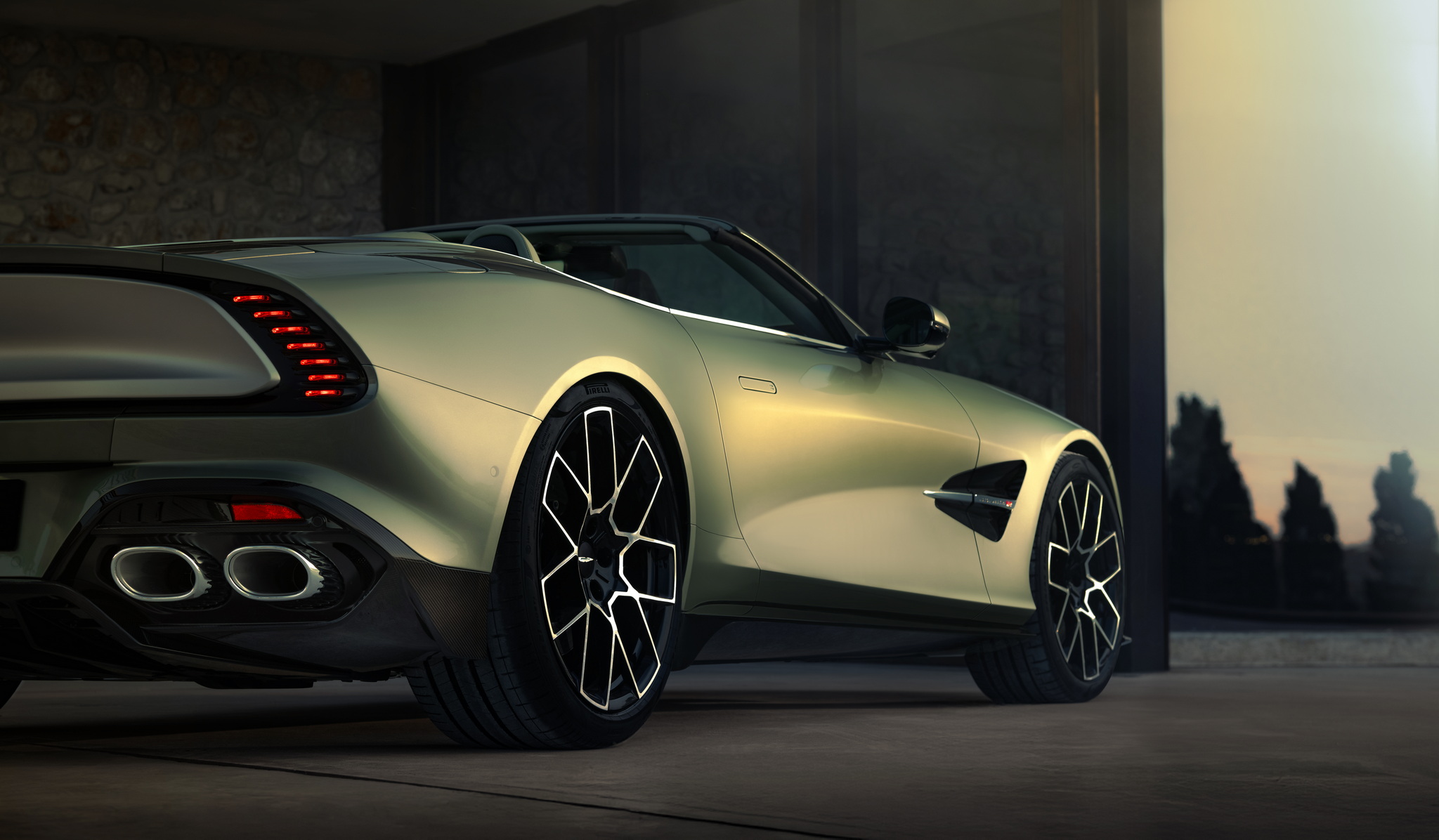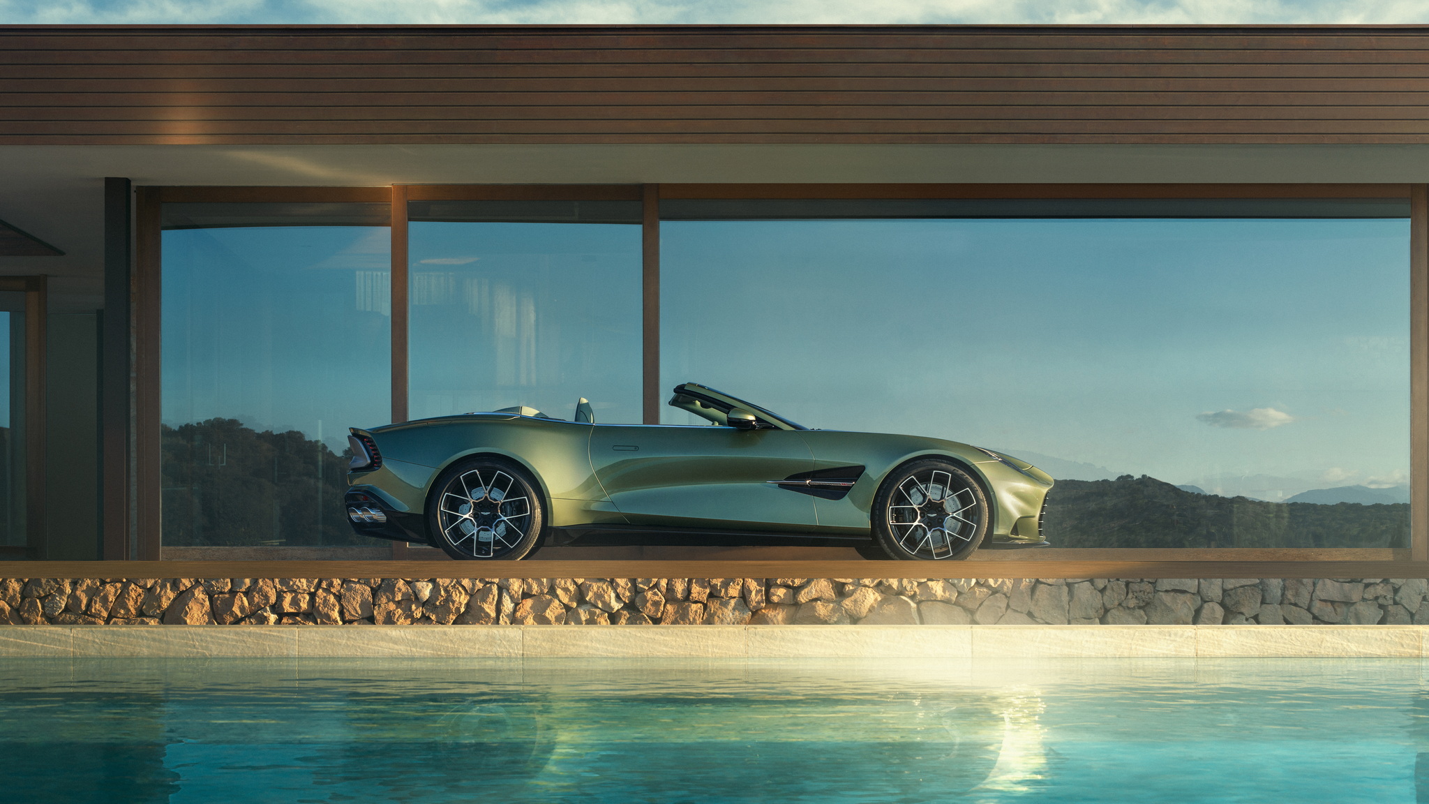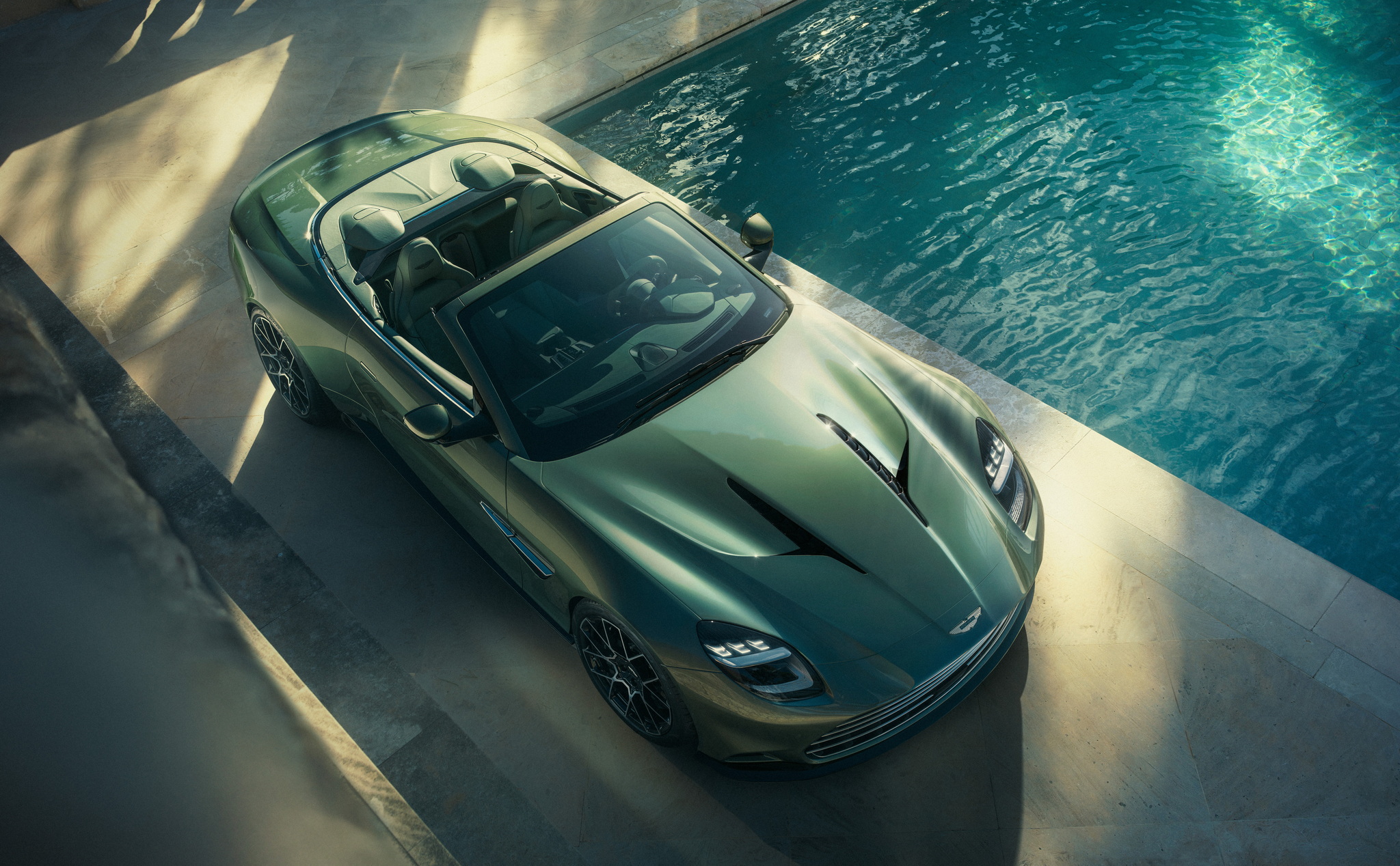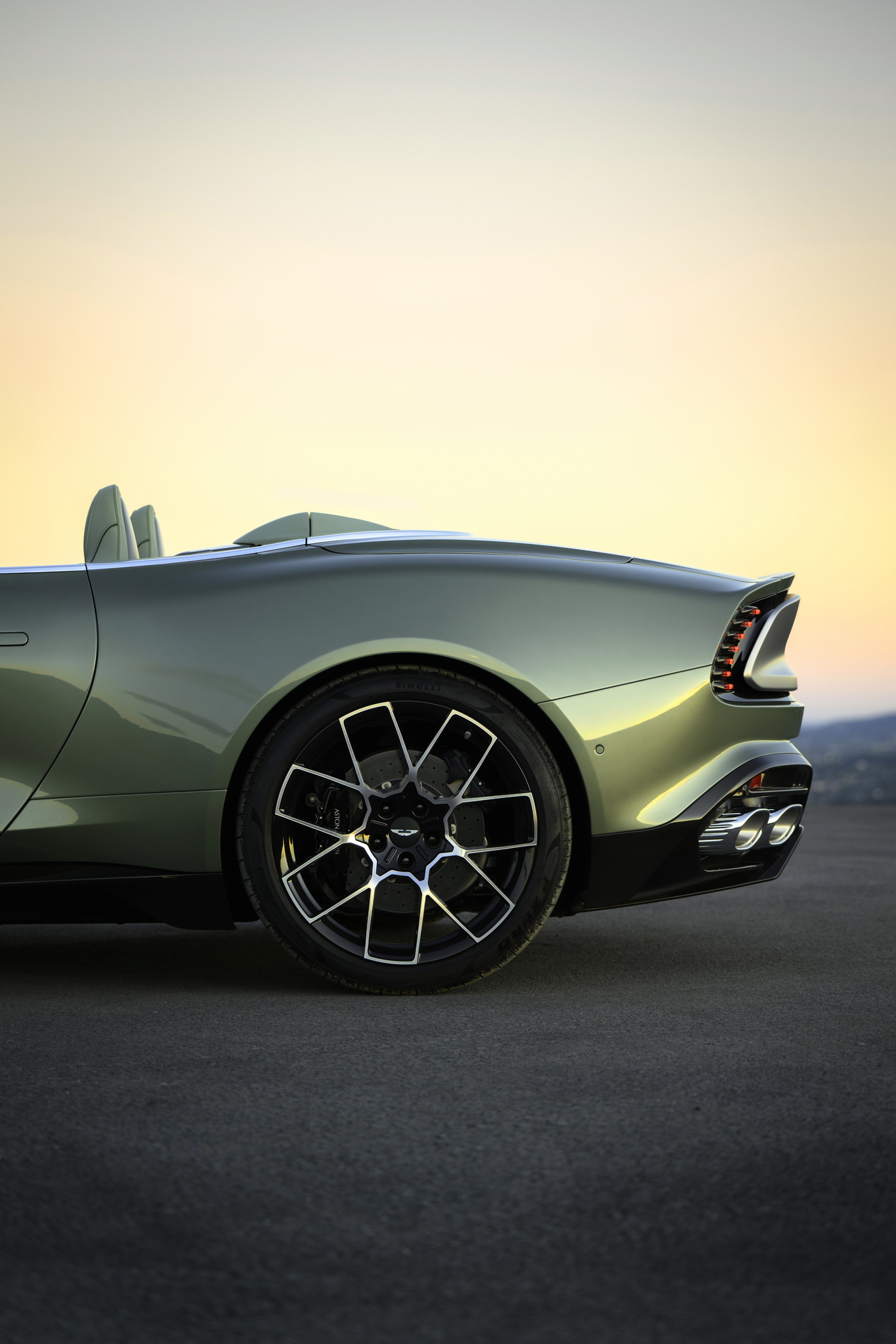 Vanquish Volante เปิดประทุนรุ่นเรือธงล่าสุด ที่ตอนนี้ถือเป็นรถเปิดประทุนเครื่องวางหน้า (Front-engine) ที่เร็วและทรงพลังที่สุดในโลก ตัวรถพัฒนาบนพื้นฐานเดียวกับ Vanquish เวอร์ชั่น Coupe สง่างามด้วยหลังคาผ้าใบ K-fold น้ำหนักเบา เปิดและปิดได้รวดเร็วใน 14 วินาที ทำงานได้ขณะรถวิ่งที่ความเร็วสูงสุด 50 กม./ชม. และเปิดประทุนได้ผ่านรีโมทในรัศมี 2 เมตรจากตัวรถ หลังคาผ้าใบถูกติดตั้งฉนวนหลายชั้นทำให้เรื่องความร้อนและเสียงรบกวนทำได้เยี่ยมเช่นเดียวกับรุ่น Coupe แม้กลไกหลังคาจะทำให้รถหนักขึ้นแต่ก็เพิ่มเพียง 95 กิโลกรัม เท่านั้น