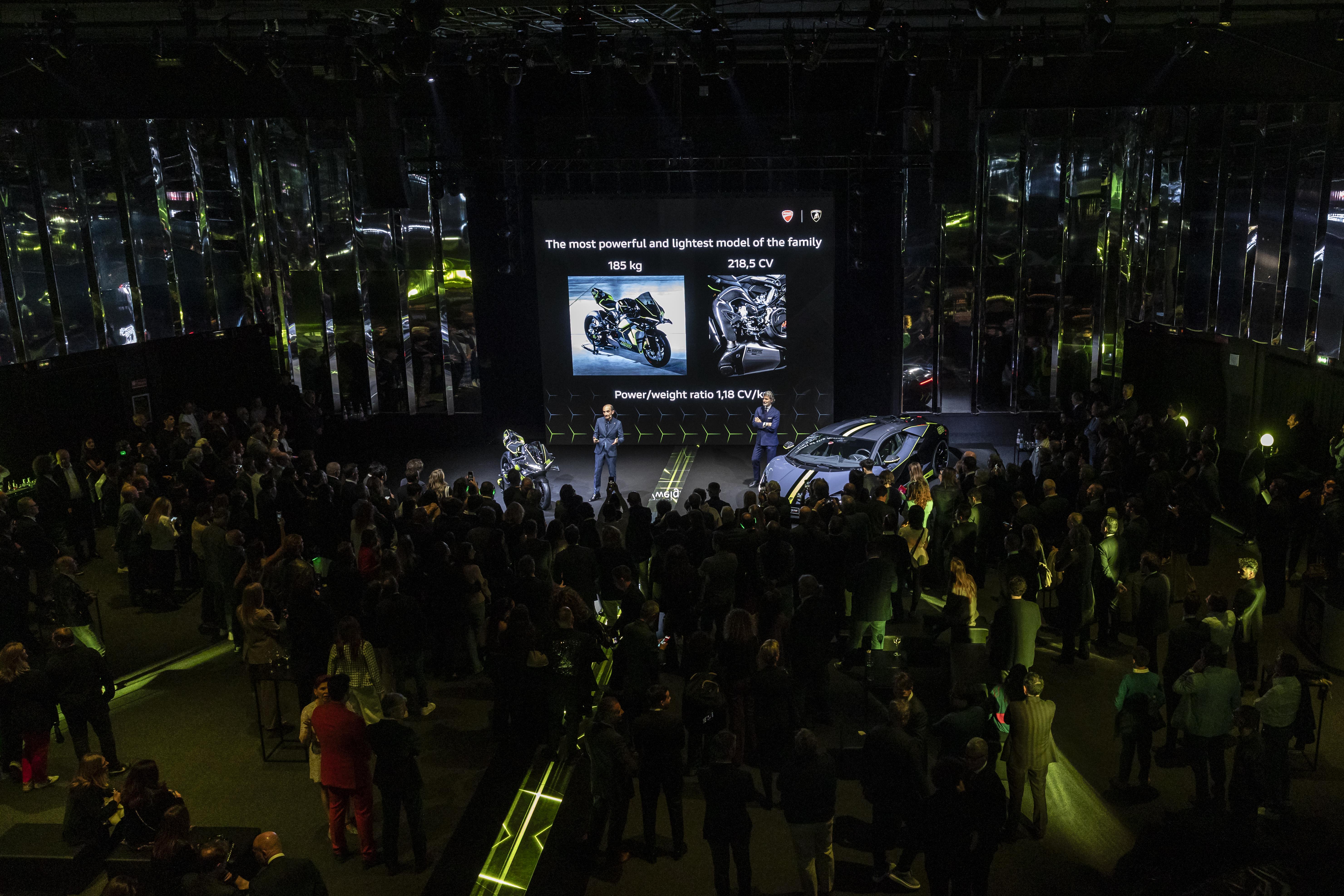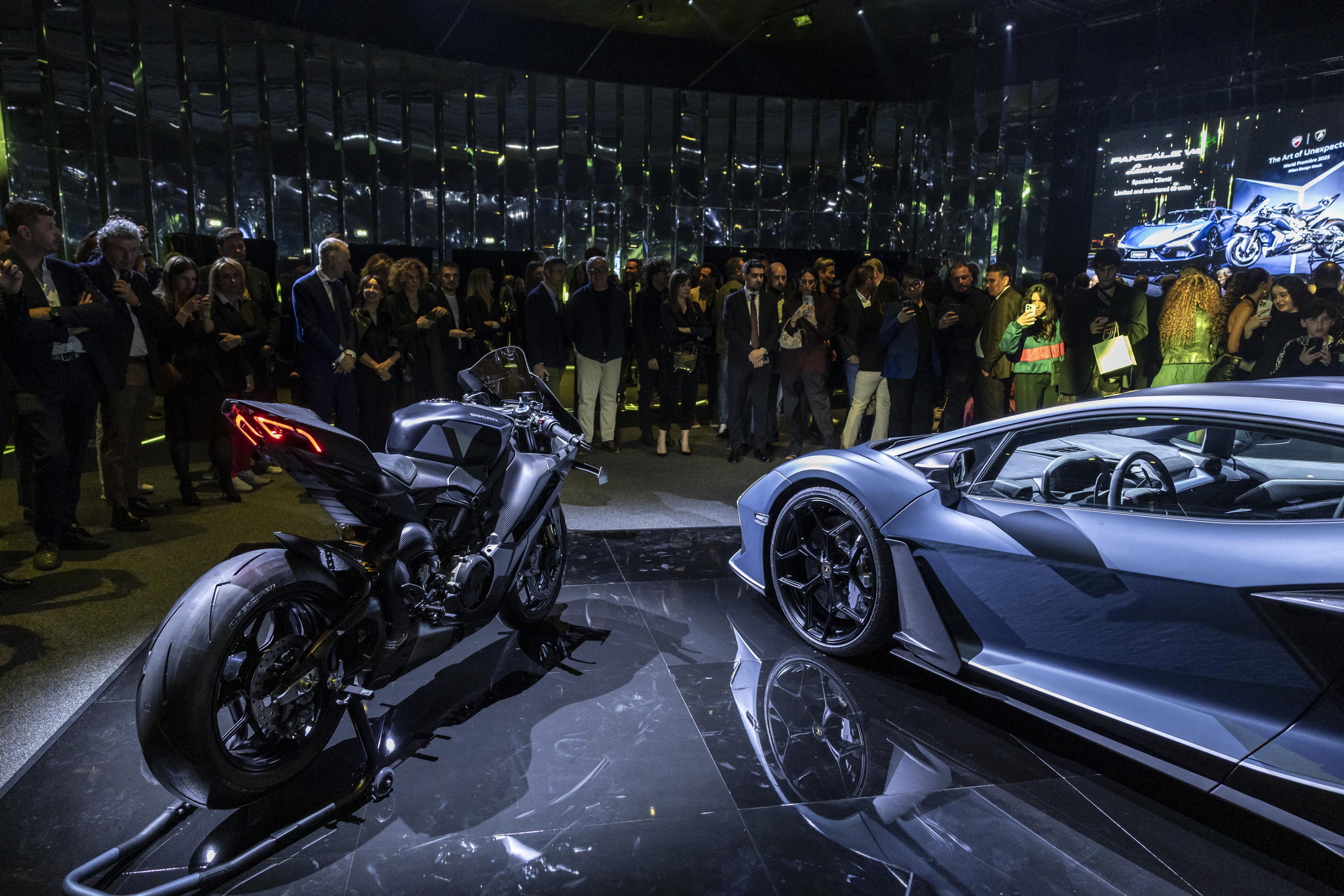 นี่คือความร่วมมือกันครั้งที่ 3 ระหว่าง Lamborghini และ Ducati สองแบรนด์ตำนานจากอิตาลี ครั้งนี้ได้นำ Ducati Panigale V4 Lamborghini ซุปเปอร์ไบค์เจเนอเรชันล่าสุดตัวพิเศษแรงบันดาลใจจากกระทิงดุรุ่นใหญ่ Revuelto พร้อมกันนี้ในงานยังมี Revuelto ที่ตกแต่งมาพิเศษเข้าคู่กันด้วย
