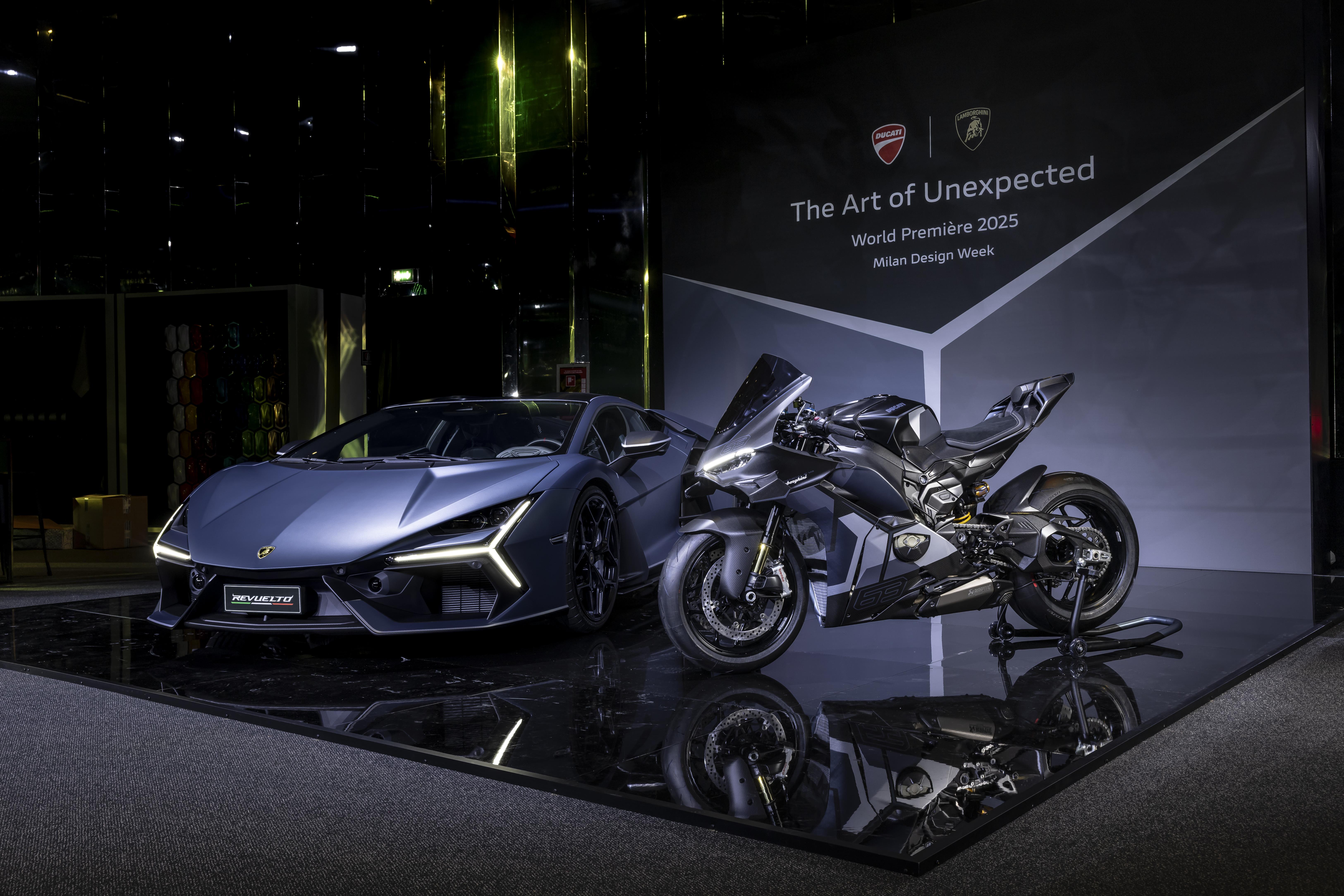 ความร่วมมือกันระหว่าง Lamborghini และ Ducati มีมาอย่างต่อเนื่อง ตั้งแต่ Diavel 1260 S ที่ได้แรงบันดาลใจจาก Lamborghini Sián ต่อด้วย Streetfighter V4 ที่ได้แรงบันดาลใจ Huracán STO และล่าสุดที่งาน Milan Design Week 2025 ได้ทำการเปิดผ้าคลุม Ducati Panigale V4 Lamborghini แรงบันดาลใจจาก Revuelto