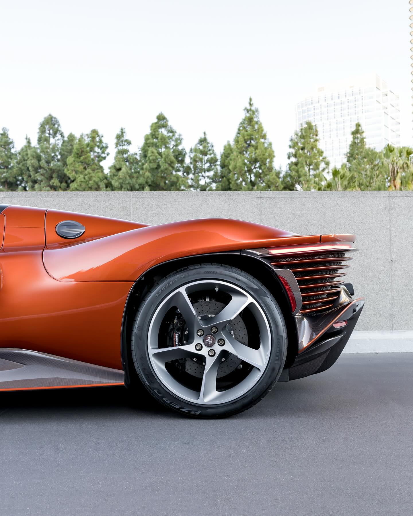 Daytona SP3 คันนี้โดดเด่นแต่ไกลด้วยตัวถังสีส้ม Rame Scuro Lucido ซึ่งเป็นสีเมทัลลิกพิเศษรังสรรค์โดยแผนก Tailor Made ดุดันรอบคันด้วยชิ้นส่วนคาร์บอนไฟเบอร์เงา ลงตัวกับล้อฟอร์จผิวซาตินสีเงิน และคาลิเปอร์เบรกเซรามิกสีดำ