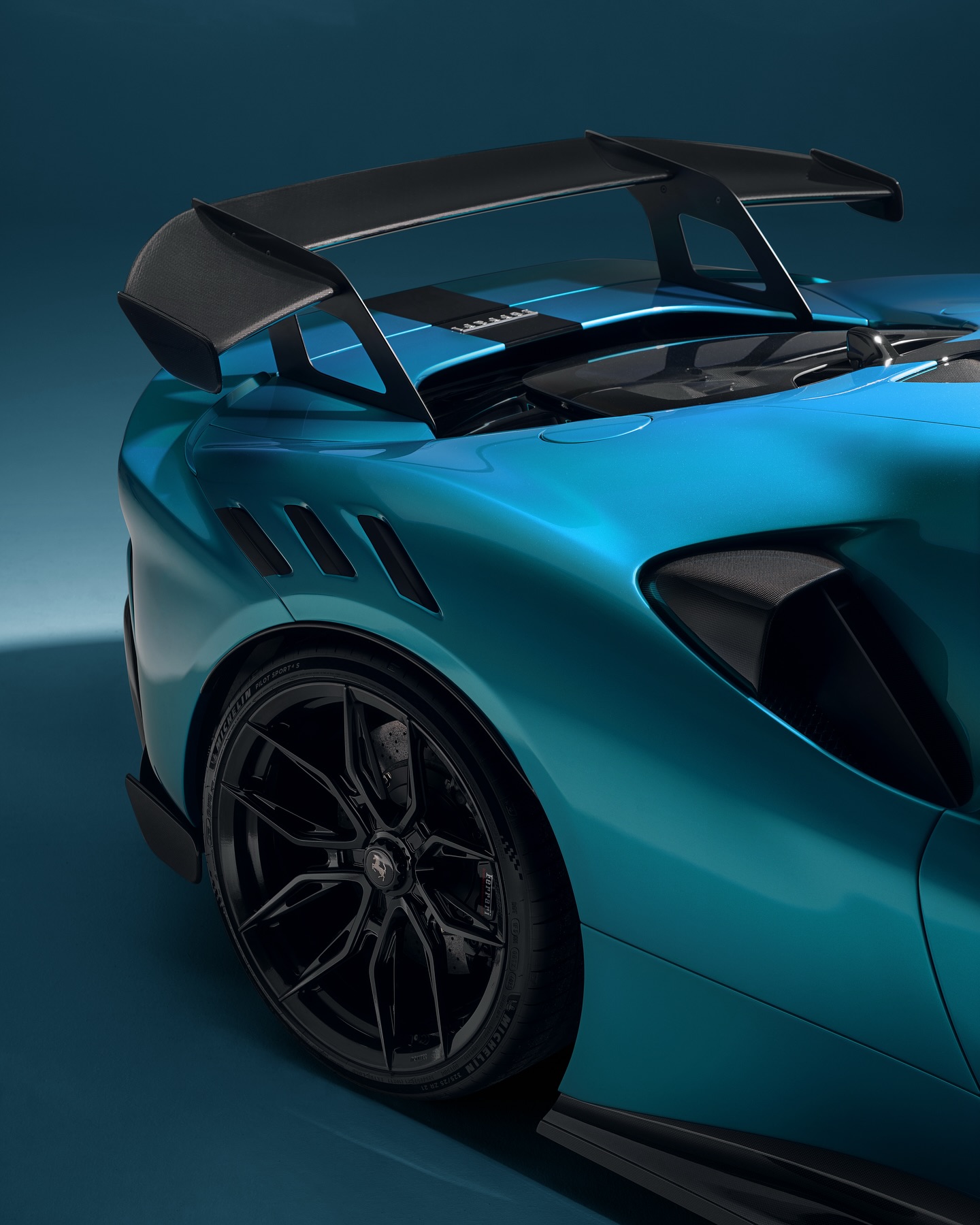 SF90 XX ตัวโหดขั้นสุดแบ่งผลิตจำกัด รุ่น Stradales จำนวน 799 คัน และรุ่น Spider ผลิต 599 คัน ซึ่งล้วนมีเจ้าของหมดแล้วถือเป็นม้าลำพองตัวแรร์อย่างแท้จริง Novitec ไม่ได้มีการเสริมชุดแต่งภายนอกแต่ยังใด ด้วยรูปลักษณ์ภายนอกเดิมซึ่งอัพเกรดมาแล้วทำให้มันมีแรงกดมากกว่า SF90 ปกติถึง 2 เท่า ส่วนที่เปลี่ยนคือล้อพัฒนาร่วมกับ Vossen ให้ขนาดมาด้านหน้าขอบ 20 นิ้ว หลัง 21 นิ้ว คู่ยางสมรรถนะสูงขนาด 255/35 ZR 20 และ 325/25 ZR 21 ช่วงล่างอัพเกรดด้วยสปริงสปอร์ตจาก NOVITEC ความสูงจะลดลงราว 25 มิลลิเมตร ดูหล่อขึ้นและช่วยเรื่องจุดศูนย์ถ่วงที่ต่ำลงด้วย