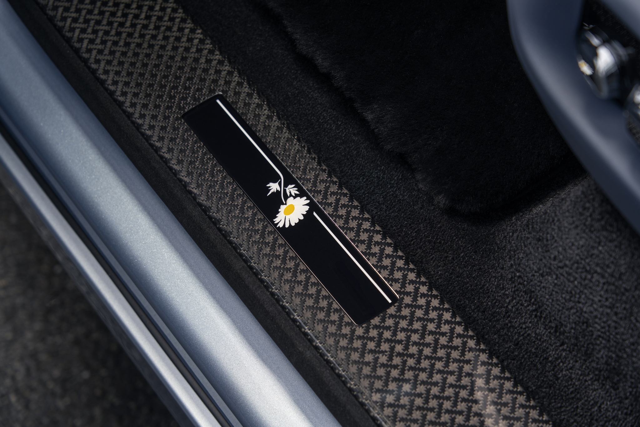 Cullinan Daisy ผลงานพิเศษสร้างบน Cullinan Series II ตัวล่าสุด โดยเจ้าของรถคันนี้ที่ได้รับแรงบันดาลใจจากทุ่งดอกเดซี่ซึ่งเป็นเส้นทางโปรดของเขาในเทือกเขา High Tatras ที่ไปทีไรก็รู้สึกผ่อนคลาย ตัวถังภายนอกเรียบง่ายด้วยโทนสีฟ้าอ่อน Powder Blue พร้อมกับเส้น Coachline สีขาวที่มีลายดอกเดซี่วาดมืออย่างประณีต ตัดกับชิ้นส่วนโครเมียมสีดำเงารอบคันเอกลักษณ์ของรุ่น Black Badge ล้อใหญ่จัดเต็มเลือกเป็นขนาด 23 นิ้ว
