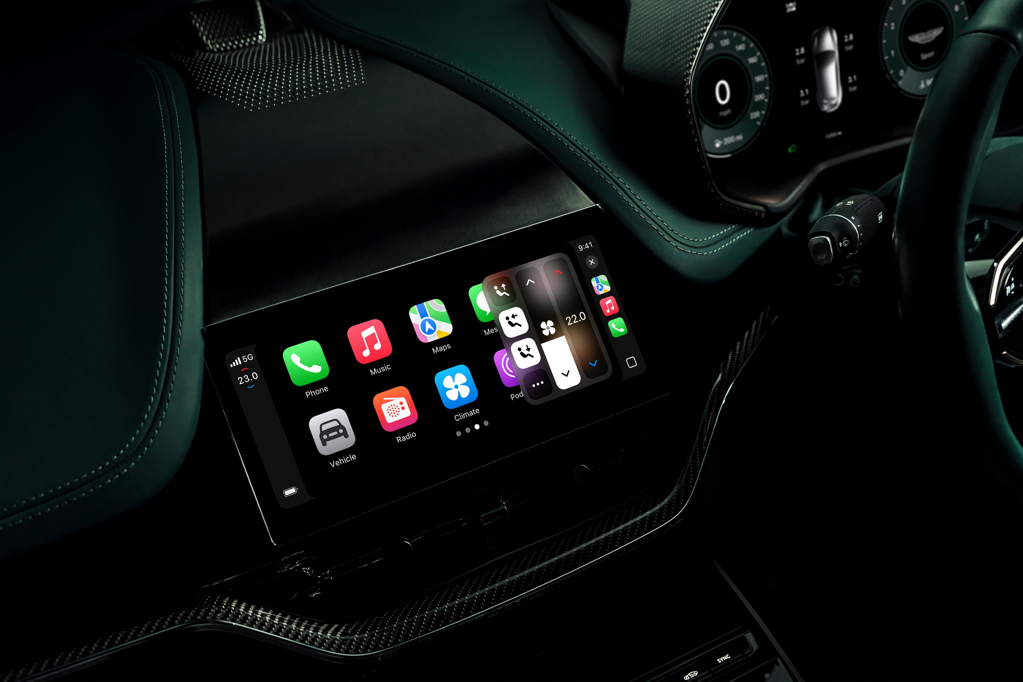 CarPlay Ultra ทำหน้าที่เป็นระบบควบคุมหลักไม่ว่าจะเป็น แผนที่นำทาง, เพลง, ข้อความ, รวมถึงการควบคุมระบบปรับอากาศ และวิทยุ ที่สามารถสั่งงานผ่านหน้าจอสัมผัสหรือ Siri ได้โดยตรง ขณะเดียวกัน Aston Martin ยังคงไว้ซึ่งปุ่มควบคุมเชิงกลสำหรับฟังก์ชันสำคัญ เช่น การเลือกโหมดขับขี่หรือเปลี่ยนเกียร์ เพื่อรักษาความรู้สึกของการขับขี่ในแบบดั้งเดิม