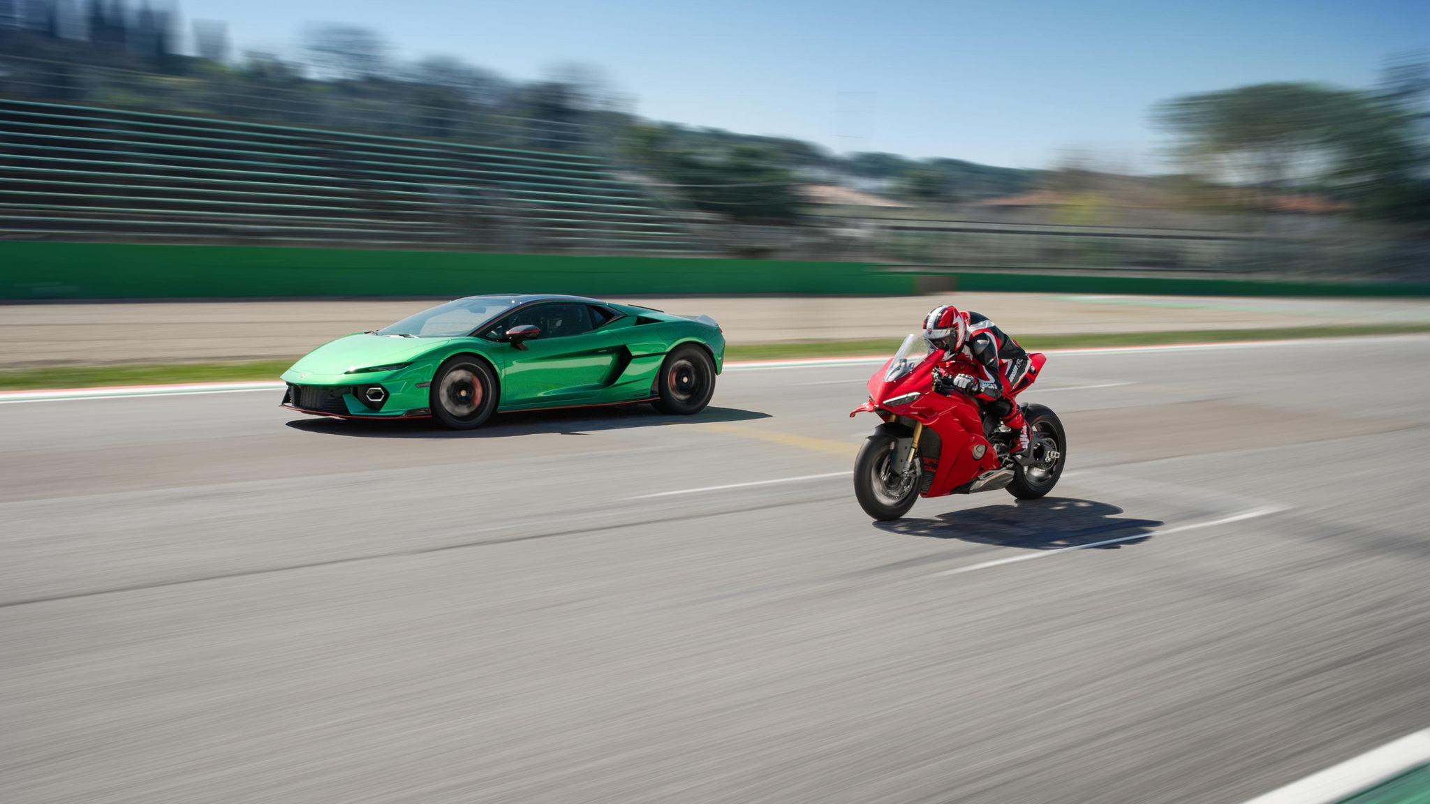 ศึกดวลระหว่าง สองล้อ และ สี่ล้อ เป็นสิ่งที่แฟนๆ ต่างก็ชื่นชอบ ครั้งนี้เป็นศึกระหว่าง Lamborghini Temerario และซุปเปอร์ไบค์ Ducati Panigale V4 รุ่นล่าสุด เป็นคุณจะเลือกข้างไหน??