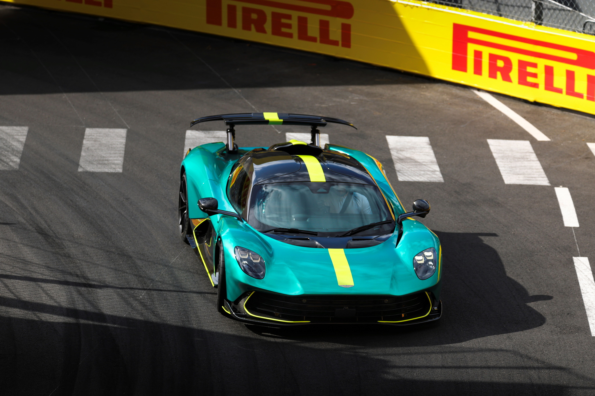 Valhalla คันนี้มาในตัวถังสีเขียว Podium Green เหมือนกับในรถแข่ง F1 AMR24 และตัดเด่นด้วยสีเขียว Lime Green รอบคัน สิ่งที่คนรอบสนามสัมผัสได้คือเสียงคำรามจากขุมพลังปลั๊กอินไฮบริด V8 ขนาด 4.0 ลิตร เทอร์โบคู่ ผสานมอเตอร์ไฟฟ้า 3 ตัว ให้กำลังรวม 1,079 แรงม้า แรงบิดสูงสุด 1,100 นิวตันเมตร เร่ง 0-100 กม./ชม. ใน 2.5 วินาที กับท๊อปสปีด 350 กม./ชม.