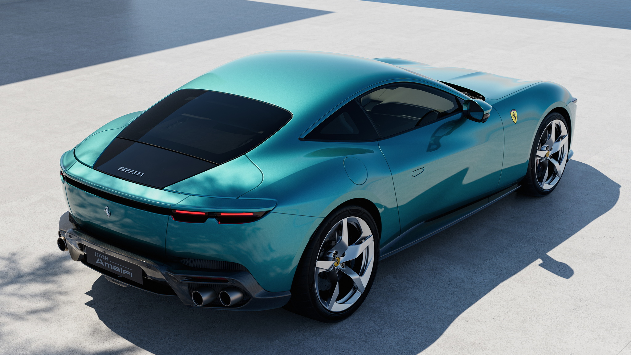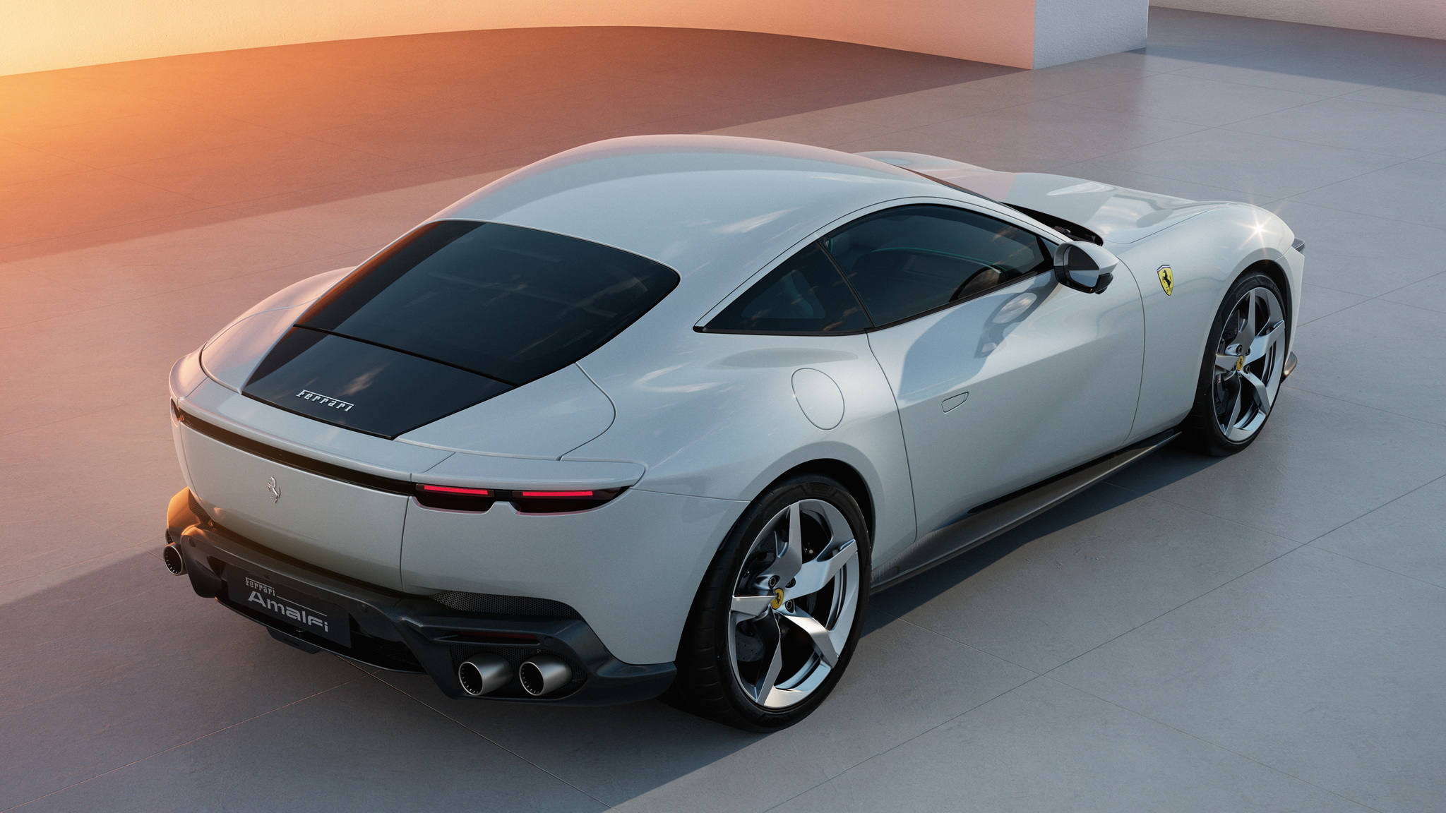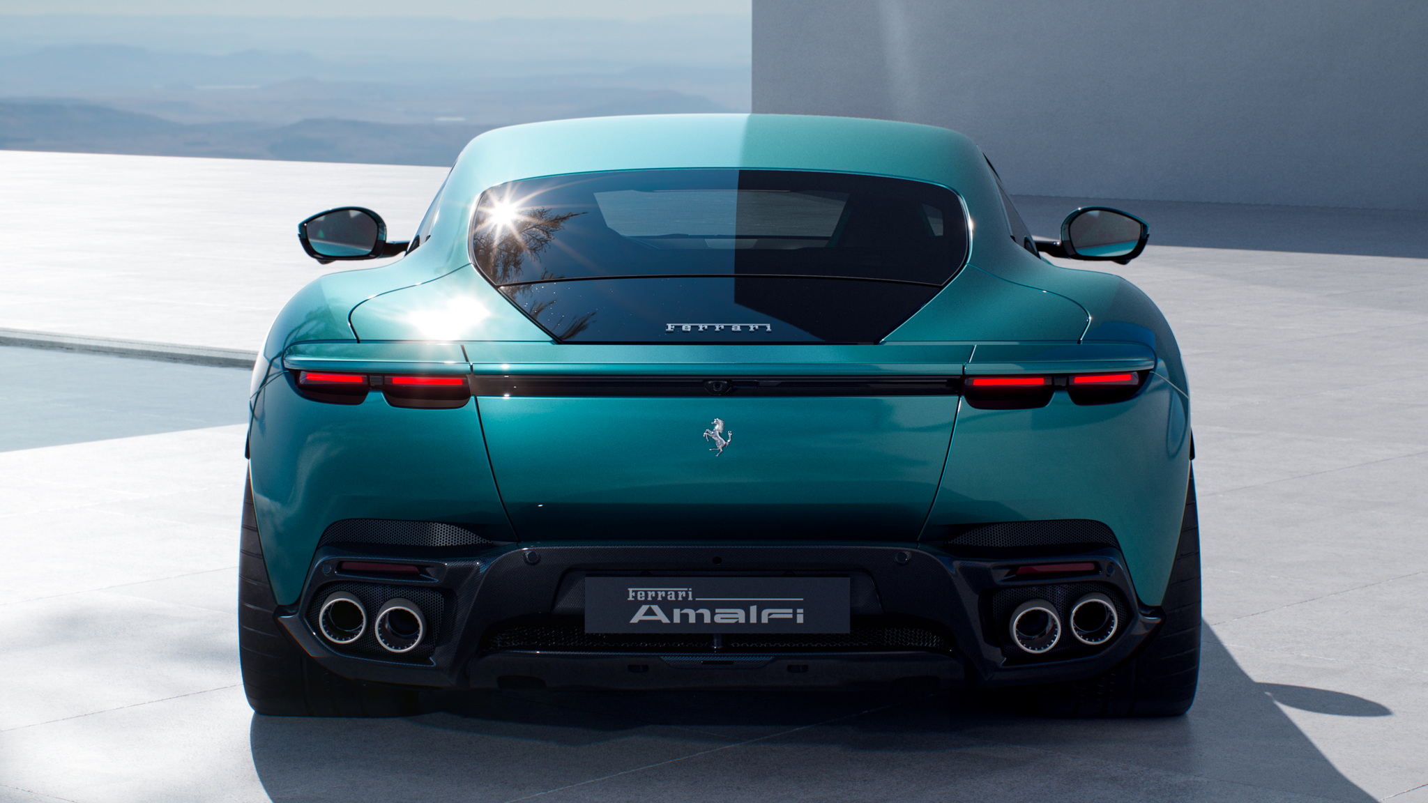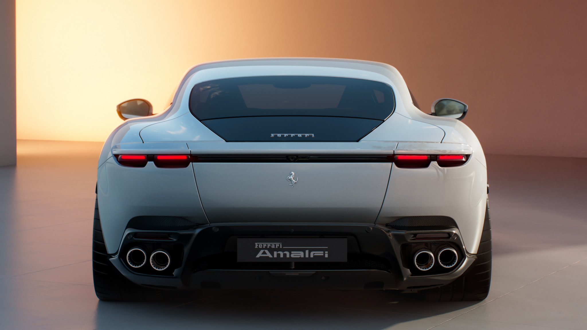 Ferrari Amalfi รุ่นใหม่ตั้งชื่อตาม Amalfi เมืองชายฝั่งอันงดงามในแคว้นกัมปาเนียของอิตาลี เป็นหนึ่งในจุดหมายปลายทางที่หรูหราพร้อมทิวทัศน์อันงดงาม หน้าตาภายนอกดีไซน์ใหม่หมดแต่ยังคงเส้นสายที่เรียบง่ายแบบ Roma ด้านหน้ามากับชุดไฟหน้าแบบใหม่ ไม่มีแผงกระจังหน้าแบบ Roma แต่ขยายช่องรับอากาศส่วนล่างให้ใหญ่ระบายความร้อนดีขึ้น บั้นท้ายได้ไฟท้ายใหม่ดีไซน์ฝังเข้าไปในตัวถังดูล้ำขึ้น มีปีกหลังแอ๊คทีฟทำงานอัตโนมัติปรับได้ 3 ระดับ ได้แก่ แรงต้านอากาศต่ำ (Low Drag), แรงกดปานกลาง (Medium Downforce) และแรงกดสูง (High Downforce) ได้แรงกดสูงสุด 110 กิโลกรัม ที่ความเร็ว 250 กม./ชม.