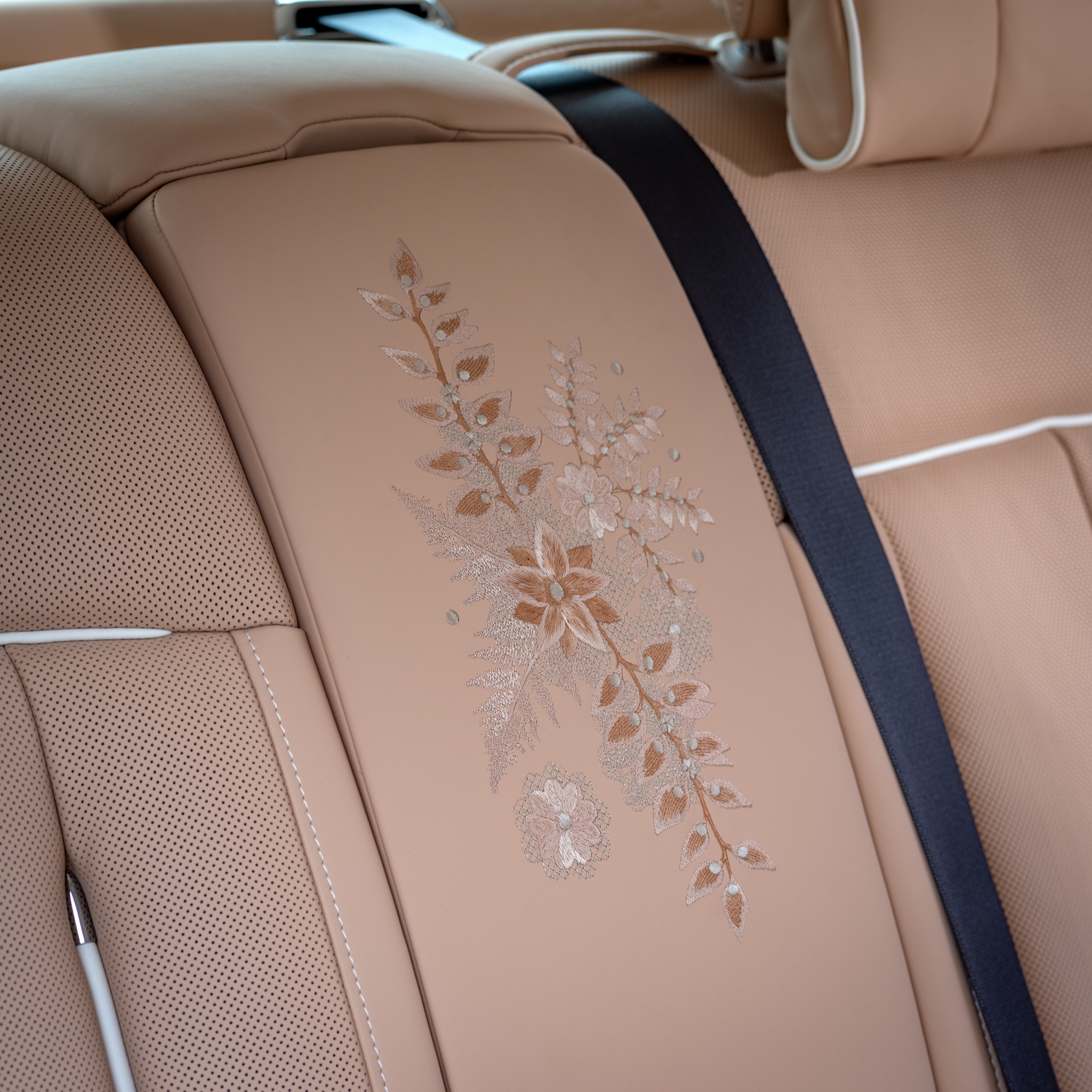 รถคันนี้คือ Rolls-Royce Phantom Dentelle สร้างขึ้นหนึ่งเดียวในโลกตามคำขอลูกค้าชาวตะวันออกกลาง ดำเนินการโดย Private Office Dubai รถคันนี้ได้แรงบันดาลใจจาก Couture lace (ลูกไม้กูตูร์) ลูกไม้ที่ใช้ในงานแฟชั่นชั้นสูง (Haute Couture) ที่มีความหรูหรา ประณีต และสร้างด้วยมือด้วยเทคนิคขั้นสูง ซึ่งถูกถ่ายทอดลงในห้องโดยสาร บริเวณ The Gallery ฝั่งผู้โดยสารตอนหน้ามีงานปักลวดลายดอกไม้ละเอียดอ่อนกว่า 160,000 ฝีเข็ม ด้วยเส้นด้ายหลากสีและลูกปัดไข่มุก เพื่อให้ได้มิติแบบสามมิติอันงดงาม ส่วนบริเวณ Waterfall ระหว่างกลางเบาะหลังยังคงธีมดอกไม้ด้วยลวดลายปักเพิ่มอีกกว่า 70,000 ฝีเข็ม ที่ผสมผสานกันอย่างลงตัว การตกแต่งภายในใช้หนังแท้สี Sunrise และ Grace White พร้อมโลโก้ RR ปักบนพนักศีรษะ และตกแต่งด้วยแผง Piano White เสริมลุคที่ทั้งหรูหราและนุ่มนวล