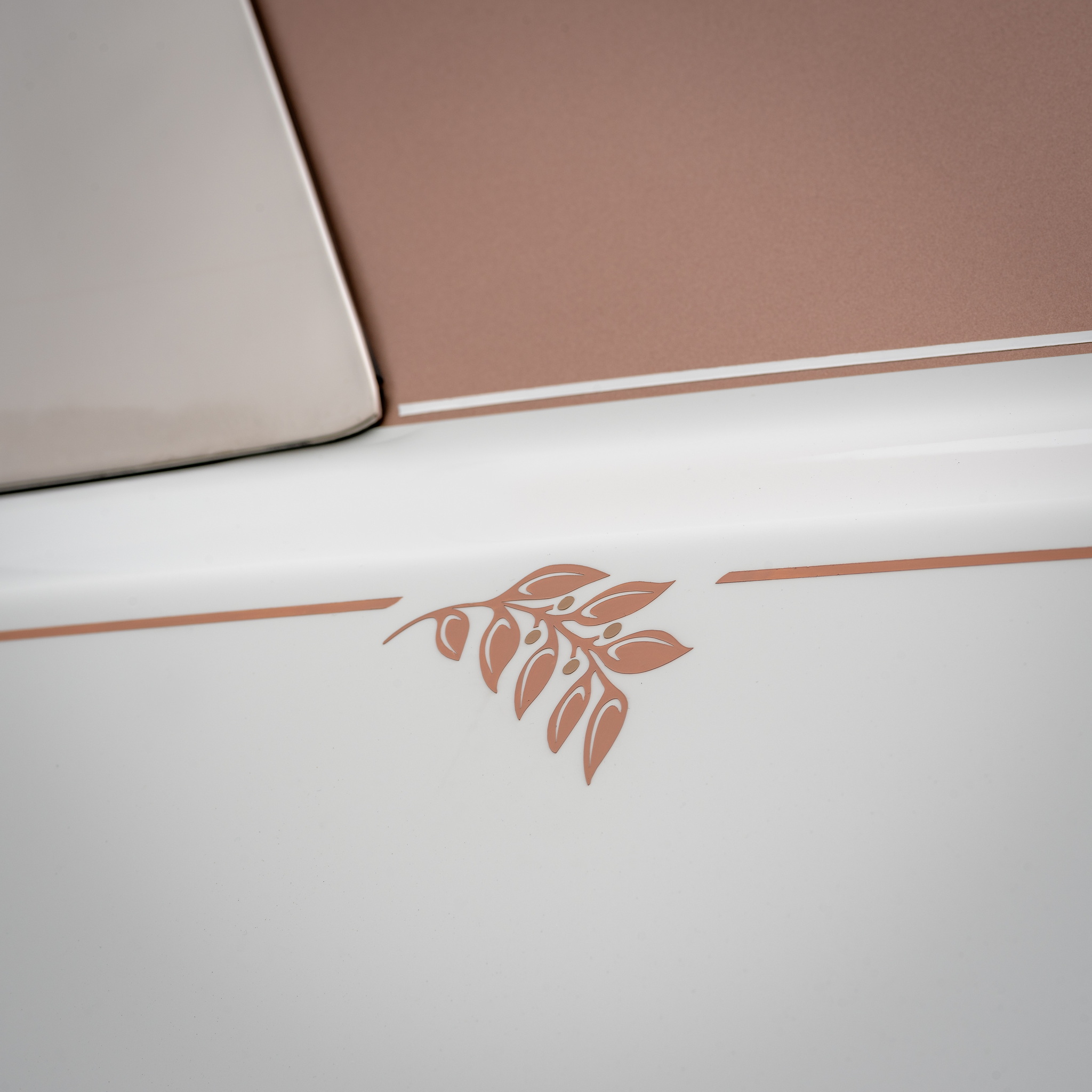ภายนอกของ Phantom Dentelle มาในสีทูโทนสุดพิเศษ สีขาว Crystal over Arctic White และ Crystal over Palais Nemasker Dawn ซึ่งเป็นเฉดสีที่พัฒนาขึ้นสำหรับคันนี้เท่านั้น นางฟ้า Spirit of Ecstasy ก็มาในสี Rose Gold ที่ดูลงตัวจริงๆ