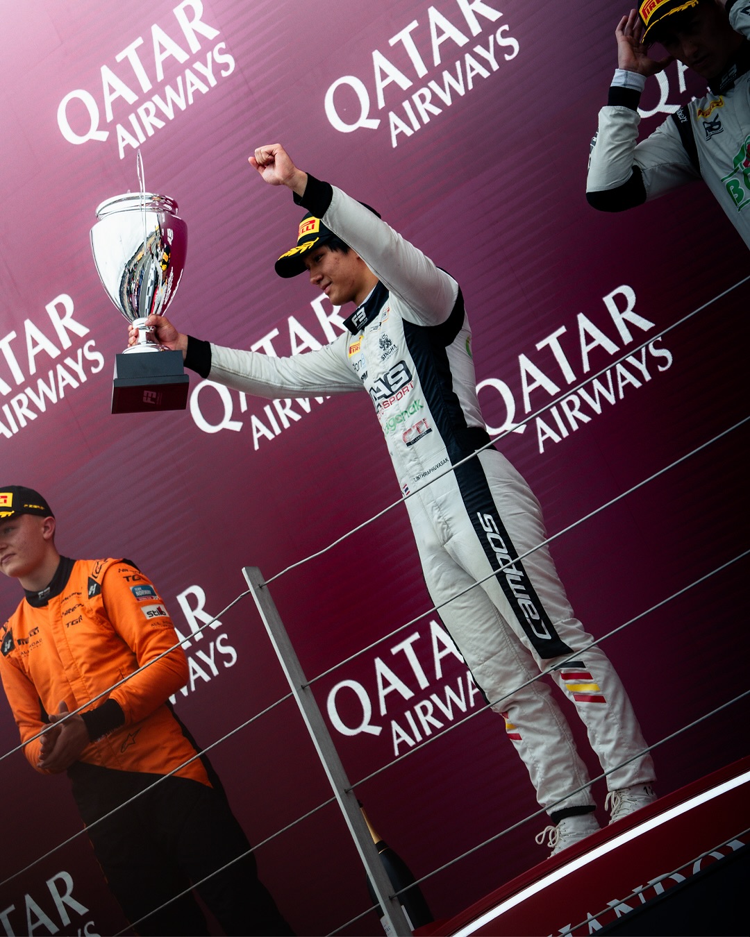 เติ้น ยังขับอย่างมั่นคง รักษาระยะห่างได้อย่างยอดเยี่ยมจาก มาร์ตินิอุส สเตนชอร์น (Martinius Stenshorne) จากทีม Hitech TGR ซึ่งไต่ขึ้นมาจากกริดที่ 6 จนขึ้นมาอยู่ในอันดับ 2 ส่วนอันดับ 3 เป็นของ มารี โบย่า (Mari Boya) เพื่อนร่วมทีมของ เติ้น ที่โชว์ฟอร์มร้อนแรงจากอันดับ 9 จนขึ้นโพเดียมสำเร็จ โดยเฉพาะการแซงสุดมันส์ในโค้งสุดท้ายเหนือทั้งนาเอล (Nael) และ ลอเรนส์ ฟาน โฮเพน (Laurens van Hoepen) จาก ART Grand Prix