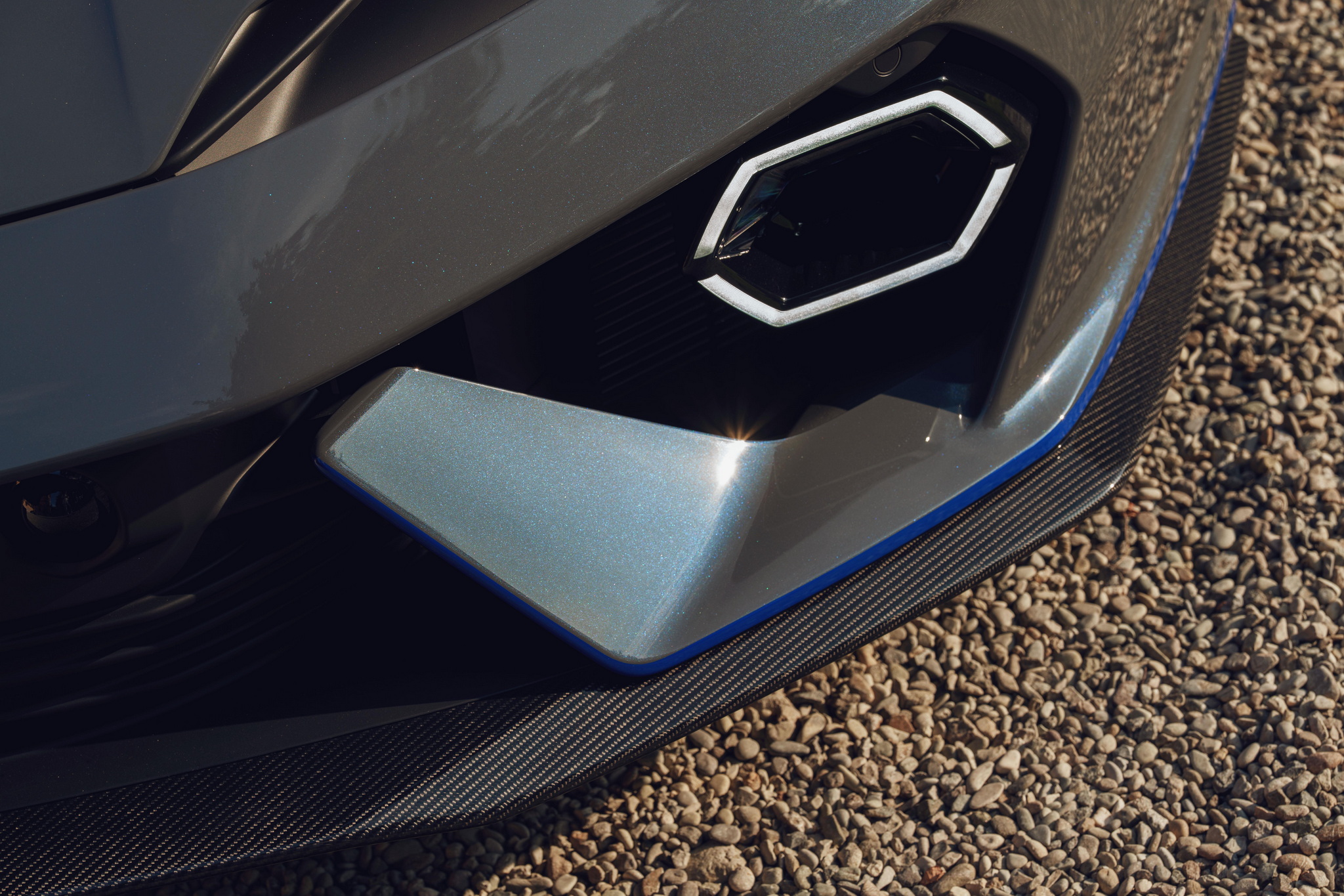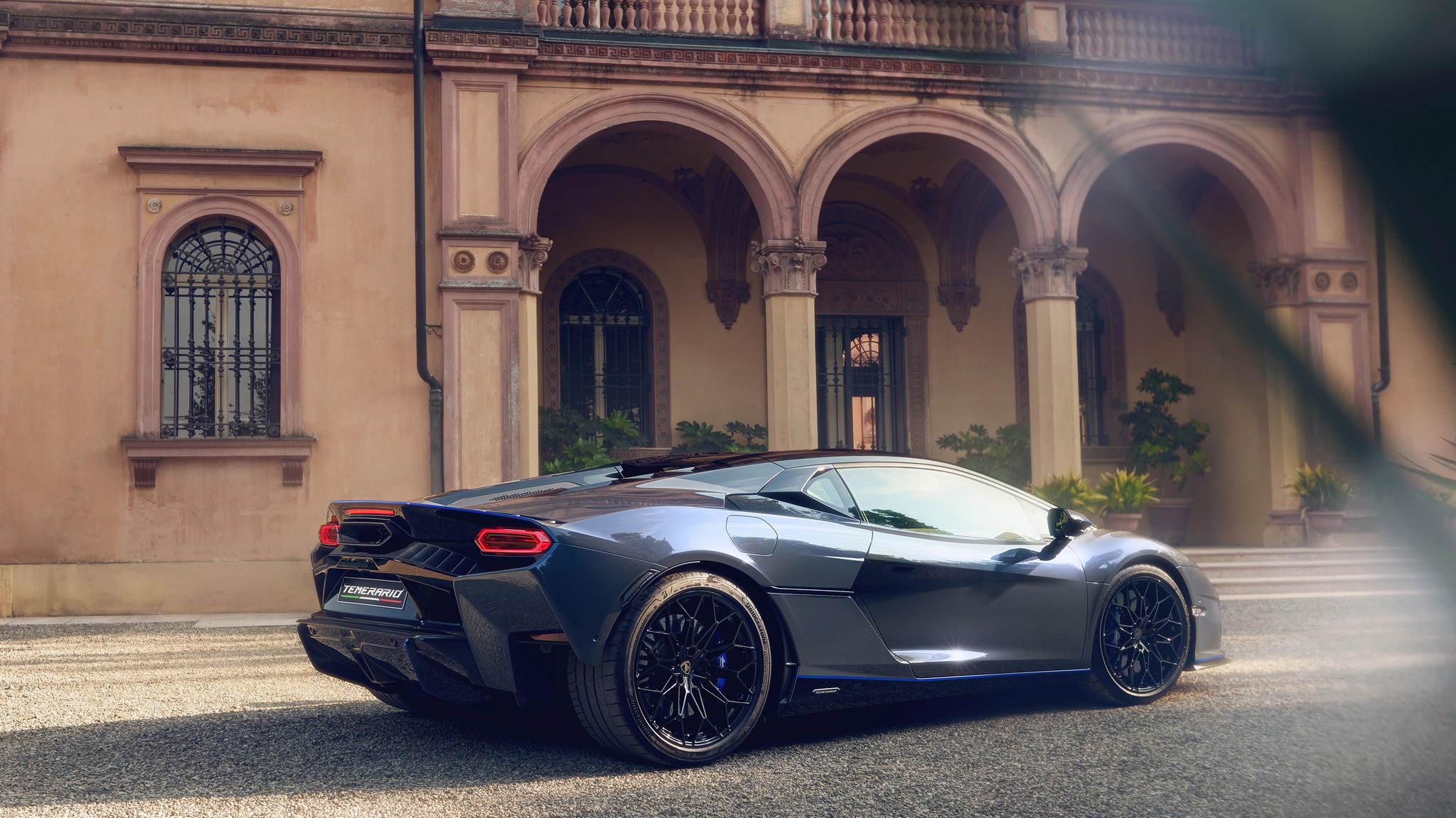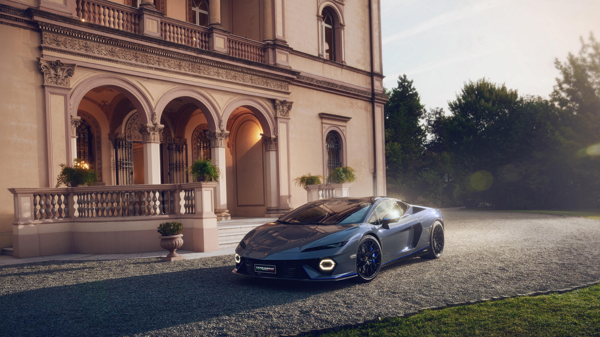 นี่คือ Lamborghini Temerario ‘Porto Cervo’ รุ่นพิเศษ ผลงานจากแผนก Ad Personam ของ Lamborghini ซึ่งสามารถปรับแต่งรถได้ตามใจสั่ง มาพร้อมตัวถังสีเทาเมทัลลิก Grigio Serget ผสานเกล็ดสีน้ำเงินที่เปล่งประกายยามแสงแดดกระทบ ส่วนล่างตัวรถเลือกใช้ดำเงา Nero Noctis และตัดด้วยเส้นไฮไลต์สีน้ำเงิน Blu Royal ลากผ่านรอบคันจนถึงสปอยเลอร์ท้าย หลังคาตัดเป็นสีดำเงา สปลิตเตอร์หน้า ดิฟฟิวเซอร์หลัง และช่องดักอากาศเป็นคาร์บอนไฟเบอร์ผิวเงา ล้อฟอร์จ Velador สีดำเงา คู่กับคาลิเปอร์เบรกสีน้ำเงิน ดุดันหรูหราไม่เบา