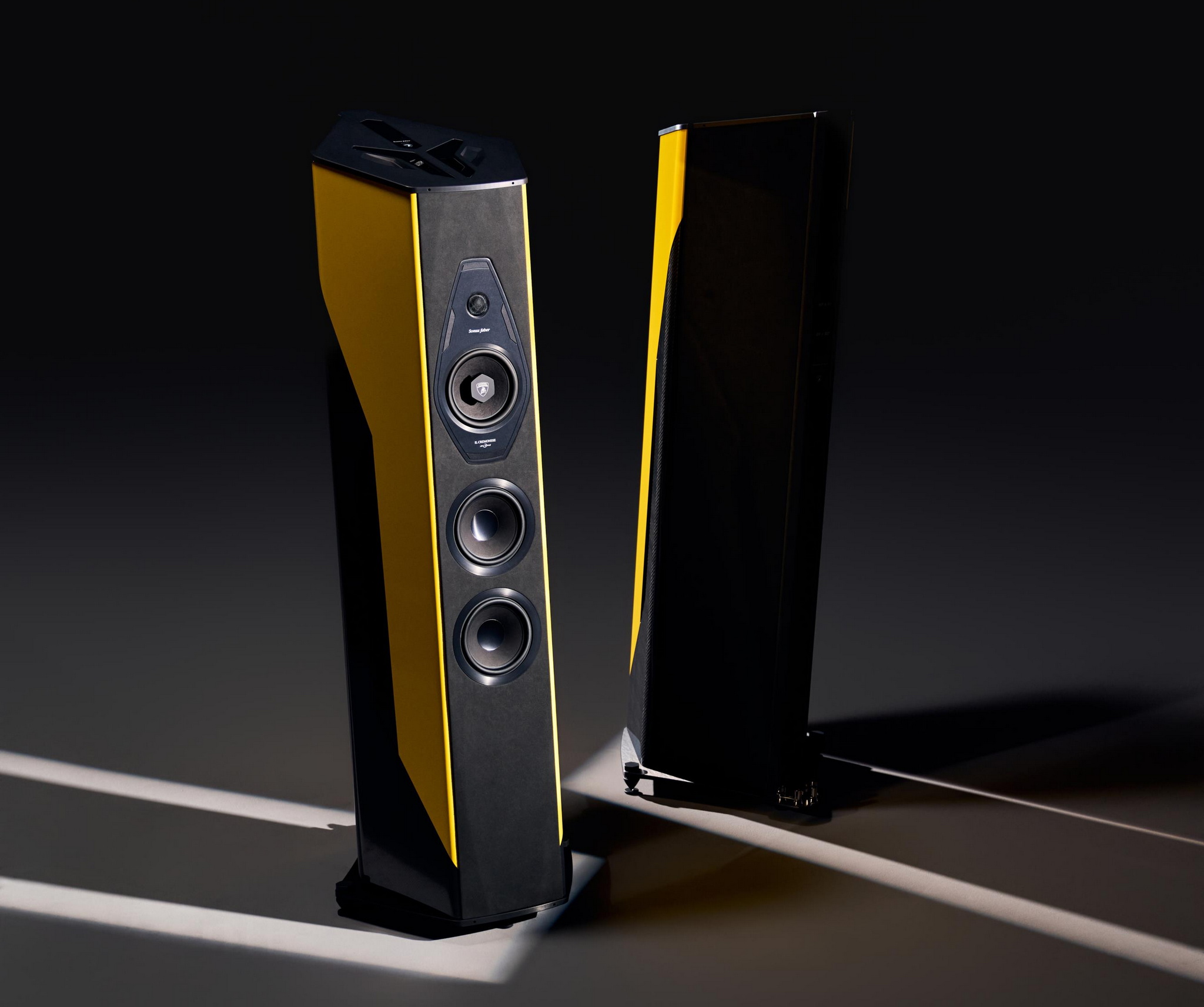 Sonus faber แบรนด์ลำโพงสุดหรูจากอิตาลี เผยโฉม Il Cremonese Ex3me Automobili Lamborghini Edition ลำโพงผสานดีไซน์สุดล้ำโดย Lamborghini ตกแต่งด้วยวัสดุที่ใช้ในซุปเปอร์คาร์อย่าง CorsaTex, คาร์บอนไฟเบอร์ผิวเงา และโลโก้กระทิงดุอันเป็นเอกลักษณ์ ลำโพงมีมาให้เลือกกัน 5 สีพิเศษ ได้แก่ เหลือง Giallo Countach, ส้ม Arancio Egon, น้ำเงินด้าน Blu Marinus Matte, เขียว Verde Mercurius และดำด้าน Nero Nemesis Matte ทุกสีถูกพ่นเคลือบเป็นมาตรฐานเดียวกับการพ่นสีรถที่โรงงาน Lamborghini ที่ Sant’Agata Bolognese