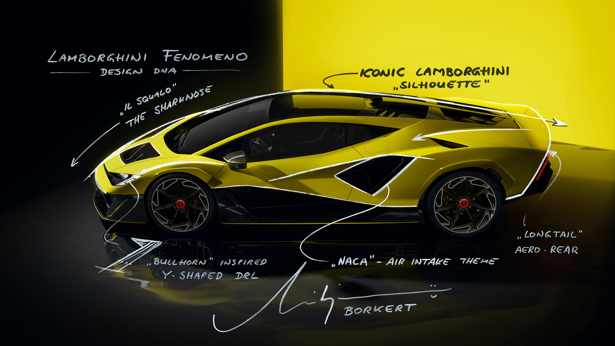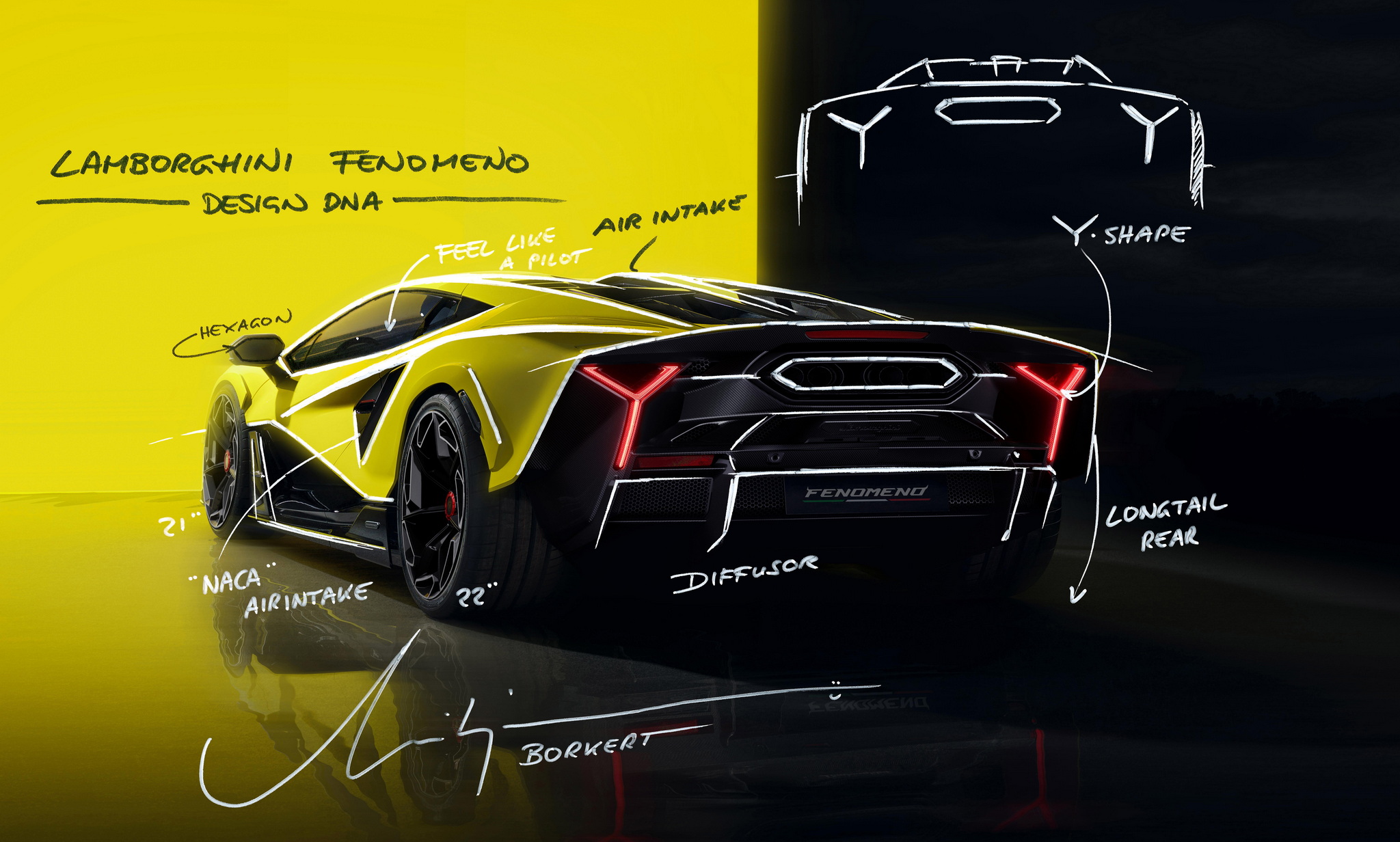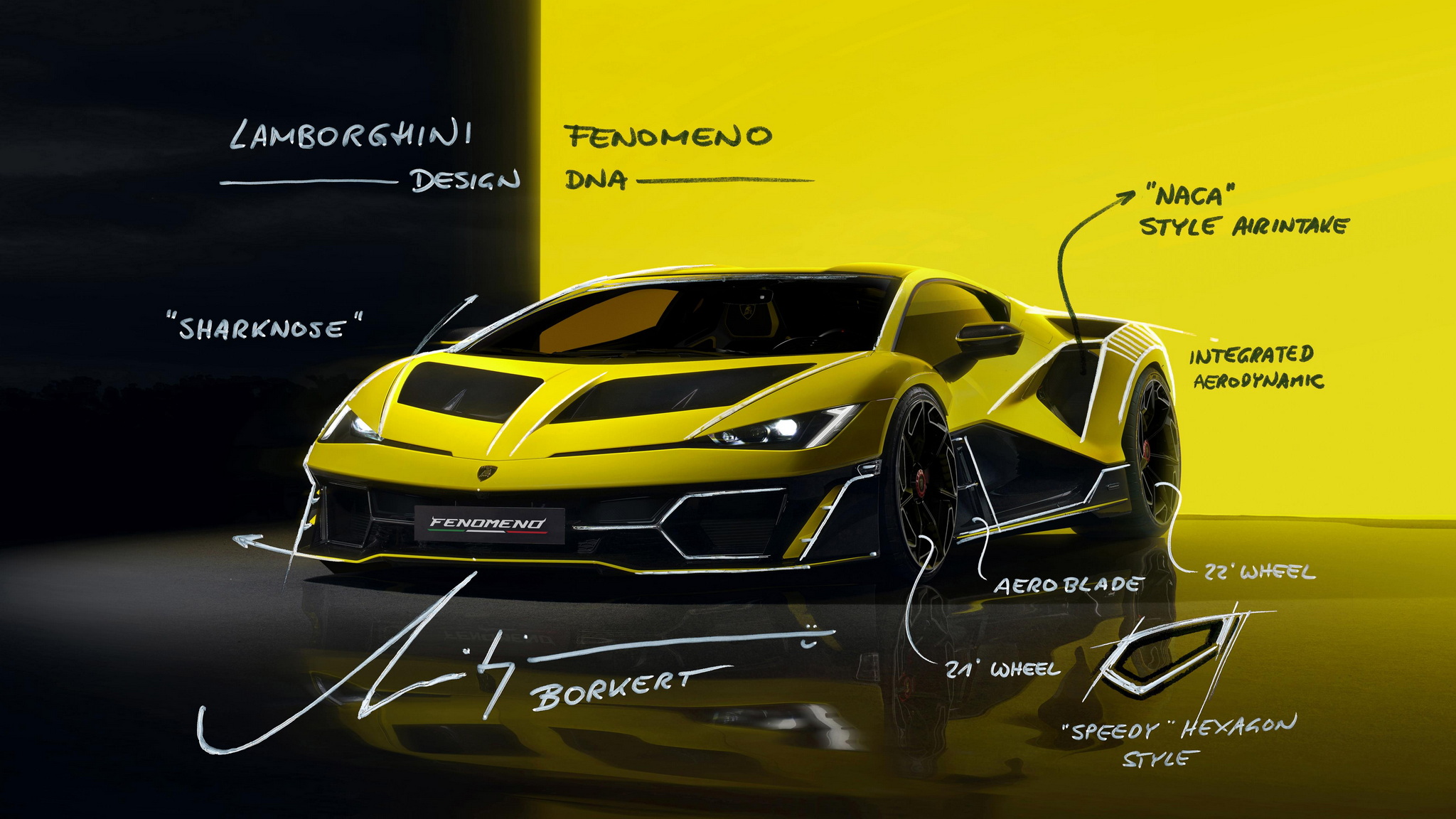 Lamborghini Fenomeno ไฮเปอร์คาร์ตัวลิมิเต็ดใหม่ล่าสุด กลายเป็น Lamborghini ที่ทรงพลังที่สุดในขณะนี้ สานต่อตำนานอย่าง Sesto Elemento (2010), Veneno (2013), Centenario (2016), Sián (2019) และ Countach (2021) ชื่อ Fenomeno ดึงมาจากกระทิงดุเมืองโมเรเลีย ประเทศเม็กซิโก ในปี 2002 ตัวรถสร้างบนพื้นฐาน Revuelto แต่เปลี่ยนเปลือกตัวถังใหม่หมด รูปทรงโดยรวมมีความกว้างและยาวกว่า Revuelto ดีไซน์ด้านหน้าลู่ต่ำแบบจมูกฉลาม มีระบบ S-Duct เพิ่มแรงกดด้านหน้า ข้างตัวรถมากับช่อง Naca รับอากาศเข้าขนาดใหญ่ บั้นท้ายยาวแบบ Longtail เด่นด้วยไฟท้ายรูปตัว Y แนวตั้ง เชื่อมต่อกับดิฟฟิวเซอร์ ปลายท่อไอเสียหกเหลี่ยมขนาดใหญ่ ปีกหลังแอ๊คทีฟ ล้อด้านหน้าขนาด 21 นิ้ว หลัง 22 นิ้ว ใช้เบรกคาร์บอน-เซรามิก CCM-R Plus ยาง Bridgestone Potenza Sport แบบกึ่งสลิกเกาะถนนสูงเป็นพิเศษ โช้คอัพมาแบบรถแข่งที่สามารถปรับตั้งเองได้ด้วยมือ ทำให้คุณปรับจูนได้อิสระไม่ว่าบนสนามแข่งหรือถนนทั่วไป