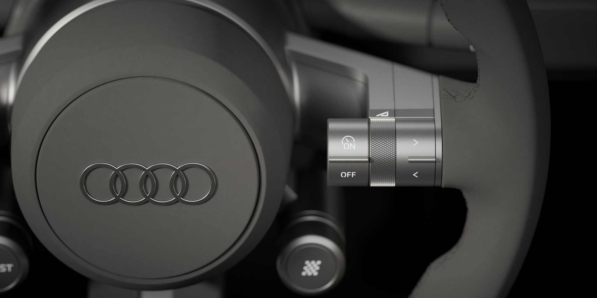 ห้องโดยสาร Audi Concept C ยังคงเน้นความเรียบง่ายใช้งานง่ายเป็นหลัก แต่ก็แฝงด้วยเทคโนโลยีล้ำยุค อาทิ หน้าจอพับได้ขนาด 10.4 นิ้ว บริเวณคอนโซลกลาง และระบบควบคุมแบบสัมผัส (Haptic Controls) ที่มอบประสบการณ์ใช้งานที่ลื่นไหลและทันสมัย ขณะเดียวกันก็ยังคงรักษาอารมณ์ความสนุกในการขับขี่ที่เป็นหัวใจสำคัญของรถสปอร์ตไว้ได้อย่างครบถ้วน