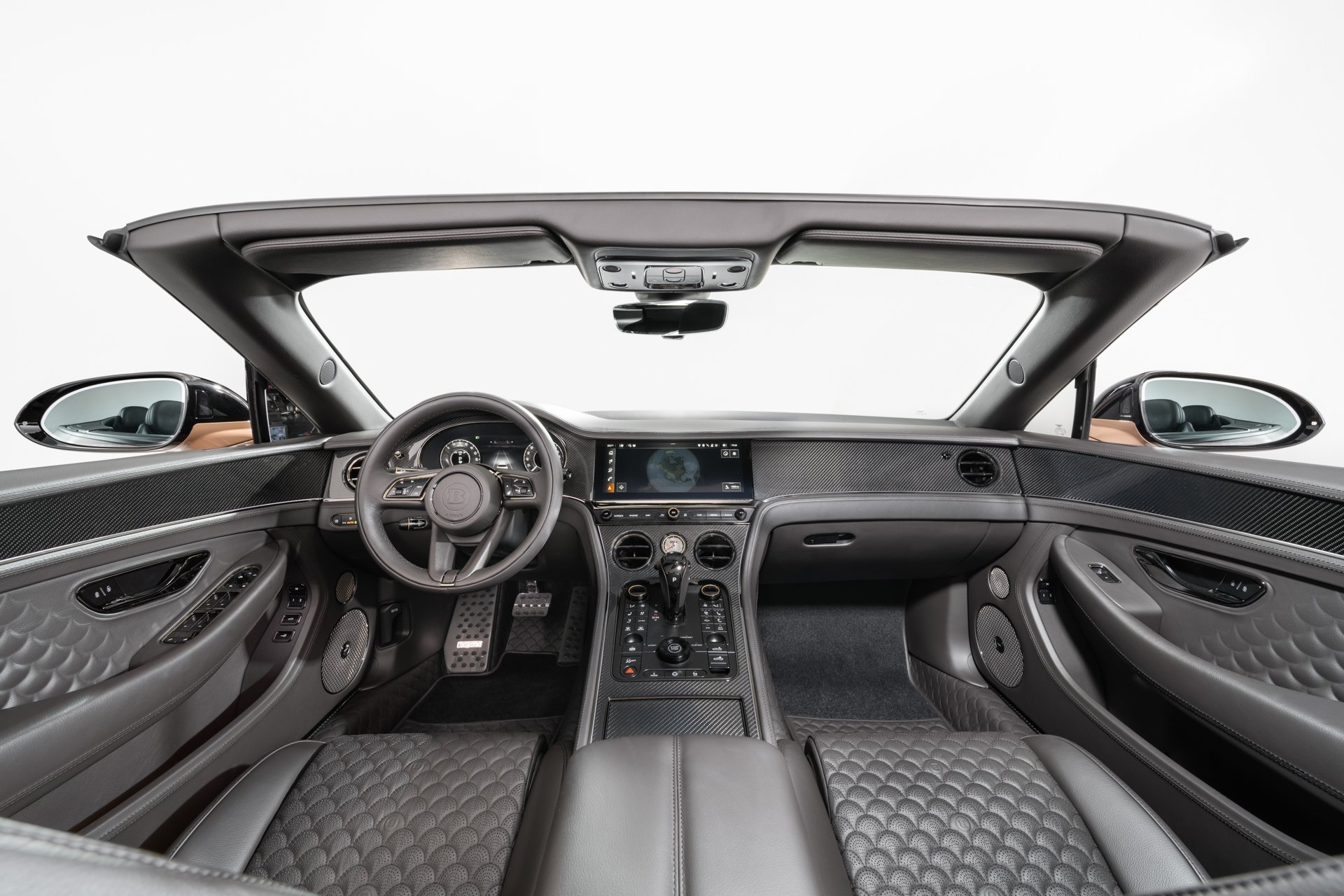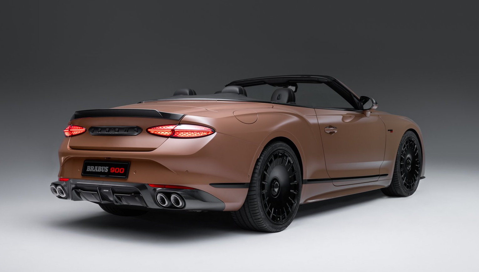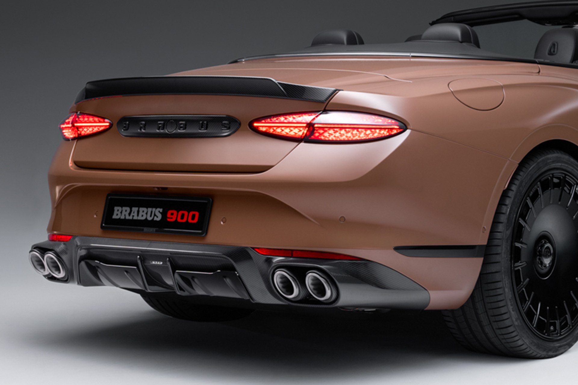 นี่คือ BRABUS 900 สร้างบนพื้นฐาน Bentley Continental GTC Speed ถือเป็นการบุกเบิกครั้งแรกที่ BRABUS นำ Bentley มาปรับแต่งพิเศษ ภายนอกจัดเต็มด้วยชิ้นส่วนคาร์บอนไฟเบอร์รอบคัน กระจังหน้าและกันชนหน้าดีไซน์พิเศษ เพิ่มประสิทธิภาพการระบายความร้อนให้กับหม้อน้ำและระบบเบรกหน้า สปอยเลอร์ท้ายและดิฟฟิวเซอร์ออกแบบใหม่ ทุกชิ้นส่วนคาร์บอนลูกค้าสามารถเลือกพื้นผิวได้ทั้งแบบเงา (high-gloss) หรือแบบด้าน (matte) ล้ออัลลอย BRABUS Monoblock ZM “PLATINUM EDITION” ขนาด 22 นิ้ว และยังติดตั้งระบบลดความสูงช่วงล่าง สามารถลดระดับตัวรถลงประมาณ 20 มิลลิเมตร (0.8 นิ้ว) ช่วยเพิ่มความหล่อความแม่นยำในการควบคุม โดยไม่สูญเสียความนุ่มนวลตามสไตล์ Grand Tourer หรู