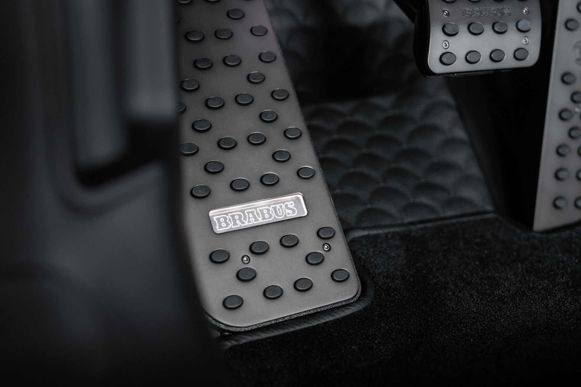 ห้องโดยสารทาง BRABUS ก็ทำให้ใหม่ ด้วยหนังแท้คุณภาพสูงงานตัดเย็บสุดประณีต ด้วยโทนสีดำและสีน้ำตาล Nocturne Brown หนังเย็บเจาะรูลวดลาย “Shell” เอกลักษณ์ของ BRABUS