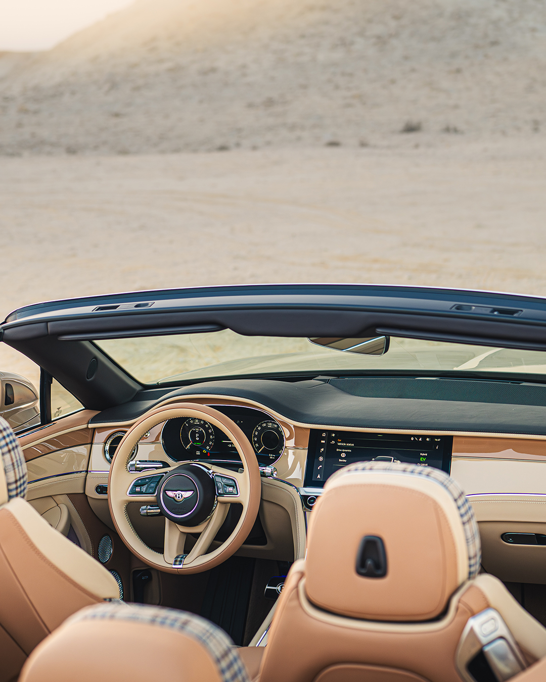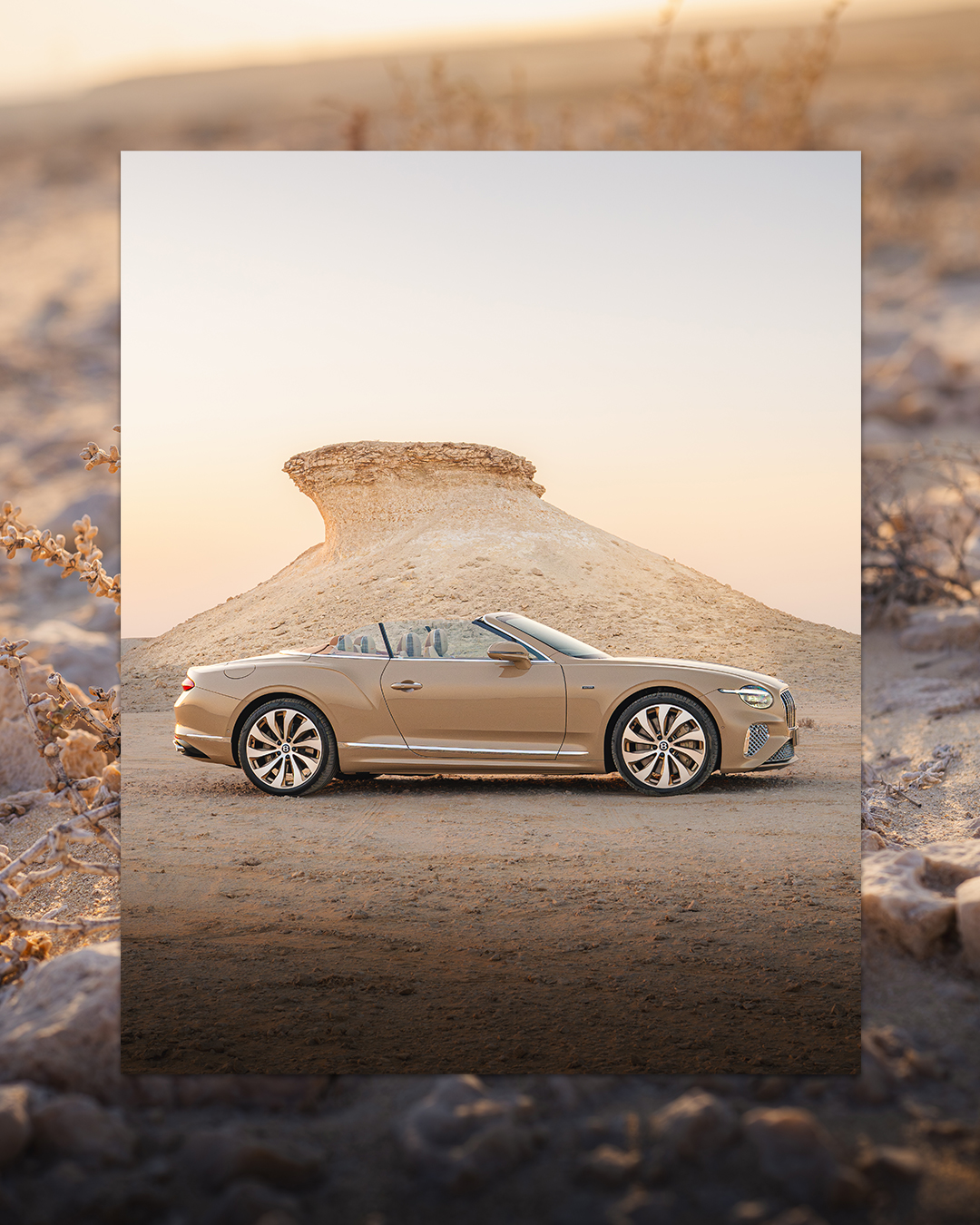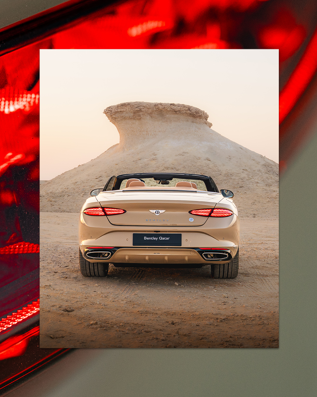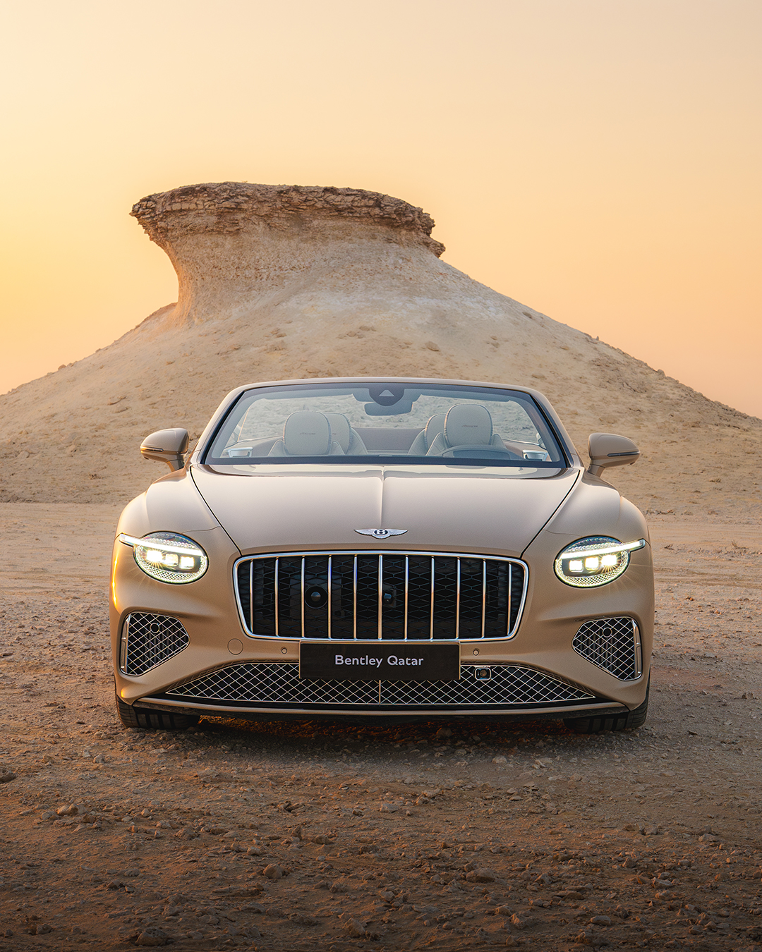 ท้องฟ้ายามอาทิตย์ตก ท่ามกลางทะเลทรายอันเป็นเอกลักษณ์ของกาตาร์ ถูกถ่ายทอดลงไว้ในรถคันนี้ Bentley Continental GTC Azure Mulliner Qatar Edition