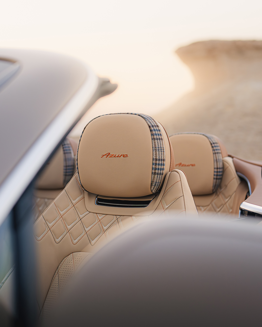 Bentley Continental GTC Azure Mulliner Qatar Edition ผลงานสั่งทำพิเศษหนึ่งเดียวในโลก หรูหราด้วยตัวถังสีทะเลทราย Desert Sand ที่กลมกลืนไปกับภูมิประเทศอาหรับ เติมแต่งด้วยชิ้นงานโครเมียมรอบคันและล้อสีทองอ่อนช่วยให้รถดูคุมโทนทั้งคัน แผงกระจังหน้ารถเส้นแนวตั้งดูน่าเกรงขาม กันชนหน้าและกันชนท้ายมีการสอดแทรกสีดำ Piano black เพื่อเพิ่มมิติ ด้านข้างตัวรถติดแถบป้าย Qatar Edition บ่งบอกว่า GTC คันนี้ไม่ธรรมดานะ