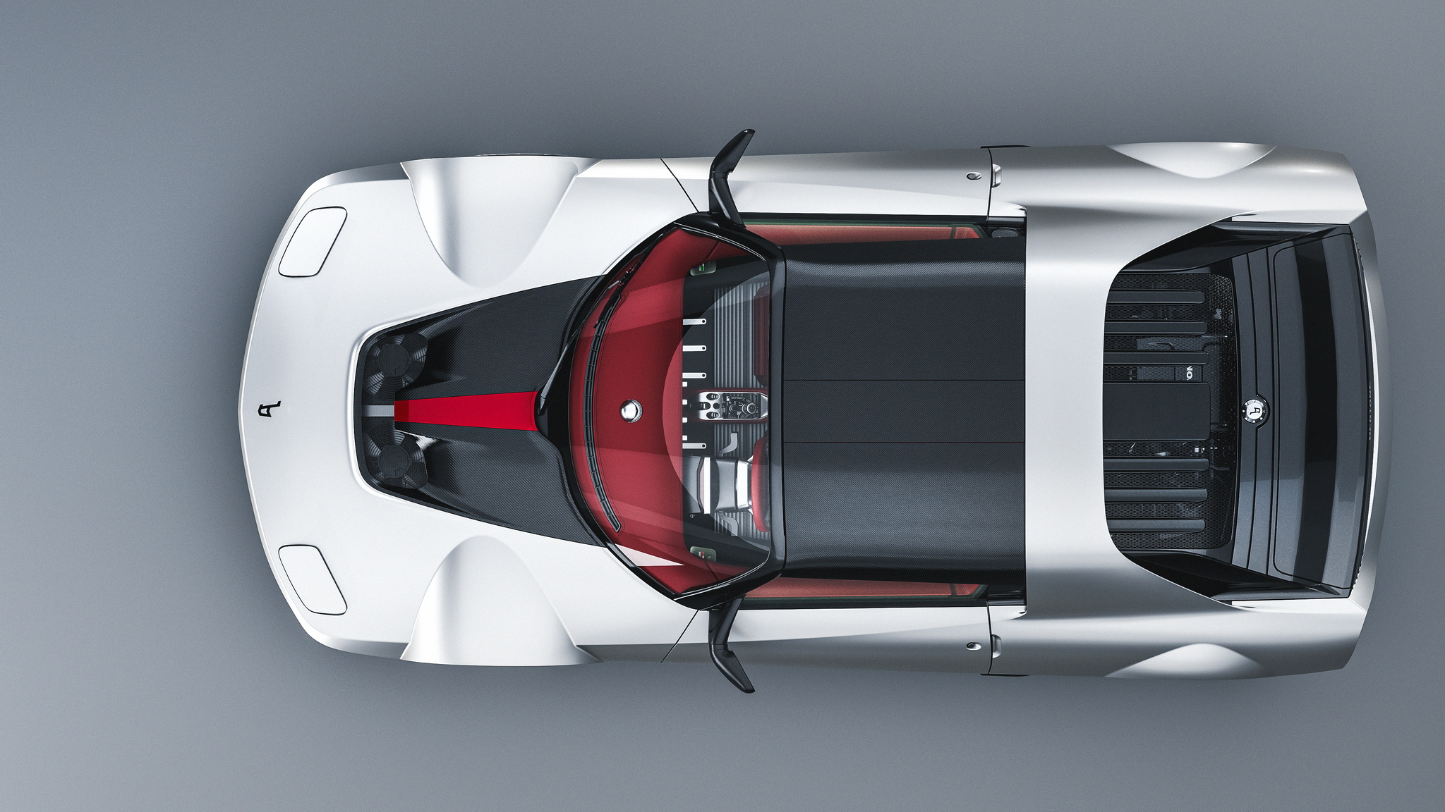ห้องโดยสารได้แรงบันดาลใจจากสถาปัตยกรรมเรือ ตัวถังภายในคล้ายอ่างลำเรือที่โอบล้อมผู้โดยสารให้นั่งต่ำ เลือกใช้วัสดุหนังแท้ อะลูมิเนียม และคาร์บอนไฟเบอร์อย่างประณีต มีเข็มทิศบนแดชบอร์ด เกียร์ธรรมดาแผงโลหะเน้นโชว์กลไก สื่อถึงการมีส่วนร่วมเชิงกลอย่างแท้จริง