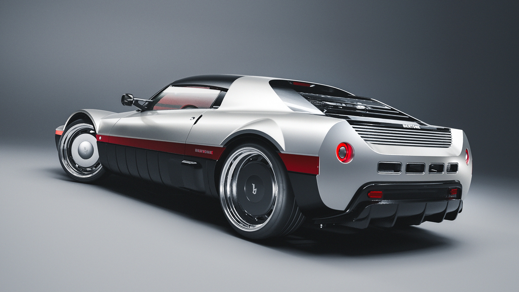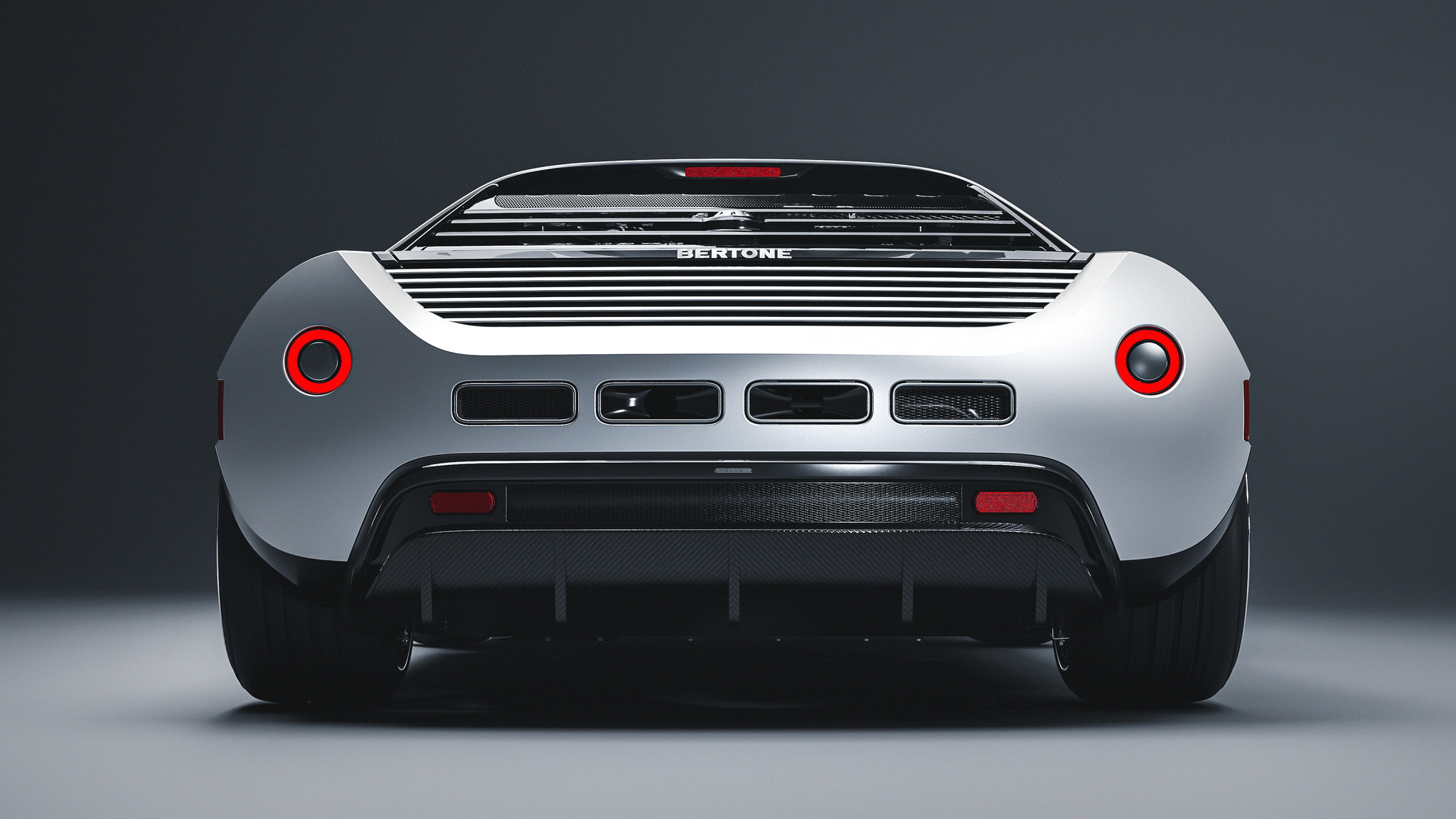 Bertone Runabout เปิดตัวมาให้เลือก 2 รูปแบบตัวถัง คือ Targa มาพร้อมหลังคาและกระจกบังลมหน้า และ Barchetta เน้นเปิดโล่งไร้หลังคาพร้อมกระจกบังลมหน้าชิ้นเล็ก รูปทรงรถยึดหลัก Bertone Zero Principle ที่ใช้เส้นหลักเพียงสองเส้น เส้นแรกคือโปรไฟล์รูปตัว L ที่ลากจากโรลบาร์ไปจนถึงปลายจมูก เป็นรถทรงทรงลิ่มชัดเจน และเส้นแนวนอนด้านล่างให้กลิ่นอายแบบ nautical reference เหมือนลำเรือ จุดเด่นอื่นๆ เช่น ไฟหน้า LED แบบ Pop-up สุดคลาสสิค, ท้ายทรงตัด Coda Tronca, ไฟท้ายทรงกลม, ฝาครอบเครื่องยนต์ออกแบบแนว industrial-inspired เน้นโครงสร้างเรียบง่าย, ฝาถังน้ำมันอะลูมิเนียม และช่องดักอากาศหน้าแบบ S-Duct