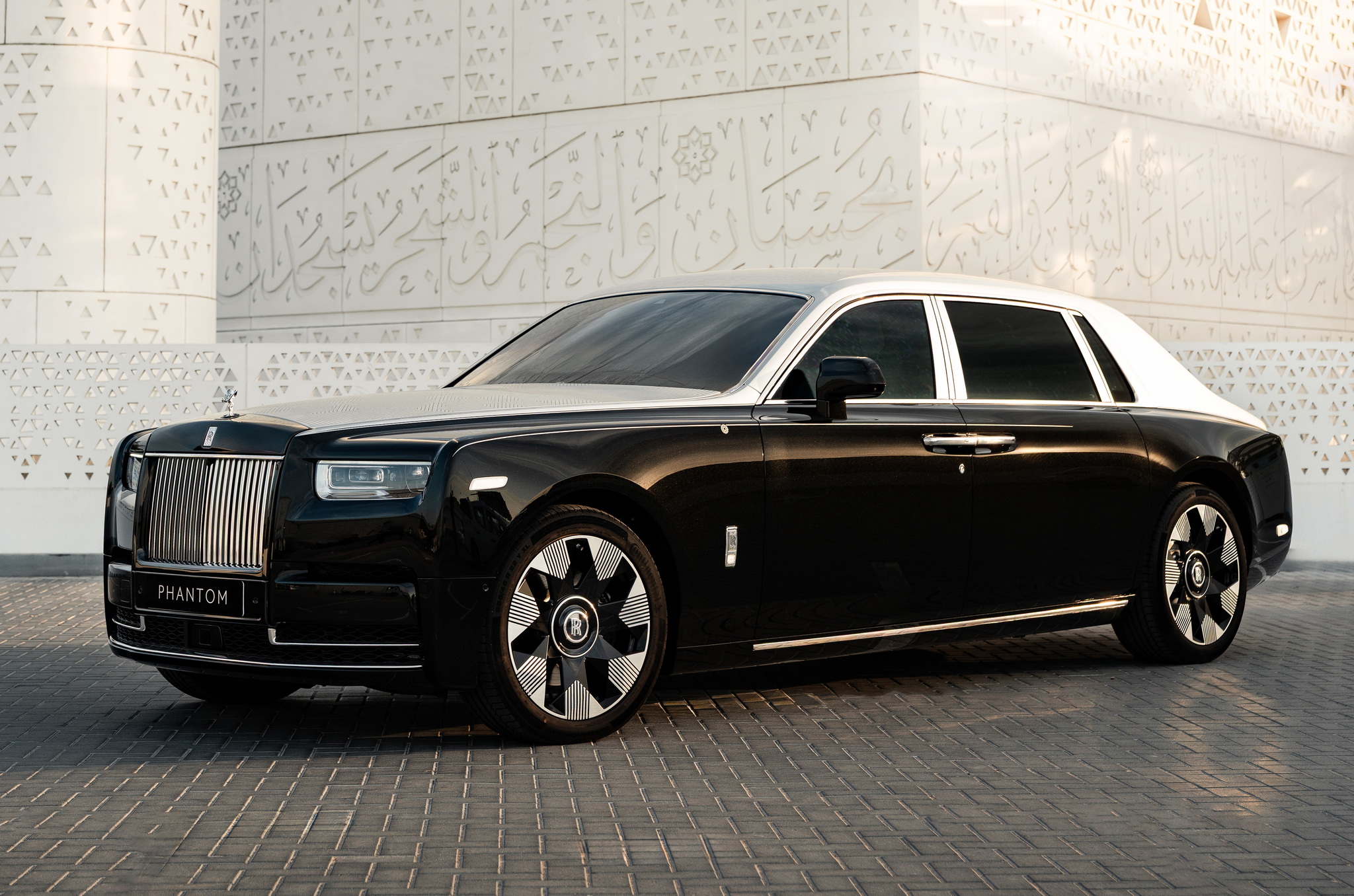 Rolls-Royce Phantom Arabesque ผลงานสั่งทำพิเศษหนึ่งเดียวในโลกจาก Private Office Dubai ซึ่งเป็นสถานที่สุดเอ็กซ์คลูซีฟสำหรับ Bespoke รถของคุณในดูไบ รถคันนี้ได้แรงบันดาลใจจากลวดลายเรขาคณิตแบบ mashrabiya ซึ่งพบได้ในสถาปัตยกรรมตะวันออกกลาง ลวดลายฉลุอันซับซ้อนนี้ถูกนำมาใช้หลายส่วนของรถ ที่เห็นชัดสุดคือบนฝากระโปรงหน้านี่ถือเป็น Rolls-Royce คันแรกที่ใช้เทคนิคเลเซอร์แกะสลักลวดลายลงบนพื้นผิวภายนอก