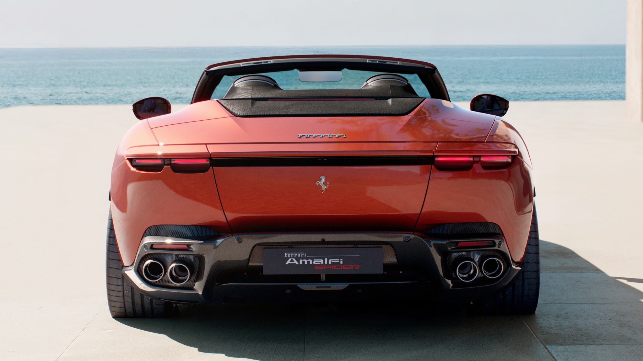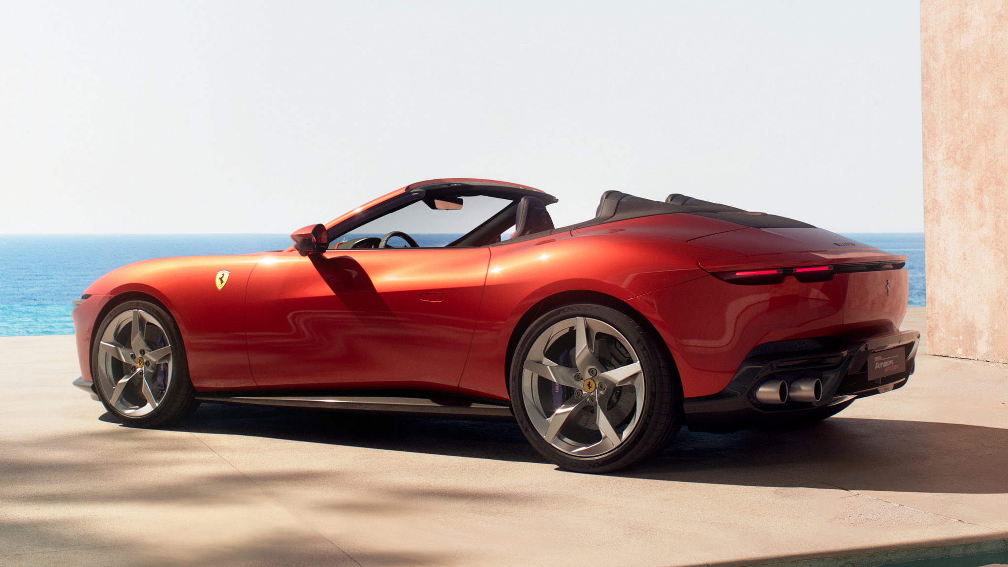 Amalfi Spider ยังคงยึดแนวทางเดียวกับ Roma Spider เป็นรถ GT แบบ 2+ ที่นั่ง เน้นขับสบายๆ (เบาะหลังไม่แนะนำให้นั่งยาวๆ) หลังคาเปิดประทุนผ้าใบ Soft top ใช้เวลาเปิด 13.5 วินาที ทำงานได้ที่ความเร็วไม่เกิน 60 กม./ชม. หลังคาผ้าใบมีการเสริมถึง 5 ชั้น เพื่อการเก็บเสียงและลดอุณหภูมิจากภายนอกได้มีประสิทธิภาพ พื้นที่สำหรับเก็บสัมภาระจะอยู่ที่ 255 ลิตรเมื่อปิดหลังคา และ 172 ลิตรเมื่อเปิดหลังคา เพียงพอกับการใช้งานในชีวิตประจำวัน ส่วนท้ายรถมากับปีกหลังแอ๊คทีฟทำงานอัตโนมัติปรับได้ 3 ระดับ ได้แก่ แรงต้านอากาศต่ำ (Low Drag), แรงกดปานกลาง (Medium Downforce) และแรงกดสูง (High Downforce) ได้แรงกดสูงสุด 110 กิโลกรัม ที่ความเร็ว 250 กม./ชม.