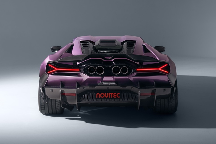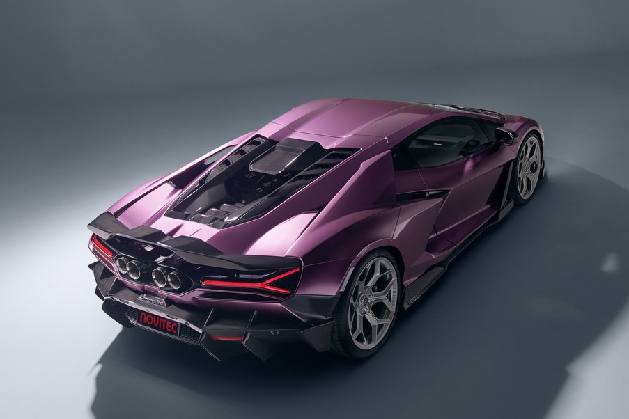 Revuelto คันนี้โดดเด่นด้วยสีม่วงที่ชวนให้นึกย้อนไปถึงรุ่น Diablo SE 30 ตัวฉลองครบรอบ 30 ปี ในปี 1993 ยิ่งผนวกเข้ากับชุดแต่งรอบคันของ Novitec ทำให้มันพิเศษยิ่งขึ้นอีก ชุดแต่งทุกชิ้นทำจากคาร์บอนไฟเบอร์ทั้งหมด เช่น สปลิตเตอร์หน้า, ฝากระโปรงหน้า, สกิร์ตข้าง, ครีบรีดอากาศ, ช่องรับอากาศเหนือฝาครอบเครื่อง, สปอยเลอร์ใหม่ และดิฟฟิวเซอร์ท้าย ชิ้นส่วนเหล่านี้ผ่านการทดสอบในอุโมงค์ลม ส่งผลต่อประสิทธิภาพแรงกดที่มากขึ้น ได้ล้อฟอร์จที่พัฒนาร่วมกับ Vossen มีให้เลือก 3 ดีไซน์ และมากกว่า 70 เฉดสี อย่างคันสีม่วงในภาพคือล้อรุ่น NL5 ด้านหน้าขนาด 21 นิ้ว หลัง 22 นิ้ว