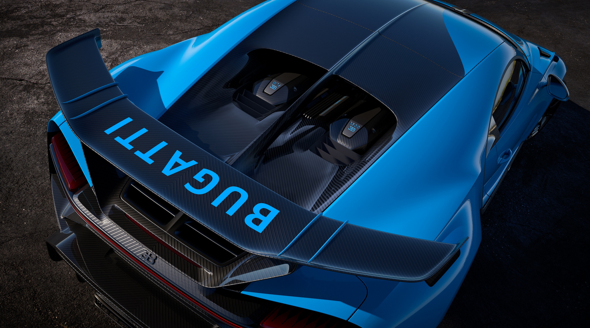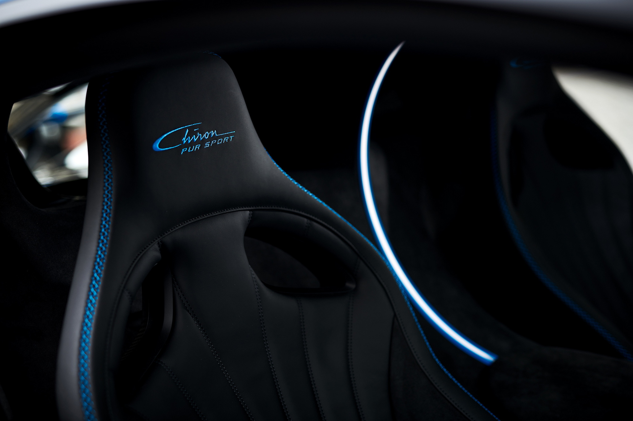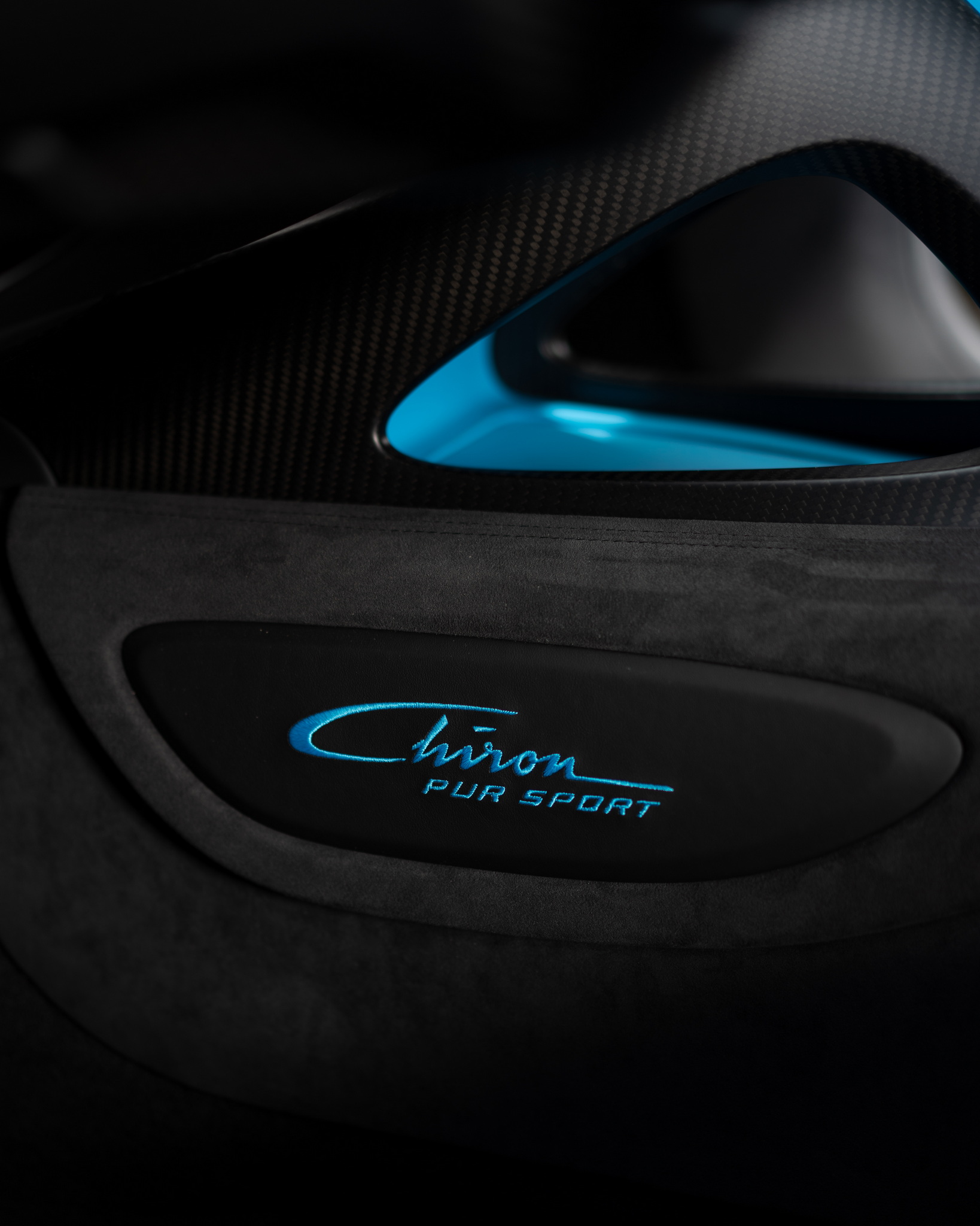 Bugatti Chiron Pur Sport ในเวอร์ชั่นพิเศษนี้ ตัวรถมีงานดีไซน์ที่ดุดันกว่าเดิม ตัวถังถูกลดน้ำหนักลง 50 กิโลกรัม ปรับปรุงด้านแอร์โรไดนามิกรอบคัน เริ่มจากชุดกันชนหน้าใหม่ ถูกขยายช่องลมให้ใหญ่ขึ้น เสริมด้วยลิ้นด้านล่างเพิ่ม Downforce ด้านท้าย Diffuser ยกชุดใหม่ ปลายท่อไอเสียผลิตด้วย 3D print สปอยเลอร์ท้ายขนาดใหญ่ แบบยึดตายตัว ช่วงล่างมีการเซทค่าสปริงให้ Firm ขึ้น ทางด้านหน้า 65% และหลัง 33% ปรับมุม Camber ให้ลบ 2.5 องศา พร้อมโครงสร้างแซสซีส์แข็งแกร่งกว่าเดิม ชุดล้อใช้เป็นวัสดุแมกนีเซียม ลดน้ำหนักได้อีก 16 กิโลกรัม จากรุ่นปกติ ลวดลายออกแบบให้กระจายความร้อนจากระบบเบรกได้ดี และลดแรงต้าน จับคู่กับยาง Michelin Pilot Sport Cup 2R ที่ยึดเกาะดีขึ้นอีก 10% ให้มาในขนาด 285/30 R20 และหลัง 335/25 R21