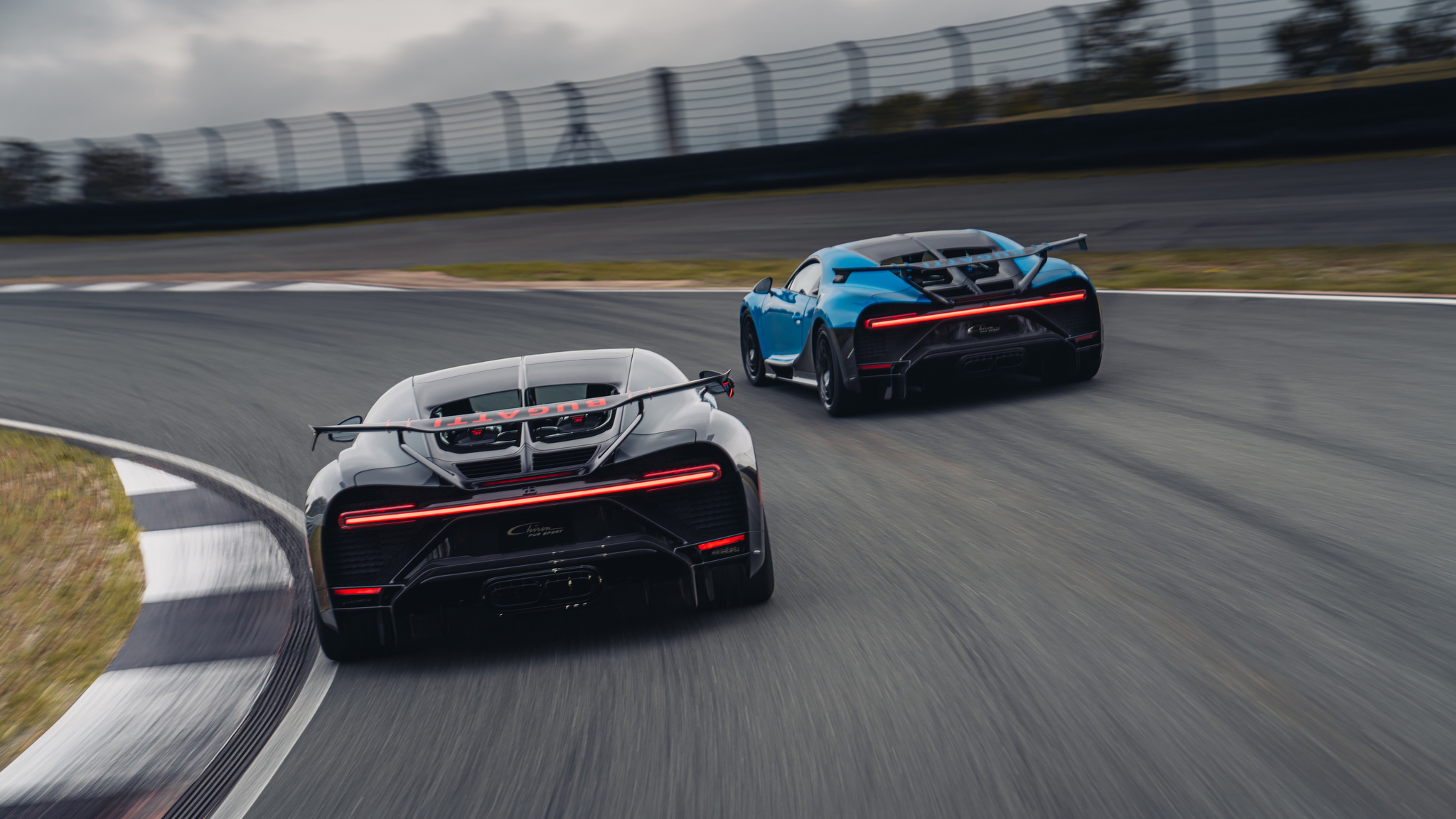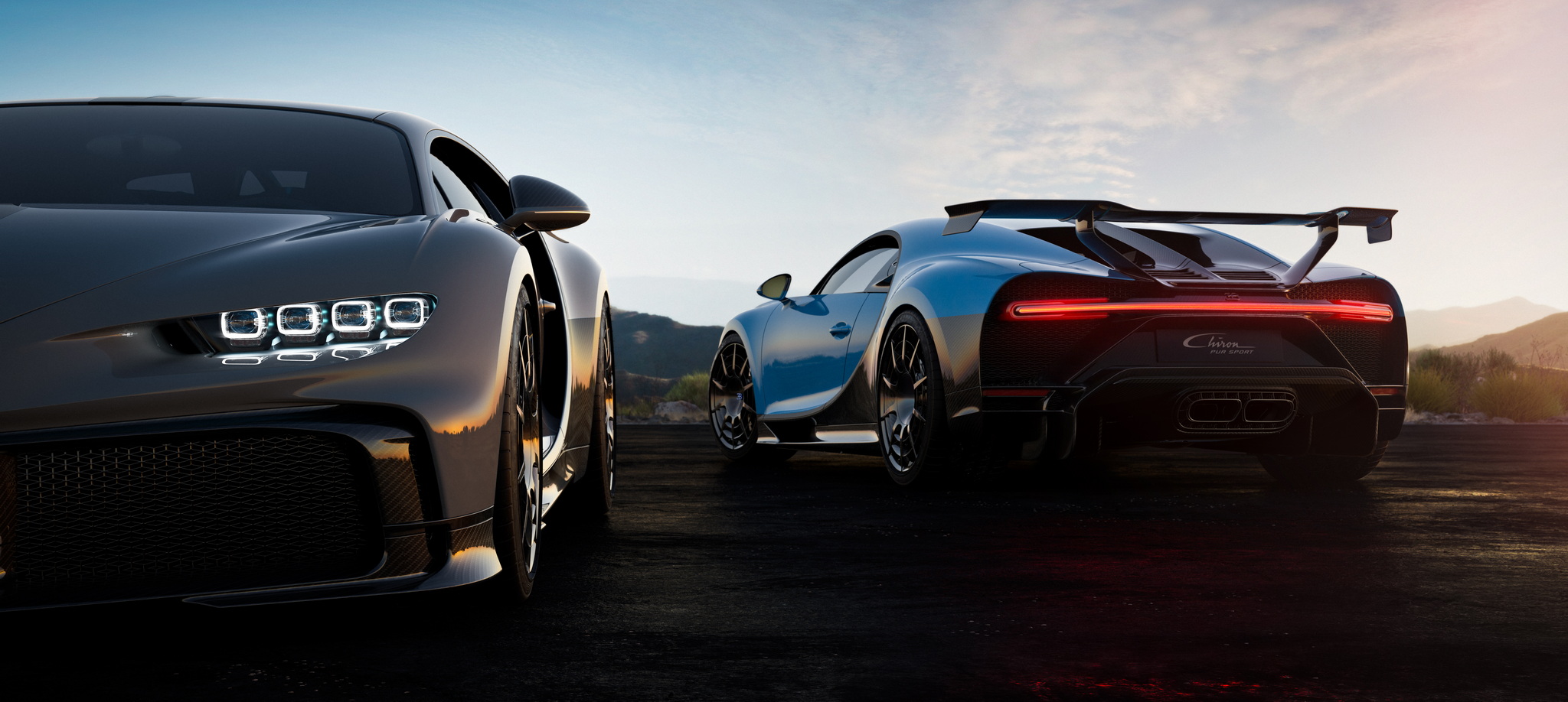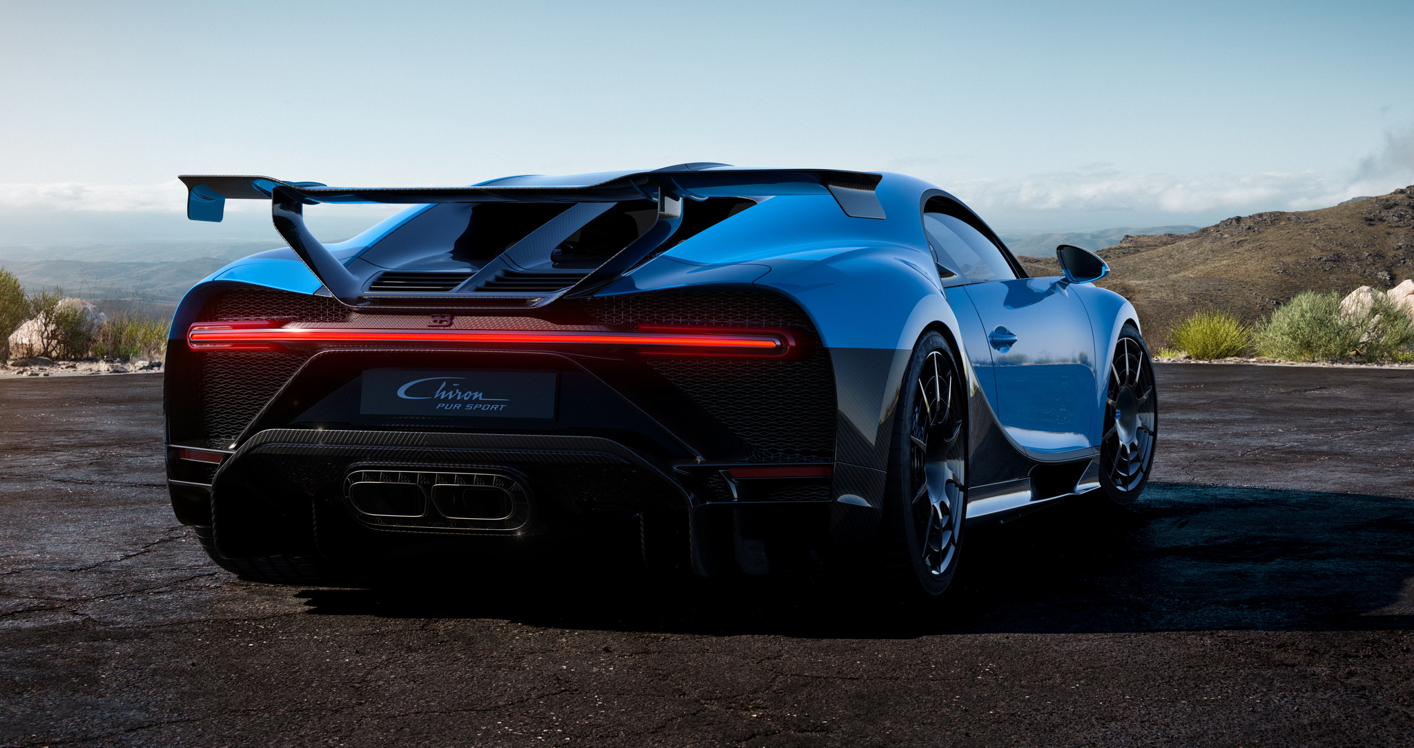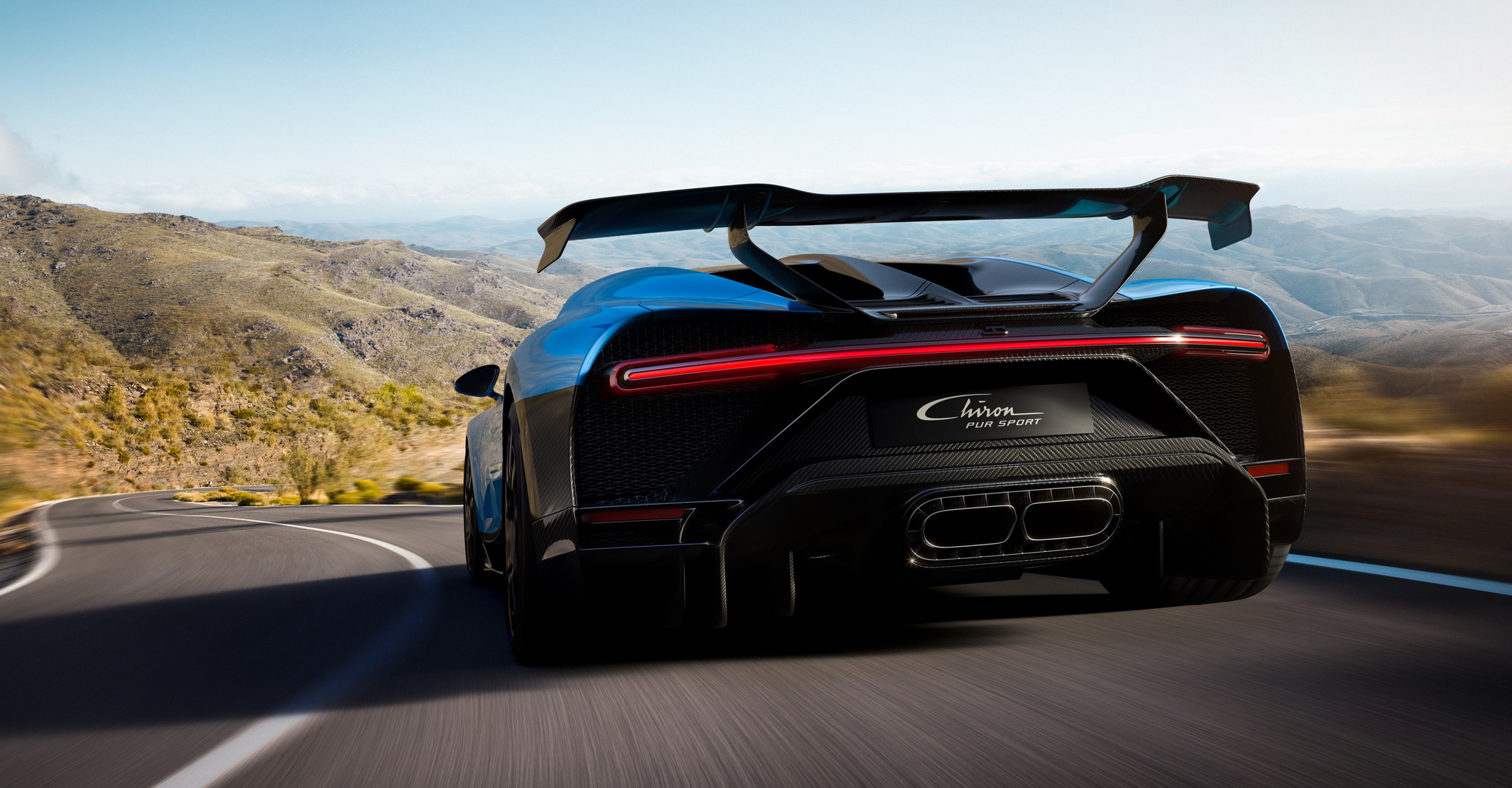 Bugatti Chiron Pur Sport ในเวอร์ชั่นพิเศษนี้ ตัวรถมีงานดีไซน์ที่ดุดันกว่าเดิม ตัวถังถูกลดน้ำหนักลง 50 กิโลกรัม ปรับปรุงด้านแอร์โรไดนามิกรอบคัน เริ่มจากชุดกันชนหน้าใหม่ ถูกขยายช่องลมให้ใหญ่ขึ้น เสริมด้วยลิ้นด้านล่างเพิ่ม Downforce ด้านท้าย Diffuser ยกชุดใหม่ ปลายท่อไอเสียผลิตด้วย 3D print สปอยเลอร์ท้ายขนาดใหญ่ แบบยึดตายตัว ช่วงล่างมีการเซทค่าสปริงให้ Firm ขึ้น ทางด้านหน้า 65% และหลัง 33% ปรับมุม Camber ให้ลบ 2.5 องศา พร้อมโครงสร้างแซสซีส์แข็งแกร่งกว่าเดิม ชุดล้อใช้เป็นวัสดุแมกนีเซียม ลดน้ำหนักได้อีก 16 กิโลกรัม จากรุ่นปกติ ลวดลายออกแบบให้กระจายความร้อนจากระบบเบรกได้ดี และลดแรงต้าน จับคู่กับยาง Michelin Pilot Sport Cup 2R ที่ยึดเกาะดีขึ้นอีก 10% ให้มาในขนาด 285/30 R20 และหลัง 335/25 R21