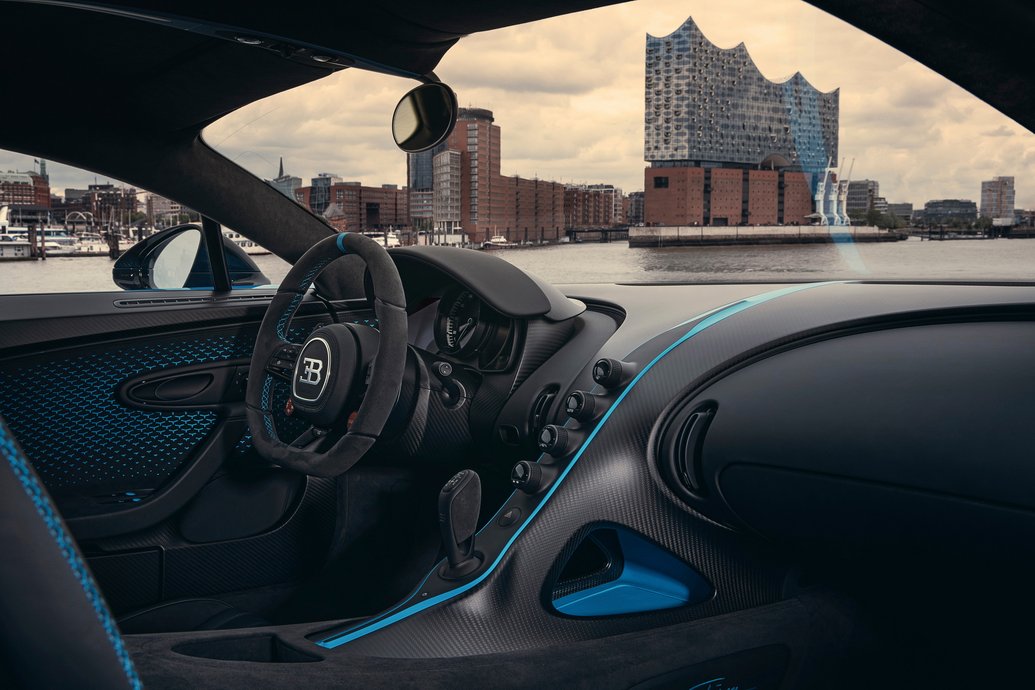 ภายในห้องโดยสารของ Bugatti Chiron Pur Sport มาในสีทูโทน แผงประตูลวดลายใหม่ Dynamic Alcantara ช่วยเพิ่มมิติความหรูหรา มากับพวงมาลัยมัลติฟังก์ชั่น พร้อมก้าน Paddle shift ทรงใหม่แบบเซาะร่อง และเบาะนั่งตัดเย็บตรา Chiron Pur Sport ที่จะทำให้คุณไม่อยากลุกออกจากรถ