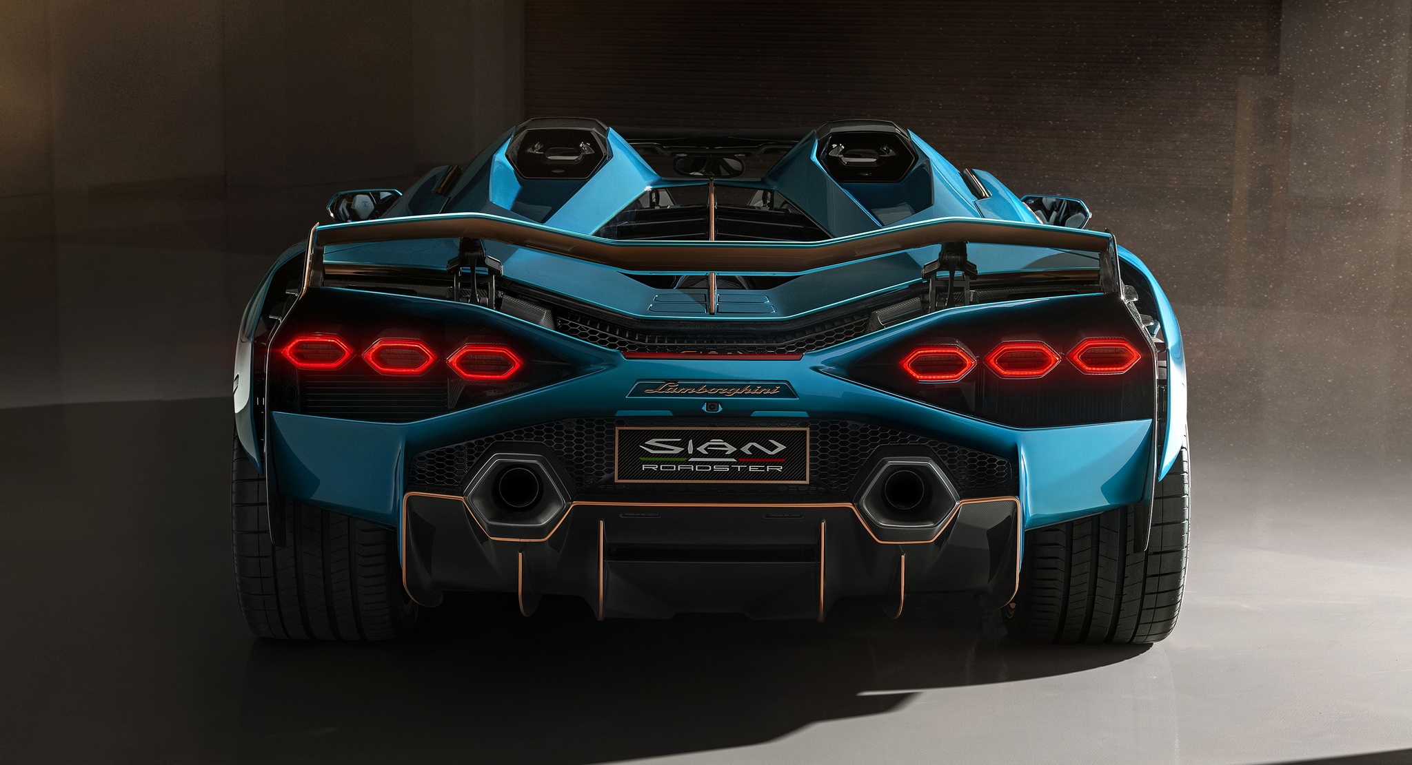 Sian Roadster ไฮเปอร์คาร์เปิดหลังคาสุดหรู มากับรูปทรงที่ลู่ลมตามหลักอากาศพลศาสตร์ ตัวถังใช้คาร์บอนไฟเบอร์เต็มรูปแบบ แซสซีส์เป็นแบบ Monocoque คาร์บอนไฟเบอร์ เสริมแกร่งด้วยเฟรมอลูมิเมียม ตัวรถมีการกระจายน้ำหนักหน้า-หลังที่ 43/57 % งานดีไซน์ที่ยึดมาจากรถต้นแบบรุ่น Terzo Millennio ไฟหน้ารูปทรง Y-shape ช่องดูดอากาศด้านข้างได้แรงบันดาลใจจากรุ่น Countach บั้นท้ายมาด้วยเส้นสายที่ดุดัน ส่วนท้ายใกล้ฝาครอบเครื่องยนต์ ยังติดตั้งระบบ Cooling System แบบกลไกเปิด-ปิดทำงานได้เองเมื่ออุณหภูมิเครื่องยนต์สูงขึ้น ชุดล้อทอง Oro Electrum ให้มาขนาด 20 นิ้ว ด้านหน้า และหลังขนาด 21 นิ้ว ใช้ยาง P Zero Corsa ไฟท้ายและปลายท่อไอเสียมาในรูปทรง 6 เหลี่ยม Hexagons เช่นเคย ปีกท้ายขนาดใหญ่แบบ Active เพิ่มแรงกด และสปอยเลอร์แนวตั้ง 2 ตัว ซ้าย-ขวา ช่วยเพิ่มความเสถียรของตัวรถ พร้อมกับแปะหมายเลข 19 ไว้ตามจำนวนการผลิตนั่นเอง