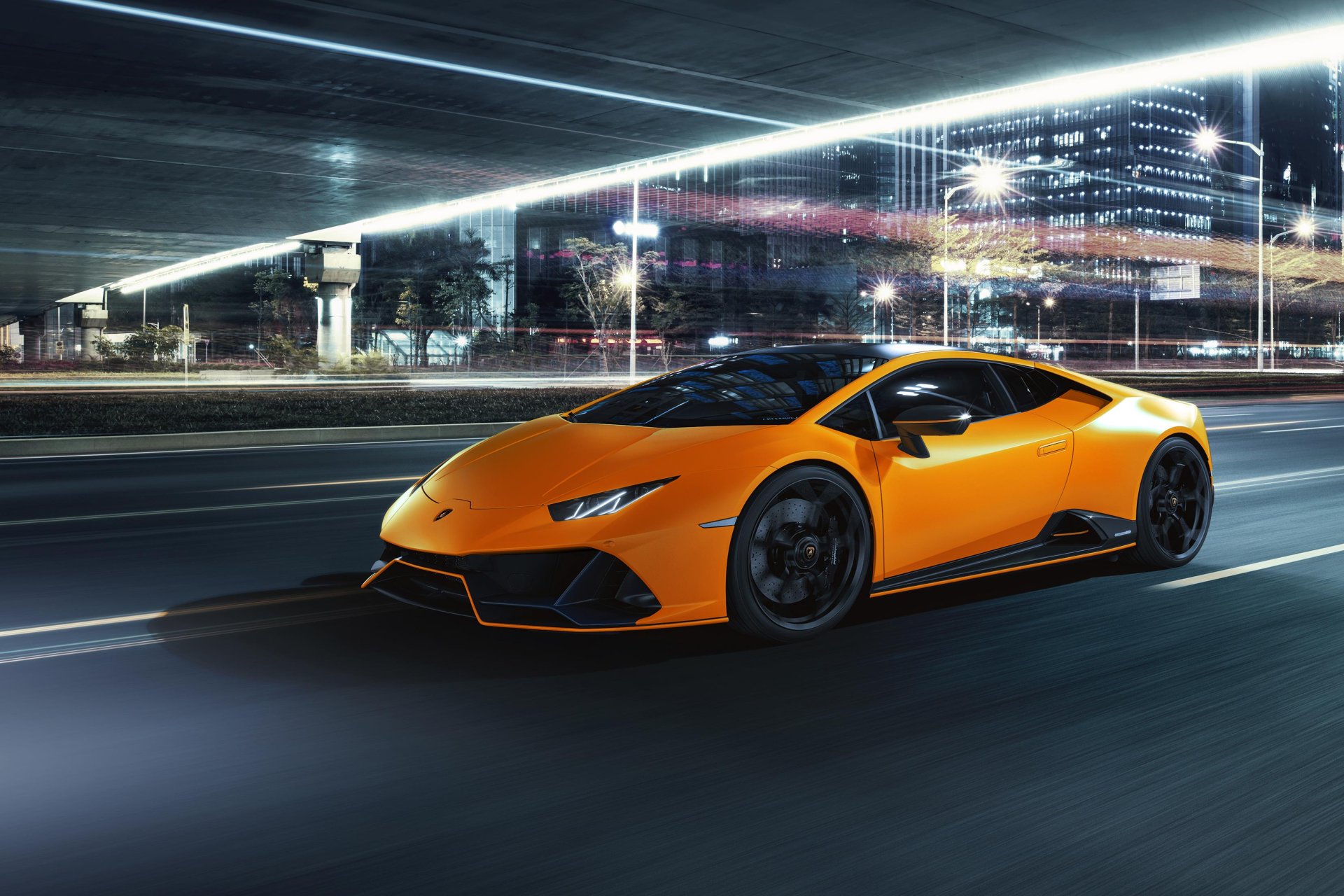 Huracán EVO Fluo Capsule ถูกตกแต่งพิเศษเน้นเพิ่มความมีชีวิตชีวา สดใสมากขึ้น สีตัวถังเป็นแบบ Matte มากับ 5 เฉดสีสุดแสบสัน คือ สีส้ม Arancio Livrea, สีเขียว Verde Shock, สีฟ้า Celeste Fedra, สีเหลือง Giallo Clarus และส้ม Arancio Dac ผสานกับสีดำด้านตามจุดต่างๆ เช่น กันชนหน้าบริเวณช่องดักอากาศ, สเกิร์ตข้าง, ด้านบนหลังคา, กระจกมองข้าง และ Diffuser ท้าย พร้อมเพิ่มเส้นไฮไลต์ที่ช่วยความโดดเด่นให้รถอย่างมาก ส่วนชุดล้อให้แบบ 5 ก้าน Forged น้ำหนักเบา ขนาด 20 นิ้ว สีดำด้าน สวมกับยางหน้าไซด์ 245/30 R20 และด้านหลัง 305/30 R20 ระบบเบรกใช้จานคาร์บอน-เซรามิก เลือกสีคาลิปเปอร์ได้