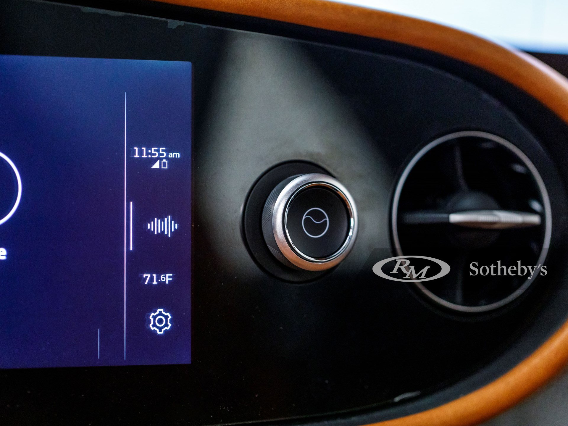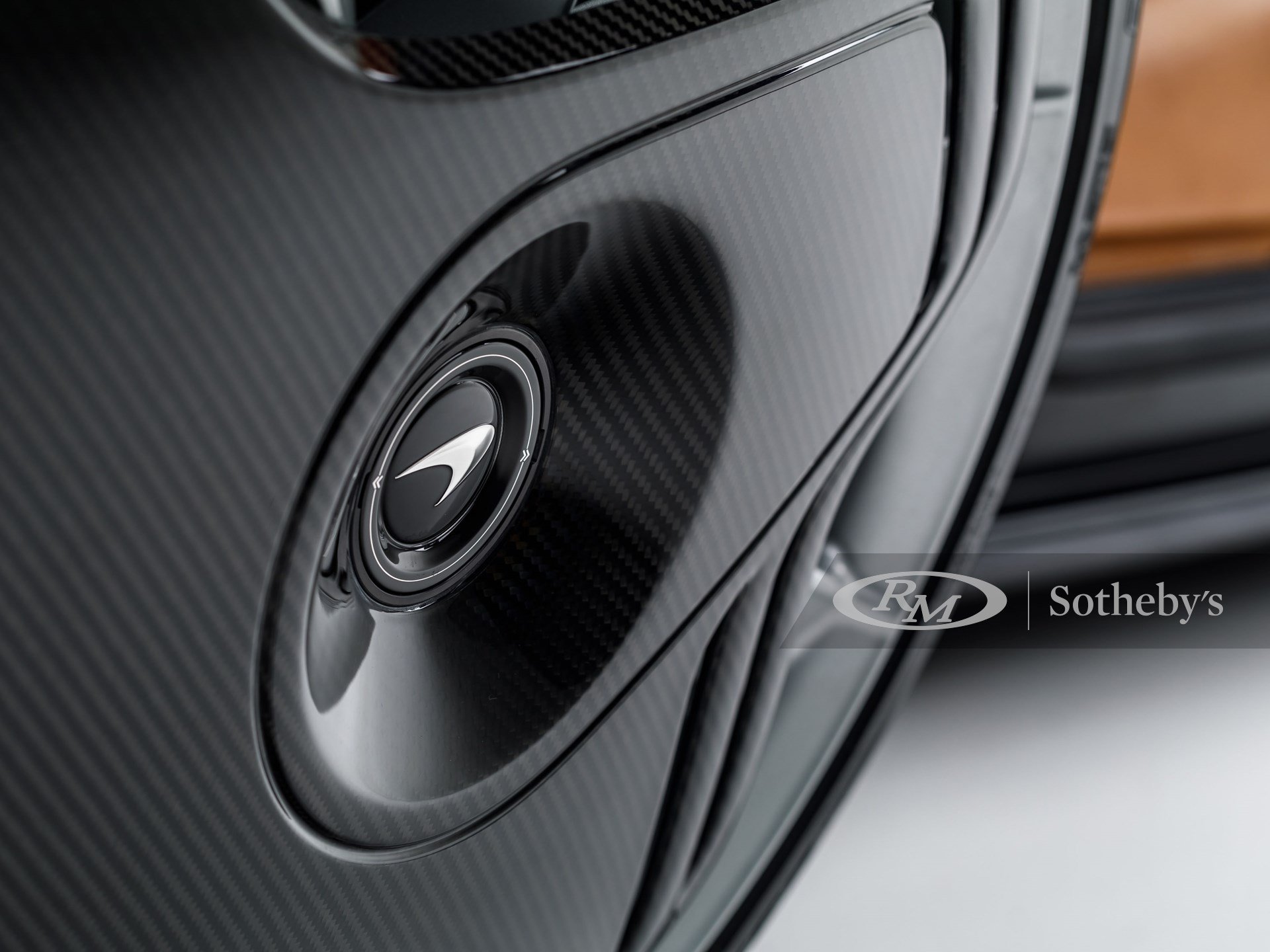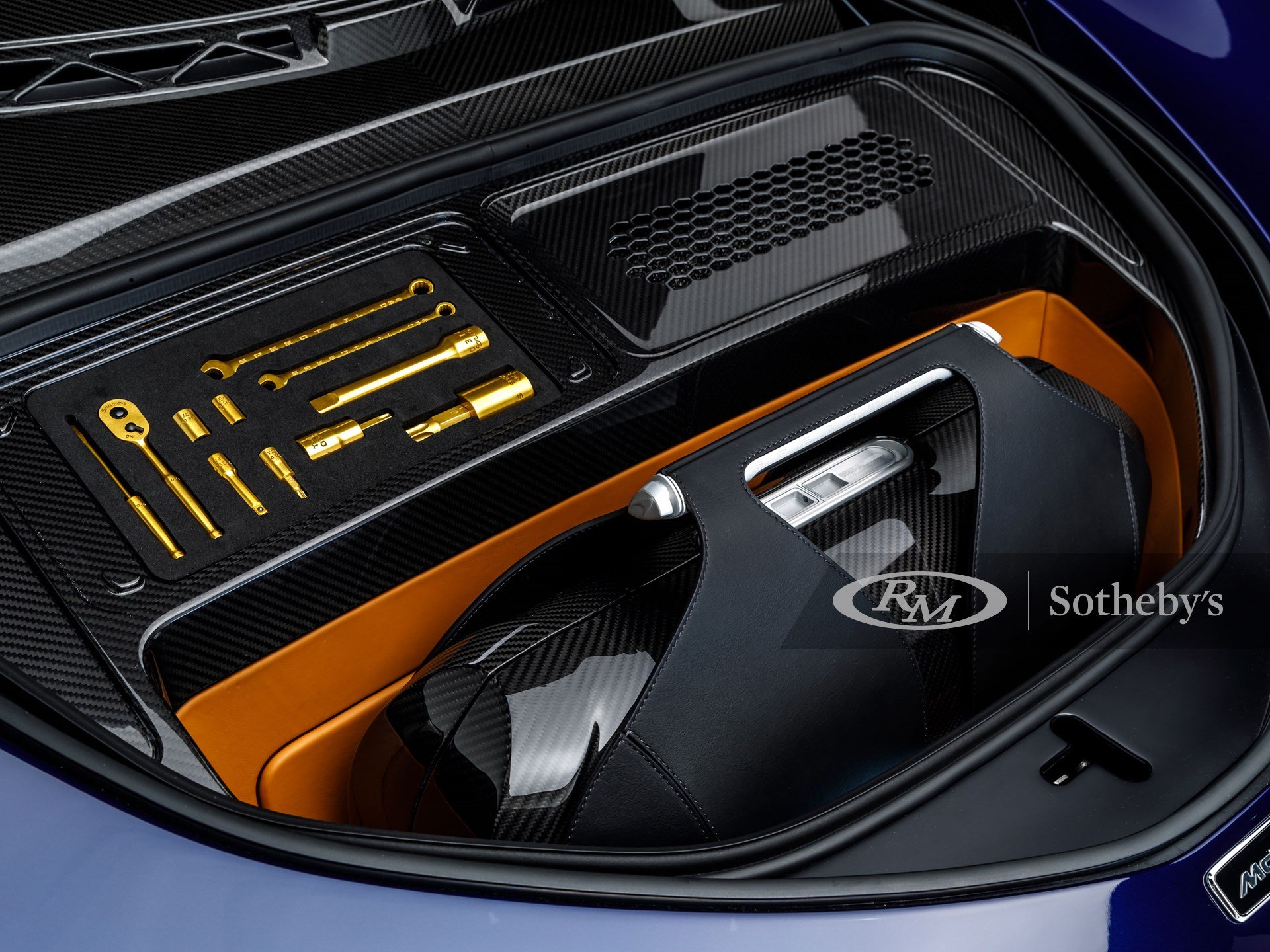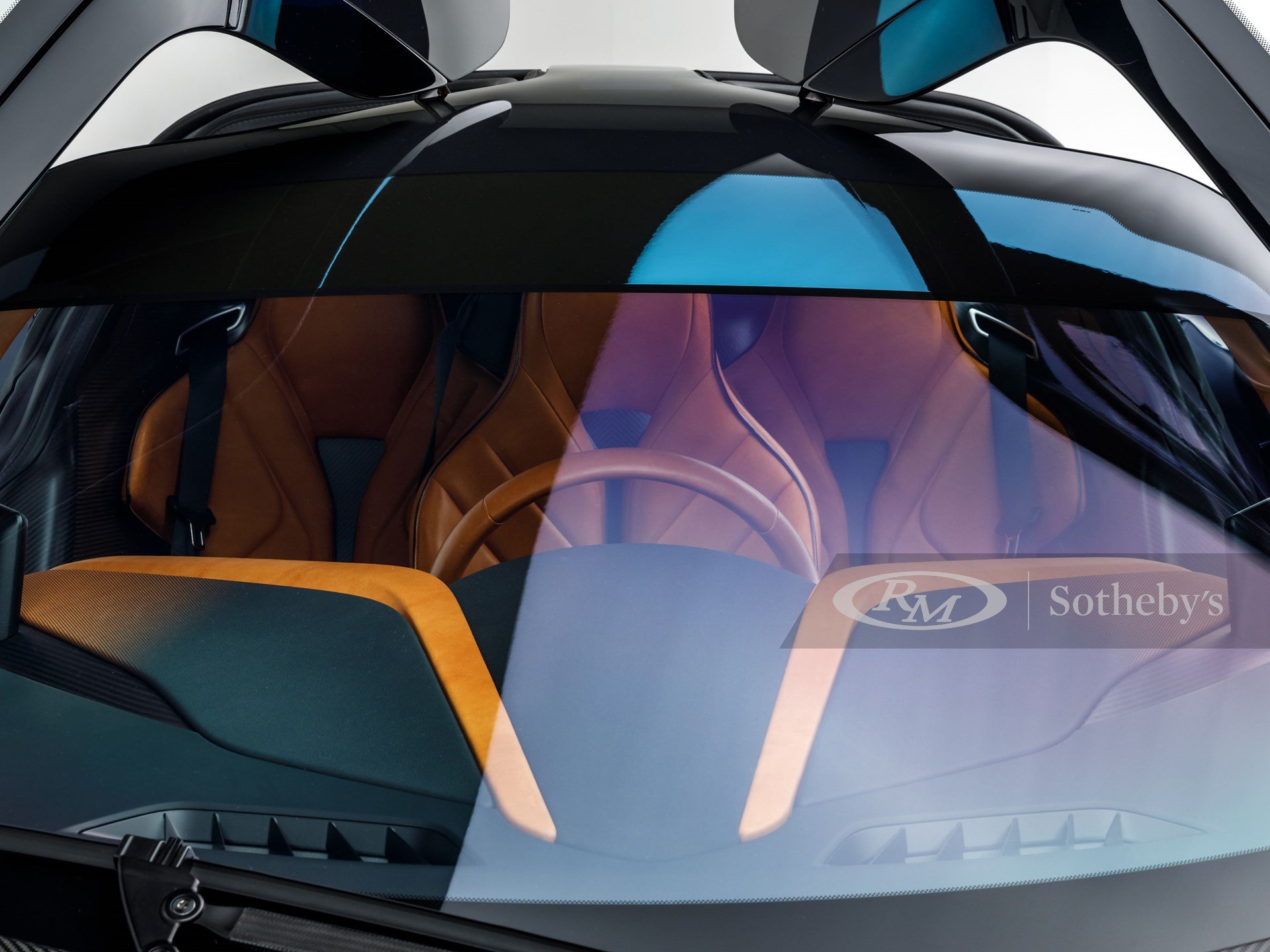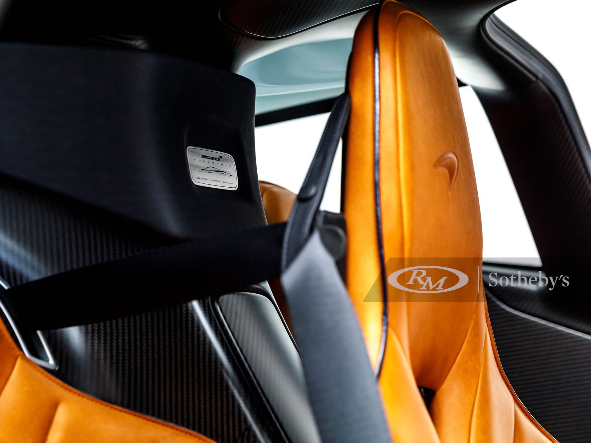 ภายในห้องโดยสารแบบ 3 ที่นั่ง ดึงมาจากรถระดับตำนานอย่าง McLaren F1 โดยคันนี้ เลือกใช้หนังแท้สี Tan สไตล์วินเทจ ครอบคลุมทั่วห้องโดยสารให้บรรยากาศแนวเท่ ดูอบอุ่นไม่เหมือนใคร รวมกับวัสดุ Dry carbon รีดน้ำหนัก ก้าน paddle shift เป็นไทเทเนียม ลงตัวกับแผงหน้าปัดมาในสไตล์เรียบหรู แบ่งเป็นจอกลางแสดงความเร็ว มีโหมดการขับขี่ให้เลือก 3 แบบ Comfort, Sport และ Velocity จอด้านซ้ายไว้คุมระบบปรับอากาศ ระบบนำทาง ส่วนจอขวาเป็น Infotainment คุมความบันเทิง เชื่อมต่อต่างๆ และอีก 2 จอ สำหรับกล้องมองข้าง ด้านบนเพดานจะเป็นที่อยู่ของปุ่มสตาร์ทเครื่องยนต์ ปุ่มเกียร์ สวิทช์เปิด-ปิด ประตู และกระจกไฟฟ้า ที่ให้อารมณ์เหมือนกำลังขับเครื่องบิน