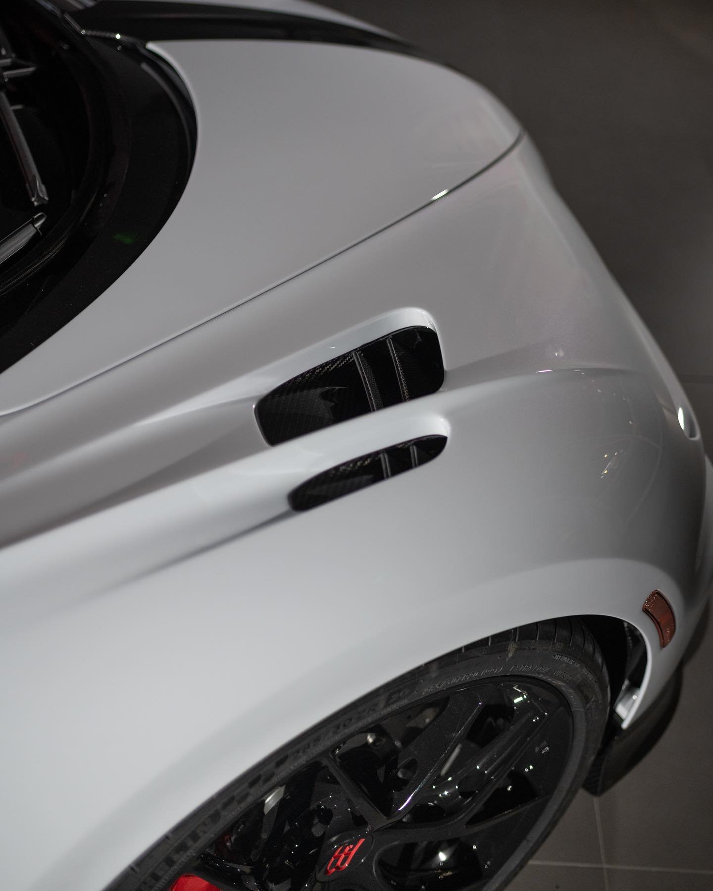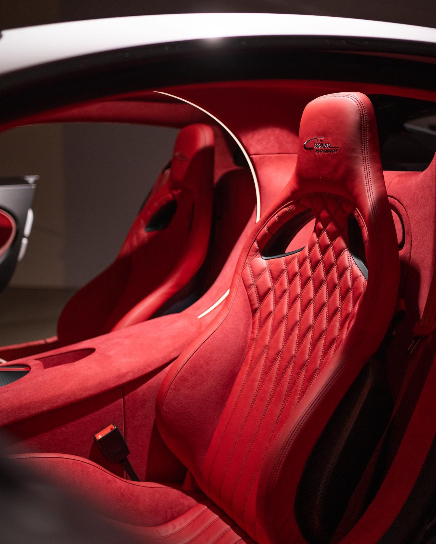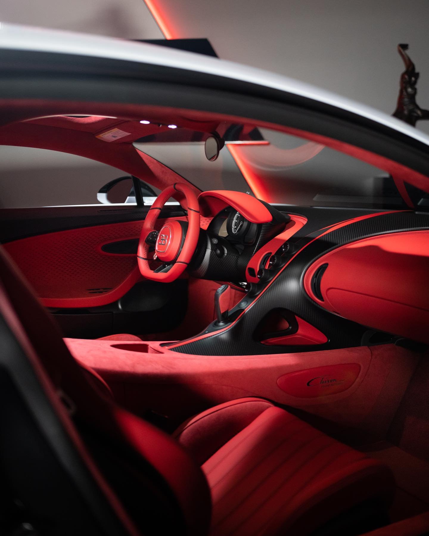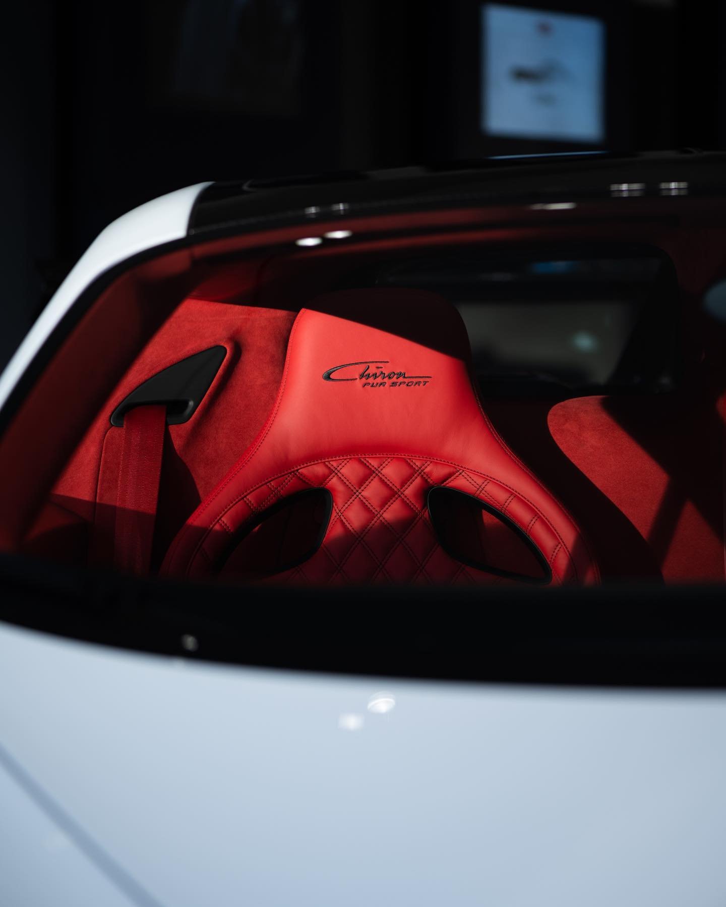 รอกันมานานข้ามปี นับตั้งแต่เปิดตัวในเดือน มี.ค. 2020 ในปี 2021 ถึงเวลาประเดิมส่งมอบ Chiron Pur Sport คันแรกในโลก โดยคันนี้มาจากโชว์รูม Bugatti of Greenwich ในสหรัฐอเมริกา สเปคภายนอกโดดเด่นมากด้วยตัวถังสีขาว Quartz White จัดเต็มด้วยงานโชว์ผิวคาร์บอนไฟเบอร์รอบคัน ตั้งแต่ชุดกันชนลิ้นหน้า, ฝากระโปรง, กระจกมองข้าง, ส่วนล่างข้างตัวรถ, บนหลังคาลากยาวไปถึงปีกท้ายขนาดใหญ่ และสวมล้อแม๊กสีดำเงาตัดกับคาลิปเปอร์เบรกสีแดง ภายในห้องโดยสารของคันนี้มาในโทนสีแดง Italian Red ทั้งหมด โดยมีการแบ่งวัสดุชัดเจนทั้งหนังแท้, Alcantara และคาร์บอนไฟเบอร์ผิวด้าน เพิ่มความโปร่งสบายด้วยหลังคาแบบ Sky View วัสดุลามิเนต เรียกว่าทำเอาคุณจะไม่อยากออกจากรถเป็นแน่