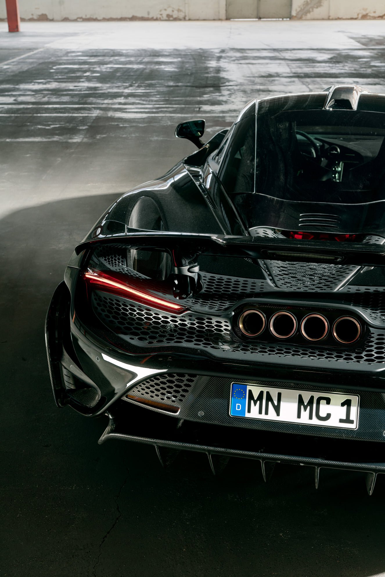 McLaren 765LT มันคือเวอร์ชั่น lightweight ของ 720S ที่เบากว่าเดิม 80 กก. เครื่องยนต์เหมือนกัน ขนาด 4.0 ลิตร V8 เทอร์โบคู่ แต่ปรับกำลังเพิ่มเป็น 765 แรงม้า กับแรงบิด 800 นิวตัน-เมตร เกียร์ไวขึ้นกว่าเดิม 15% แอร์โรไดนามิกปรับใหม่รอบคัน ช่วงล่างแข็งขึ้นยึดเกาะดีกว่าเดิม ระบบเบรกดึงมาจากรุ่น Senna เรียกว่าแทบจะไม่ต้องแต่งอะไรเพิ่มอีกแล้ว แต่สาวก Novitec ย่อมไม่หยุดที่เดิมๆ พวกเขามีชุดแต่งไว้รองรับเป็นวัสดุคาร์บอนไฟเบอร์ทั้งหมด จุดที่เห็นชัดสุดน่าจะเป็นฝากระโปรงชุดใหม่ N-Largo สไตล์ลูกพี่ Senna, ช่อง Scoop ดักอากาศบนหลังคา, ช่องลมข้างตัวรถ, แผงกาบประตูภายในตัวอักษร Novitec ล้อให้เป็นแบบ Center lock ลาย MC3 Forged จากทาง Vossen เลือกสีเองได้ มาในไซด์หน้าขนาด 20 นิ้ว กับหลังขนาด 21 นิ้ว และช่วงล่างมีการเปลี่ยนสปริงใหม่แบบ Sport ที่สวมในเบ้าโช้คเดิมได้เลย