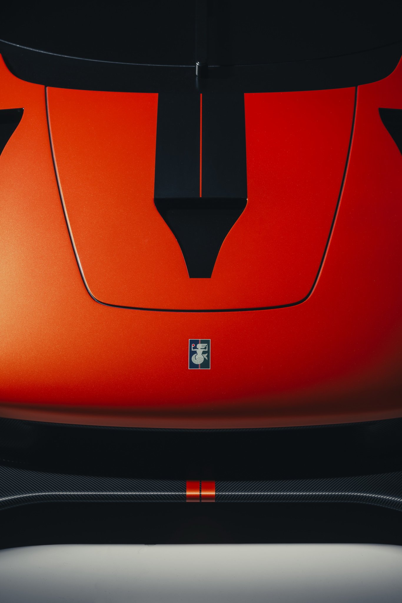 เปิดเข้ามาภายมันคือรถแข่งขนานแท้ ล้อมรอบไปด้วยคาร์บอนไฟเบอร์เพื่อรีดน้ำหนัก ตำแหน่งผู้ขับขี่อยู่ตรงกลางเช่นเคย เบาะจากเดิมมี 3 ที่นั่ง ตัวนี้จะตัดเหลือเพียง 2 โดยฝั่งที่ว่างจะเอาไว้วางถังดับเพลิง และเป็นที่อยู่ของแผงสวิตช์แนวตั้งควบคุมระบบต่างๆ ของตัวรถที่ได้แรงบันดาลใจมาจาก McLaren F1 GTR พวงมาลัยคาร์บอนไฟเบอร์รวมปุ่มต่างๆ ที่จำเป็นไว้เรียบร้อย ส่วนของหน้าจอเป็นแบบดิจิตอลที่ใช้กันในสนามแข่งอยู่แล้ว ทำให้สามารถแสดงข้อมูลต่างๆ ได้อย่างละเอียดมาก