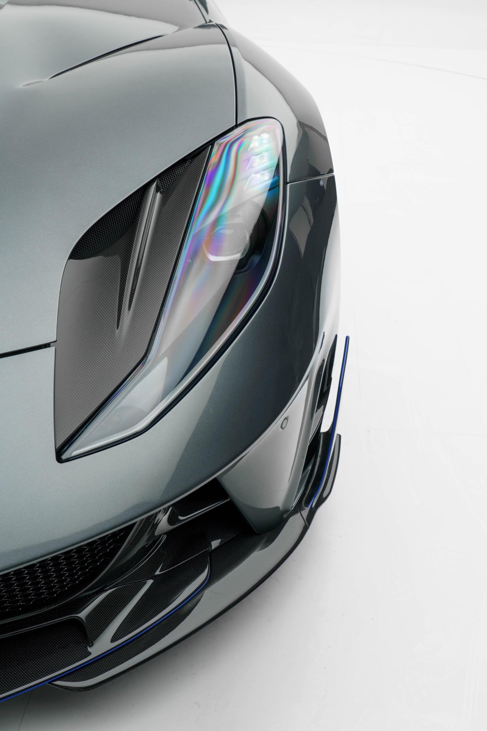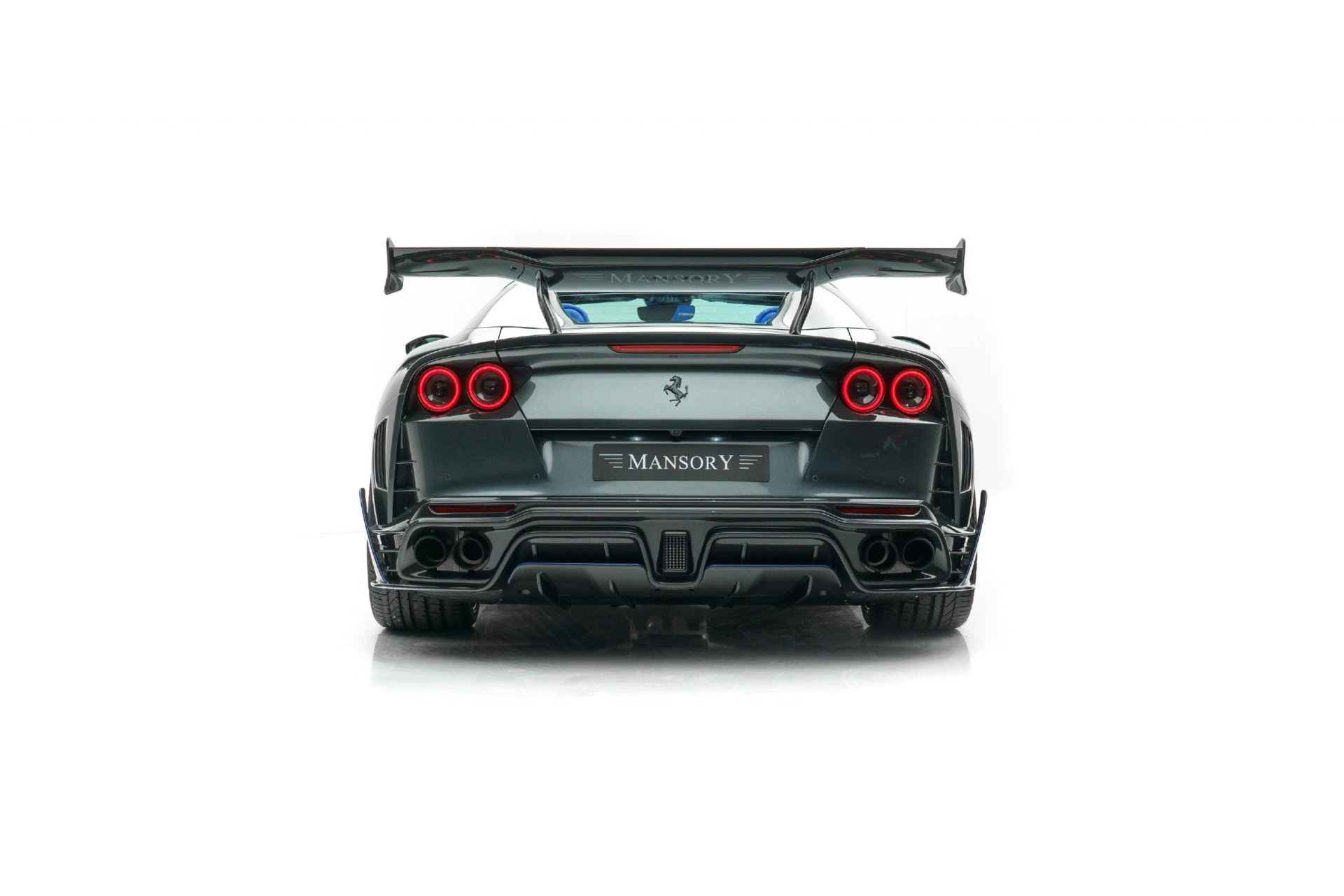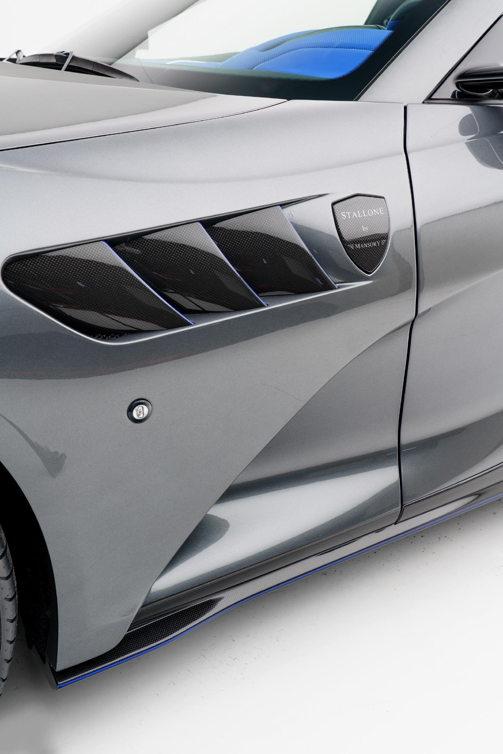 MANSORY Stallone GTS เป็นการปรับโฉมใหม่รอบคันของ Ferrari 812 GTS มากับตัวถังสีเทาพิเศษ Daytona-Grey และใช้สีน้ำเงินเข้มตัดเส้นรอบคัน ระบบช่วงล่างมีการเซ็ทใหม่ ได้ล้อ Forged น้ำหนักเบา ด้านหน้าขนาด 21 นิ้ว หลัง 22 นิ้ว สวมพร้อมยางประสิทธิภาพสูง ชิ้นส่วนพาร์ทเป็นคาร์บอนไฟเบอร์ทั้งหมด ประสิทธิภาพด้านแอร์โรไดนามิกก็ดีขึ้นด้วย ทั้งชุดกันชนหน้าใหม่, ฝากระโปรง, แผงครีบข้างตัวรถ, สเกิร์ตข้าง, กระจกมองข้างเสริมครีบ บั้นท้ายที่มองแล้วโดนใจ กันชนพร้อม Diffuser ชิ้นใหม่หมด ระบบท่อไอเสียก็ของใหม่จัดจ้านกว่าเดิม และปีกท้ายชิ้นโตที่จะช่วยเพิ่ม Downforce ได้อย่างยอดเยี่ยมทีเดียว