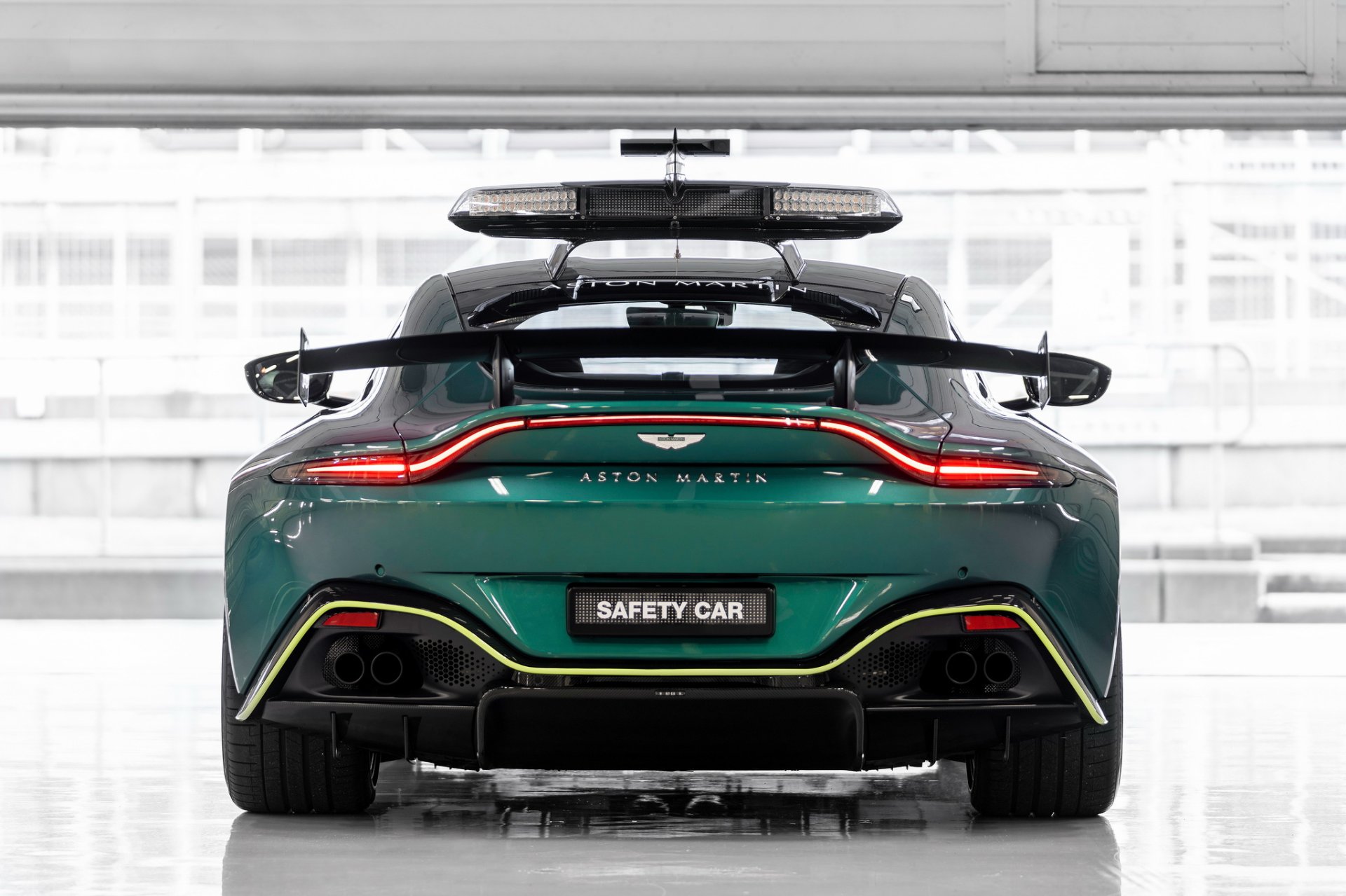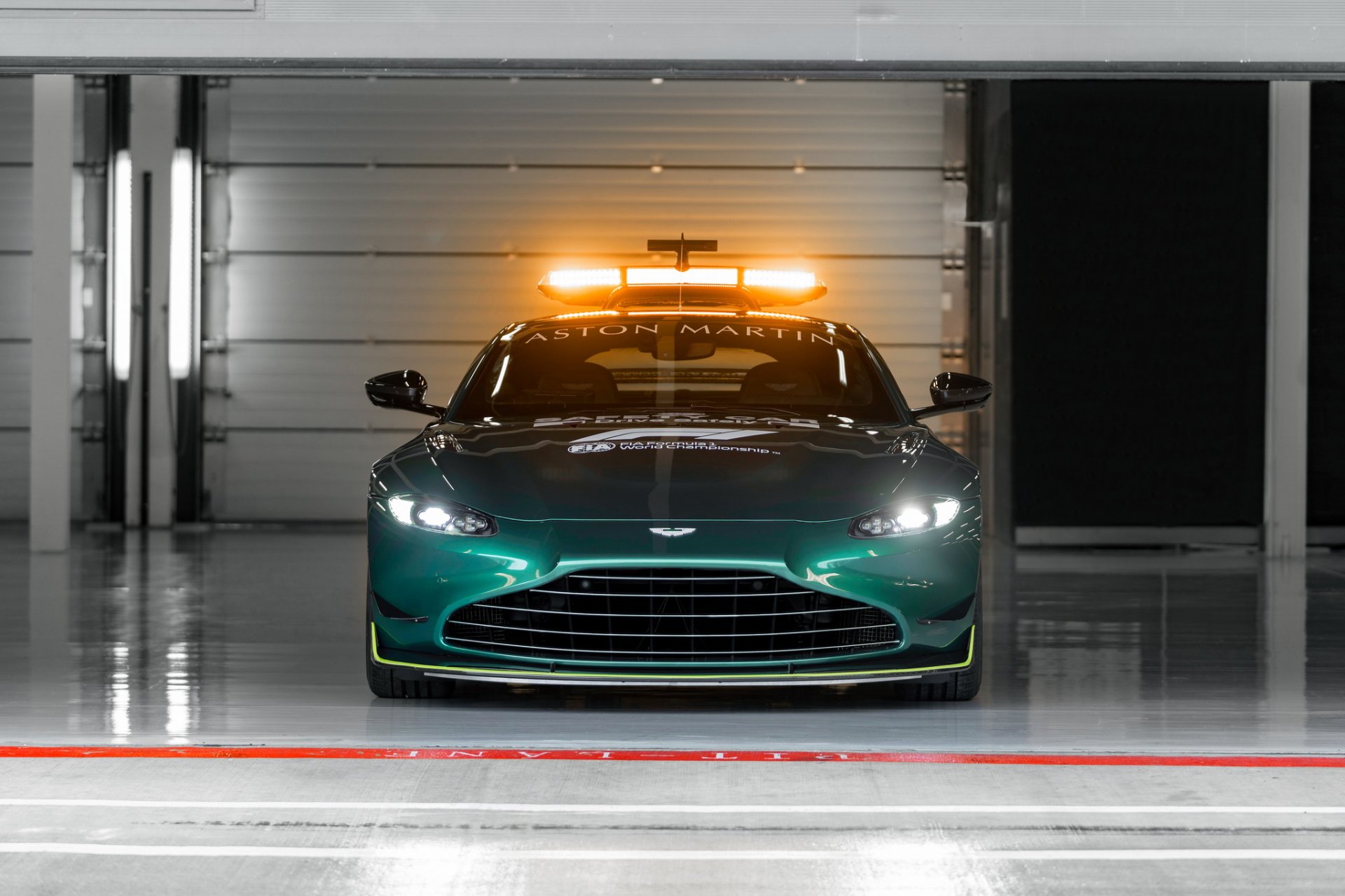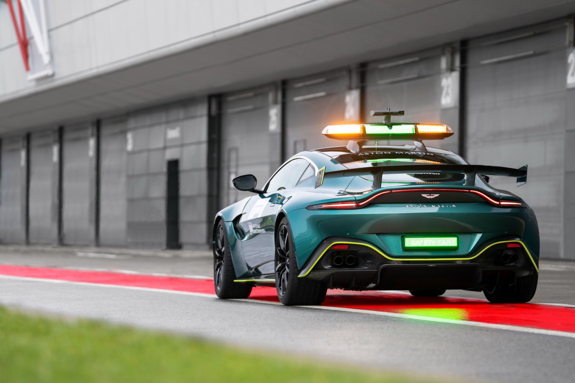 เราจะเริ่มจากทางแอสตันมาร์ตินที่เป็นหน้าใหม่ของวงการ Safety Car เลือกใช้รุ่น Vantage ใหม่ล่าสุด ขับโดย Bernd Mayländer ตัวถังสี Aston Martin Racing Green ตัดด้วยลายเส้นสี Lime Green ด้านแอร์โรไดนามิกได้ลิ้นกันชนหน้าชุดใหม่ สร้างแรงกด 155.6 กก. ที่ความเร็ว 200 กม./ชม. มากกว่า Vantage รุ่นปกติ 60 กก. ได้ม้าเพิ่มขึ้นจากเดิม 25 ตัว เป็น 535 แรงม้า แรงบิดเท่าเดิม 685 นิวตัน-เมตร มีการปรับระบบส่งกำลัง พวงมาลัย ช่วงล่าง ให้มีความกระฉับกระเฉงขึ้น สำหรับรถ Medical Car จะใช้รุ่น Aston Martin DBX ขับโดย Alan van der Merwe ภายในมีอุปกรณ์ทางการแพทย์ ชุดปฐมพยาบาล เครื่องกระตุ้นหัวใจ เครื่องดับเพลิง 2 ชุด และอื่นๆ ครบครัน