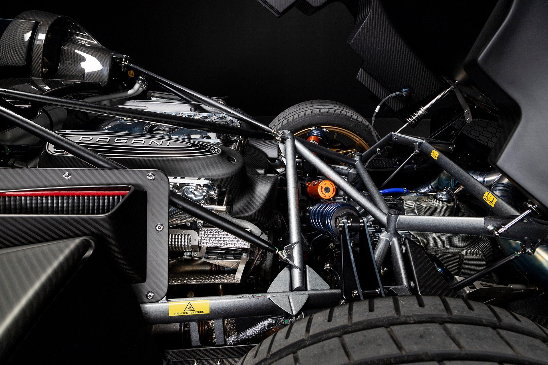 Huayra BC Roadster โดดเด่นด้วยโครงสร้างแซสซีส์แบบ Carbo-Titanium น้ำหนักตัวรถเพียง 1,250 กก. เบากว่ารุ่น Huayra Roadster 30 กก. พาร์ทชิ้นส่วนอัพเกรดรอบคัน ปีกท้ายช่วยเพิ่ม Downforce ได้กว่า 500 กก. ชุดท่อไอเสียไทเทเนียม เบรกจากทาง Brembo 4 CCM คาร์บอน-เซรามิค ด้านหน้าขนาด 398 มม. คาลิปเปอร์ 6 สูบ และหลัง 380 มม. คาลิปเปอร์ 4 สูบ ช่วงล่างวัสดุ Forged อลูมิเนียม แบบ Independent Double Wishbone พร้อมอิเล็คทรอนิคส์ควบคุมโช้คอัพ