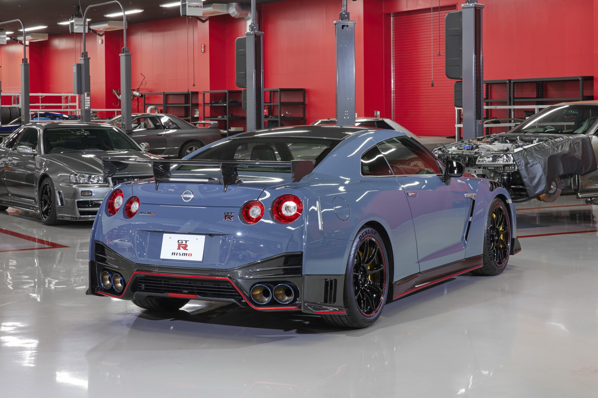 GT-R NISMO Special Edition เผยโฉมมาด้วยสีใหม่เทา Stealth Gray เพิ่มความดุด้วยฝากระโปรงหน้าคาร์บอนไฟเบอร์เงาช่วยลดน้ำหนักลงไป 100 กรัม มีครีบช่องลมที่ซุ้มล้อหน้าเช่นเคย ที่บั้นท้ายสปอยเลอร์เป็นชุดเดิมจากตัว 2020 แต่ตราโลโก้นิสสันเป็นแบบใหม่เรียบร้อยสามารถเปล่งแสงได้ ล้ออลูมิเนียม Rays ขนาด 20 นิ้ว คาดขีดแดงที่ขอบล้อเป็นเอกลักษณ์ของรุ่น NISMO สวมพร้อมยาง Dunlop SP Sport Maxx ชุดเบรกจากทาง Brembo ใช้จานคาร์บอน-เซรามิคขนาดใหญ่ ด้านหน้า 410 มม. และหลังขนาด 390 มม.