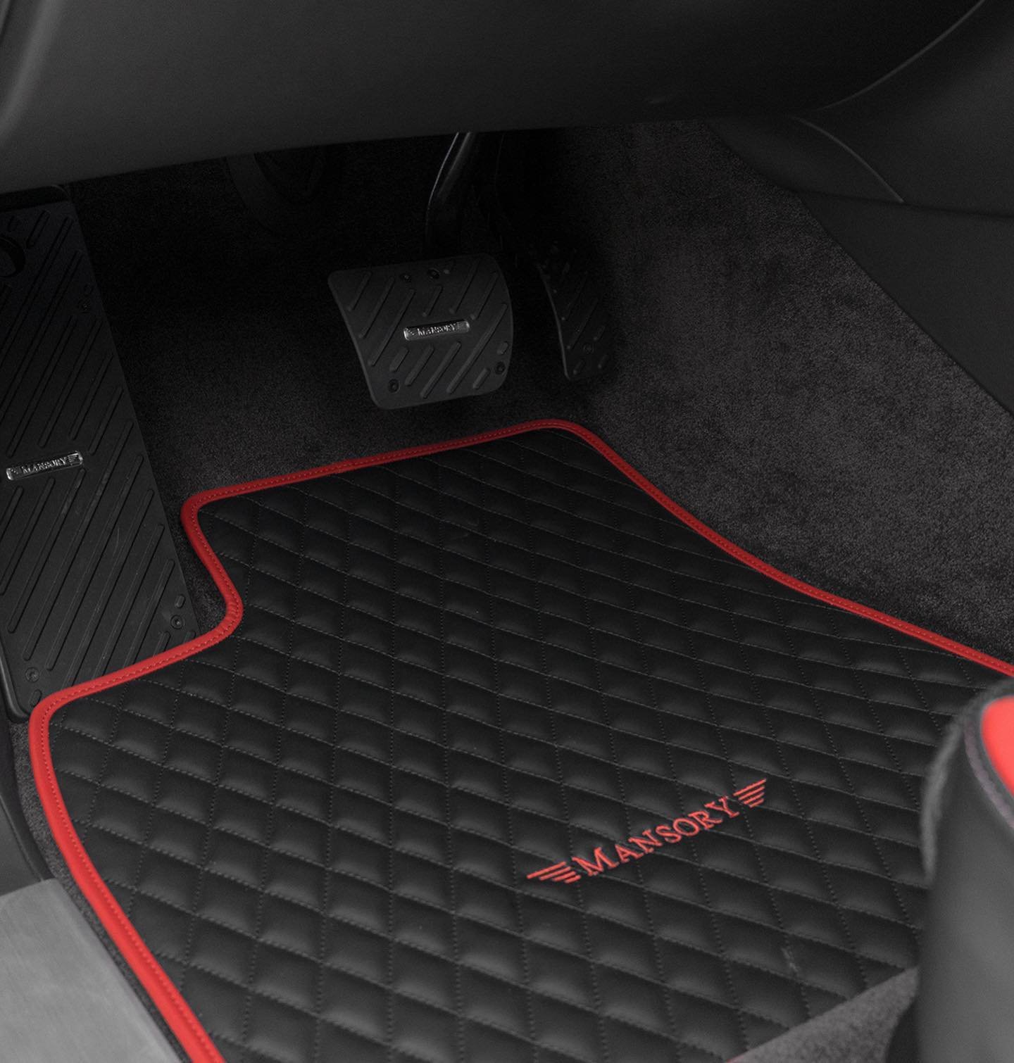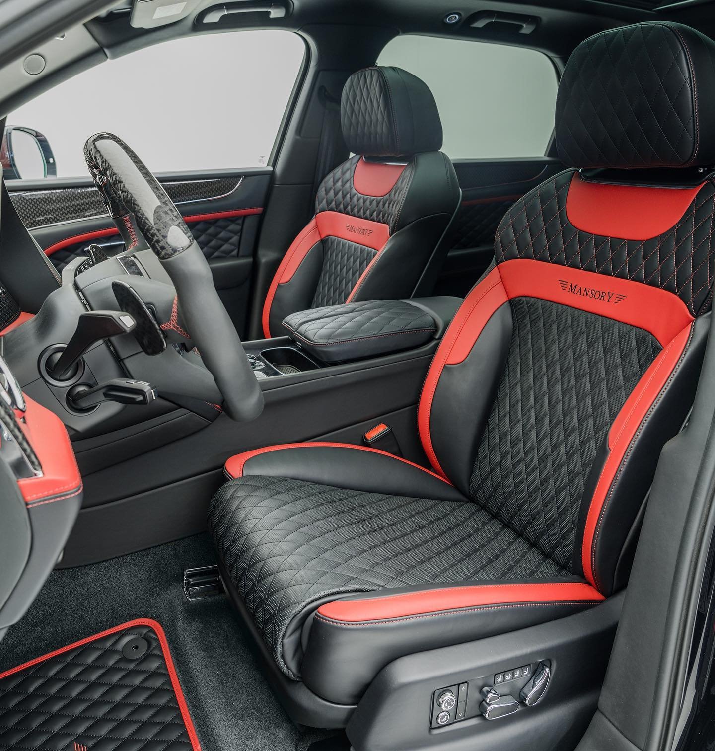 ภายในห้องโดยสารตกแต่งใหม่หมดตามสไตล์ Mansory ใช้หนังแท้มาในสีทูโทน บริเวณแผงข้างประตู, พวงมาลัย และคอนโซลกลางได้คาร์บอนไฟเบอร์ลวดลายพิเศษ เบาะนั่งทุกตำแหน่ง, พรมวางท้า, พนักวางแขนกลาง ตัดเย็บให้กลมกลืนกันเป็นแพทเทิร์นสี่เหลี่ยมเพชรสุดหรู