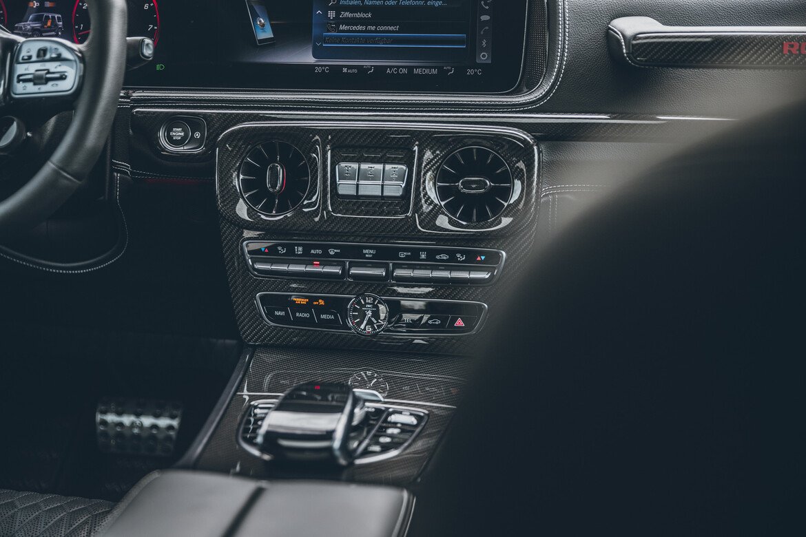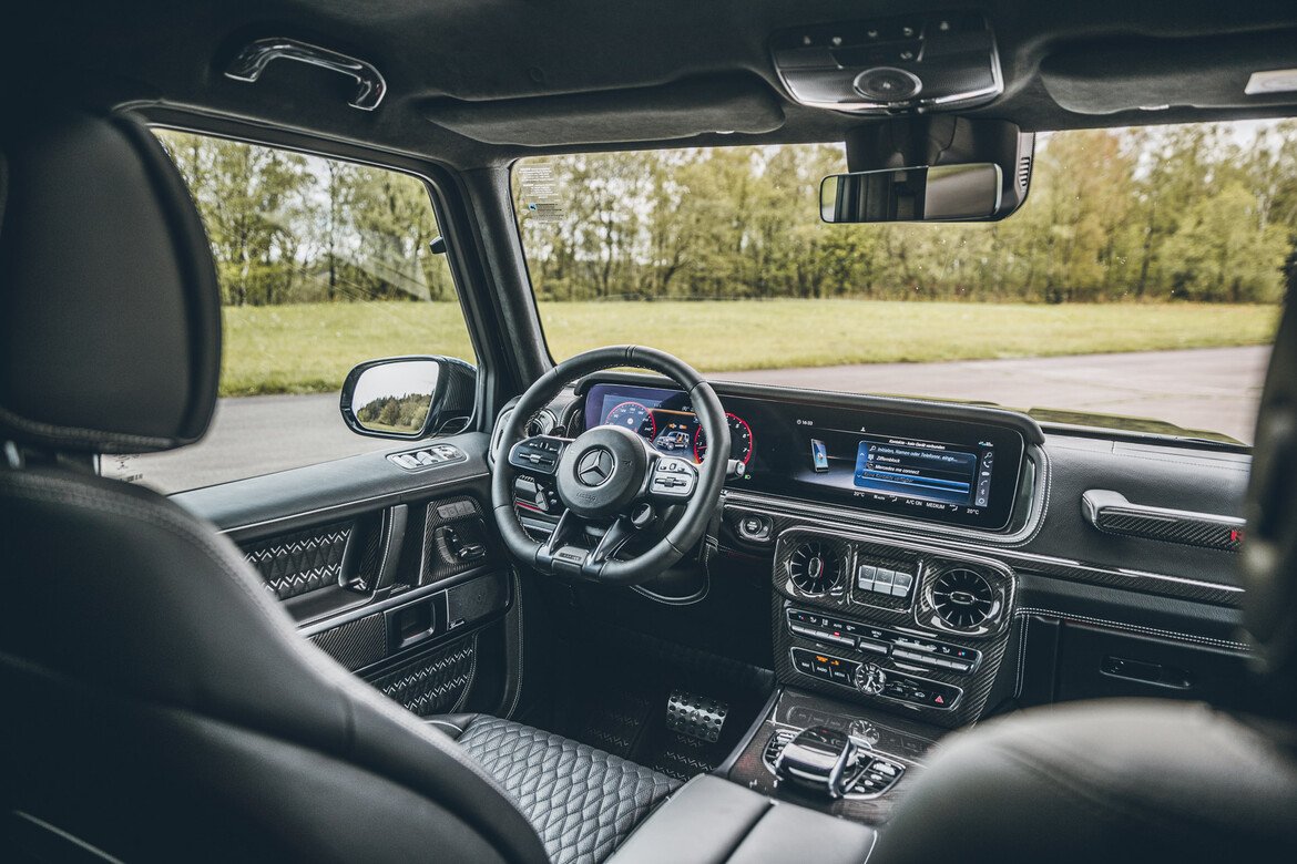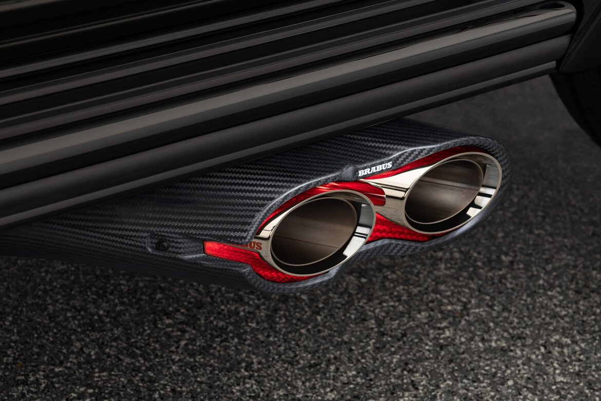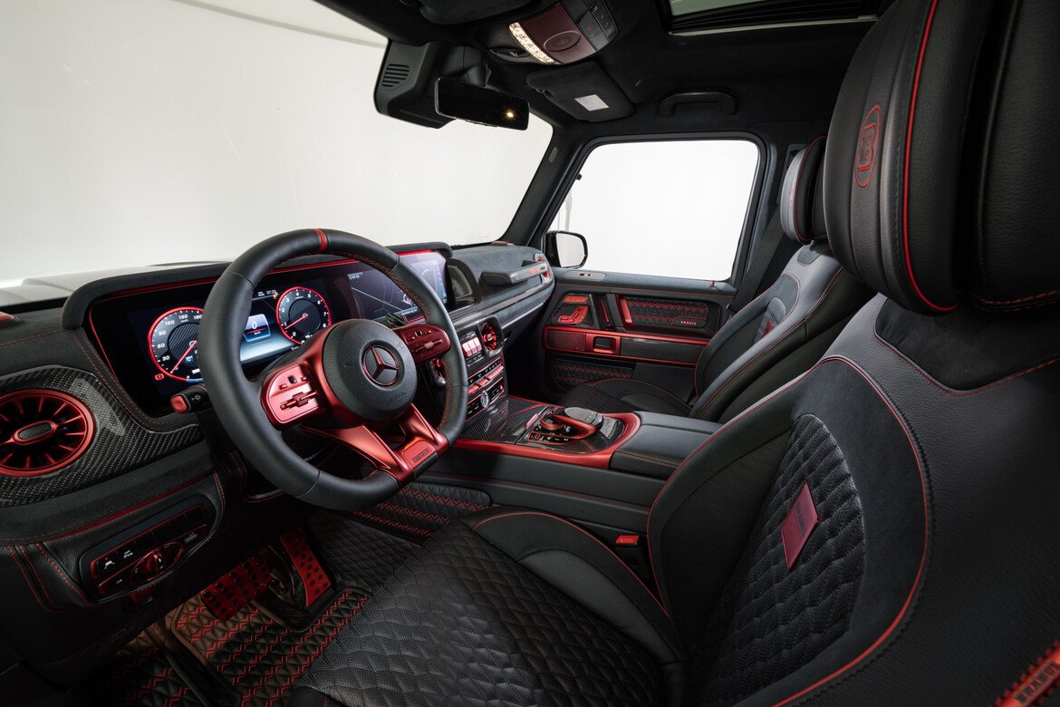 Brabus 900 Rocket ถือเป็น G-Class ที่ส่งตรงจากโรงงาน Brabus แบบจัดเต็มที่สุด มีมาให้เลือก 2 สีพิเศษ คือ เทา Stealth Grey และดำ Signature Black จัดเต็มด้วยชิ้นส่วนคาร์บอนไฟเบอร์ทั้งหมดตั้งแต่ ชิ้นสปอยเลอร์หน้า, กระจังหน้าดูดอากาศ RamAir, ชิ้นส่วนเสริมบังโคลน, สปอยเลอร์หลังคา, ดิฟฟิวเซอร์หลัง ชุดแต่ง Widestar ก็มาเต็มระบบ ยกตัวอย่างเช่น สเกิร์ตหน้า, สเกิร์ตหลัง, ตราโลโก้ Rocket ที่กระจังหน้ามีไฟเรื่องแสง, ฝากระโปรงหน้าคาร์บอนไฟเบอร์เงา, มือจับประตูคาร์บอนไฟเบอร์ เรียกว่าคาร์บอนแทบทุกจุด ท่อไอเสียออกข้างตัวรถเป็นปลายคาร์บอนฯ เพิ่มลูกเล่นด้วยไฟซ่อนสีแดงด้านในราวกับท่อจรวด ล้อให้มาแบบฟอร์จลาย Monoblock Z ขอบ 24 นิ้ว มีการติดตั้งจาน Aero-Discs ช่วยลดแรงต้านอากาศได้ด้วย ระบบกันสะเทือนก็เปลี่ยนใหม่เป็นของ Brabus RideControl พร้อมยางประสิทธิภาพสูงให้คุณเลือกได้เลยทั้งแบรนด์ Continental, Pirelli และ Yokohama