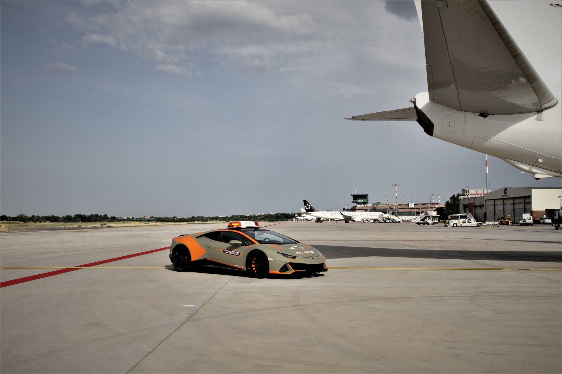 Lamborghini ต่อสัญญาความร่วมมือกับสนามบิน Bologna Guglielmo Marconi Airport เมืองโบโลญญ่า ประเทศอิตาลี นี่เป็นสัญญาครั้งที่ 7 ระหว่างพวกเขา โดยได้มีส่งมอบรถ Huracán EVO ตัวขับสี่ ให้ทางสนามบิน มีหน้าที่ไว้นำทางเครื่องบินขาเข้าขาออก ทั้งไปและกลับลานจอด Huracán EVO คันนี้ตกแต่งภายนอกพิเศษด้วยสีเขียวด้าน Verde Turbine Matt สุดเท่ สลับกับสีส้ม Arancione Matt ลวดลายธงหมากรุก มีข้อความ “Follow Me in Our Beautiful Country” บนฝากระโปรงหน้า และบานประตูรถเสริมลายธงอิตาเลี่ยน ล้อเป็นแบบฟอร์จขอบ 20 นิ้ว ลาย Narvi สีดำเงา และก็ติดไฟไซเรนบนหลังคา รวมถึงมีวิทยุใช้ติดต่อกับหอบังคับการบินได้ รถคันนี้จะอยู่ประจำการในสนามบินจนถึง 7 มกราคม 2565