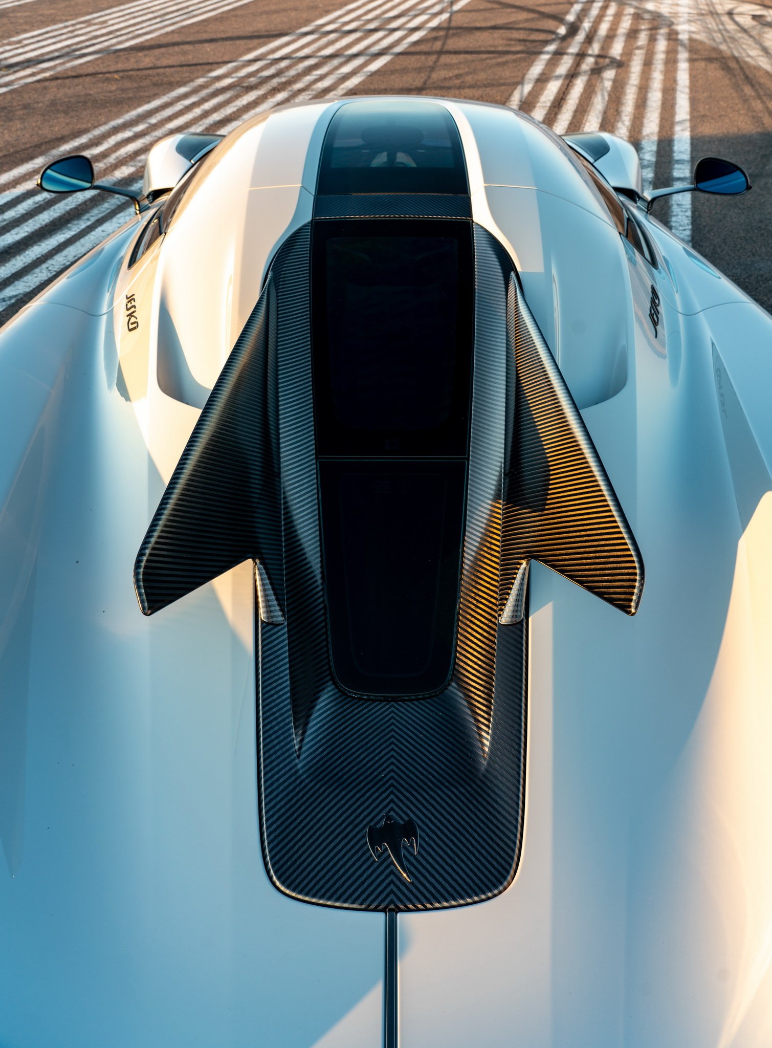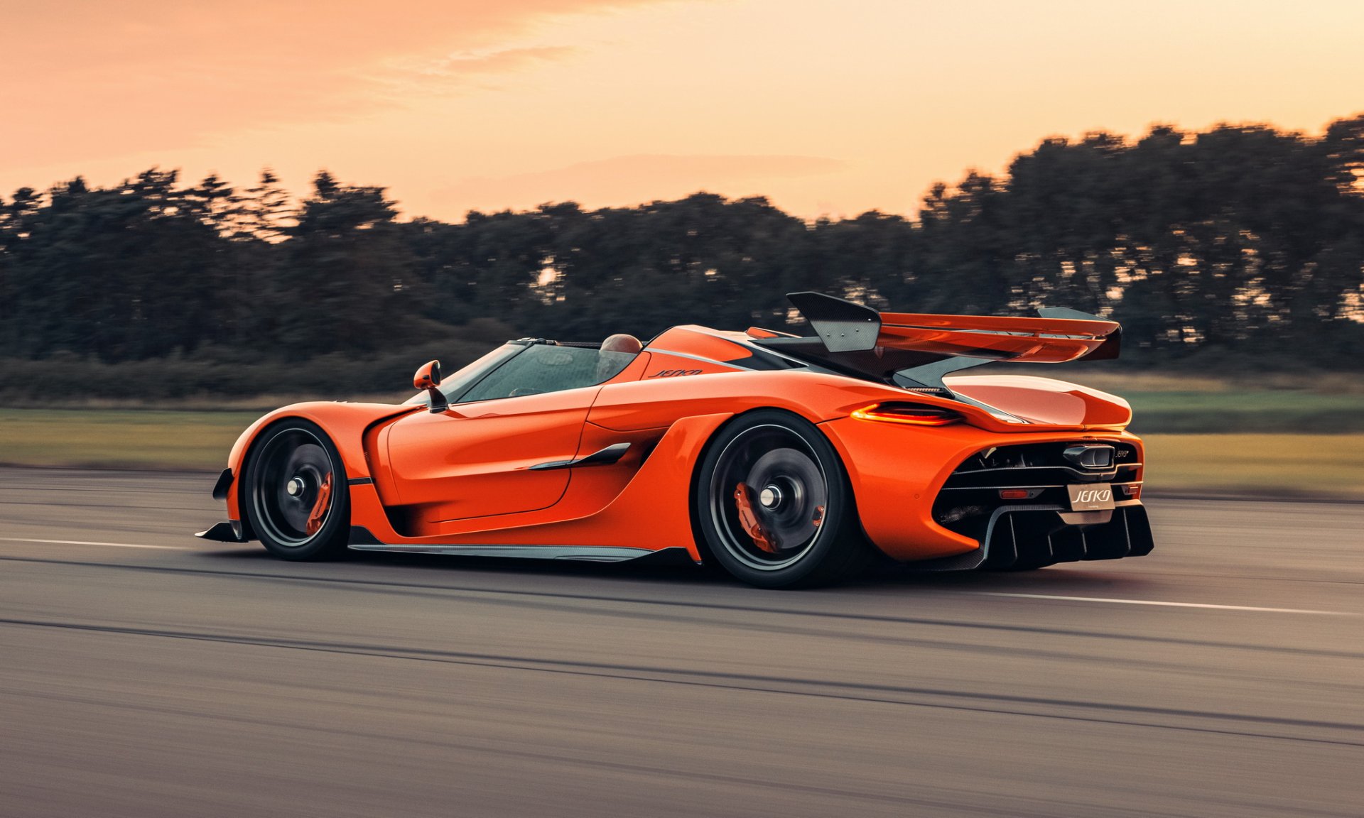 Koenigsegg Jesko Absolut ตัวนี้เป็นสายทำท๊อปสปีดโดยเฉพาะ น้ำหนักรถเปล่าที่ 1,290 กก. (เบากว่า Jesko 30 กก.) ช่วงล่างถูกเซทใหม่ให้นุ่มกว่า ด้านแอร์โรไดนามิก ตัดครีบ splitter ที่กันชนหน้าแบบ Jesko ออกไป มีการยืดส่วนท้ายรถยาวกว่าตัว Jesko อีก 85 มม. ลู่ลมด้วยค่าสัมประสิทธิ์แรงต้านอากาศเพียง 0.278 Cd. แรงกดสูงสุดลดลงอย่างมากเหลือเพียง 150 กก. เพราะตัดปีกท้ายออก และแทนด้วยครีบท้ายแบบแยก 2 ชิ้น ช่วยรักษาสเถียรภาพในความเร็วสูง