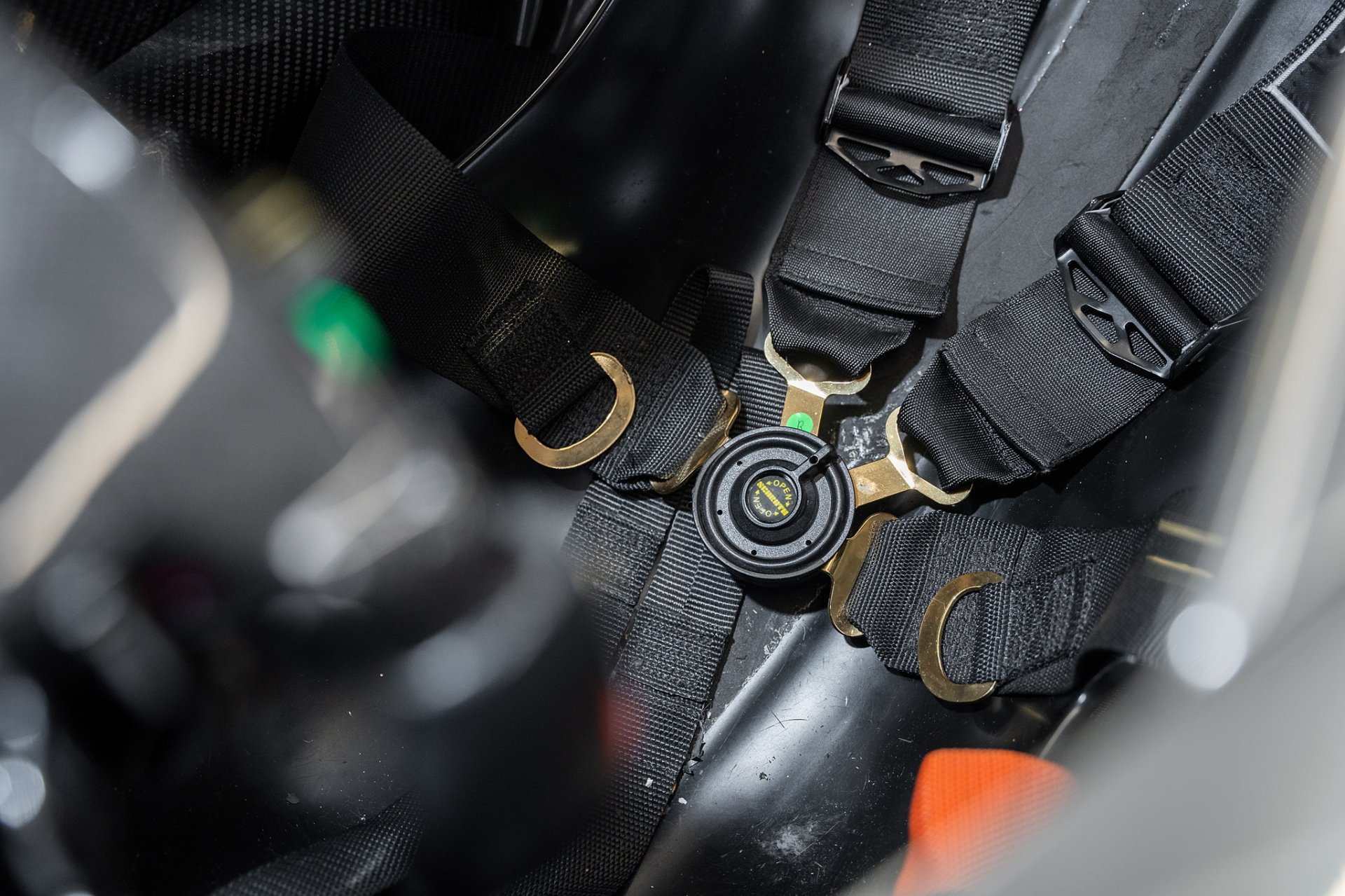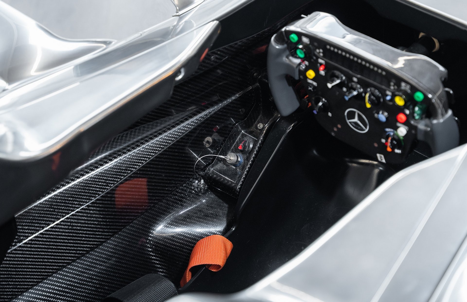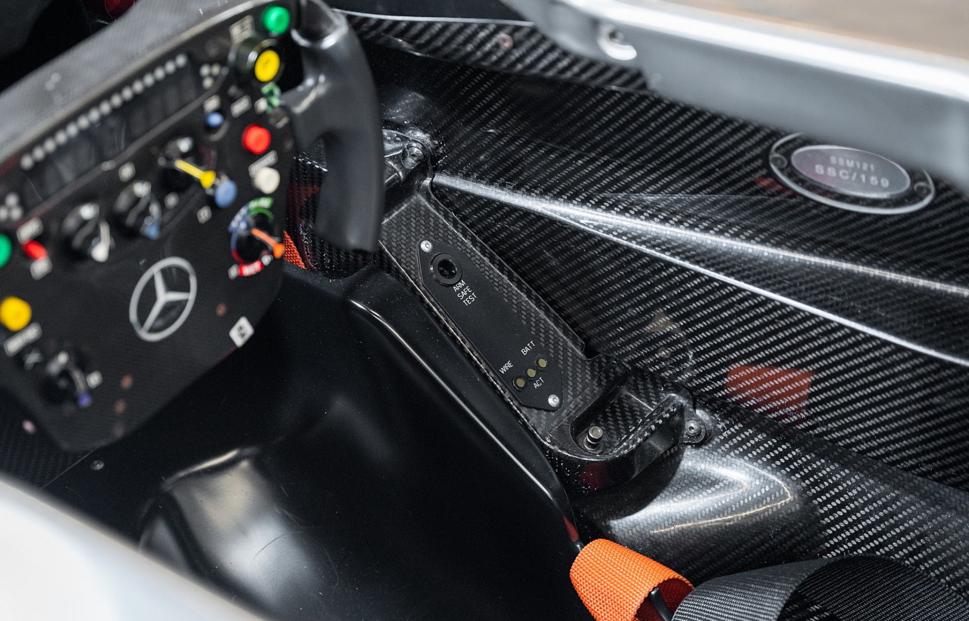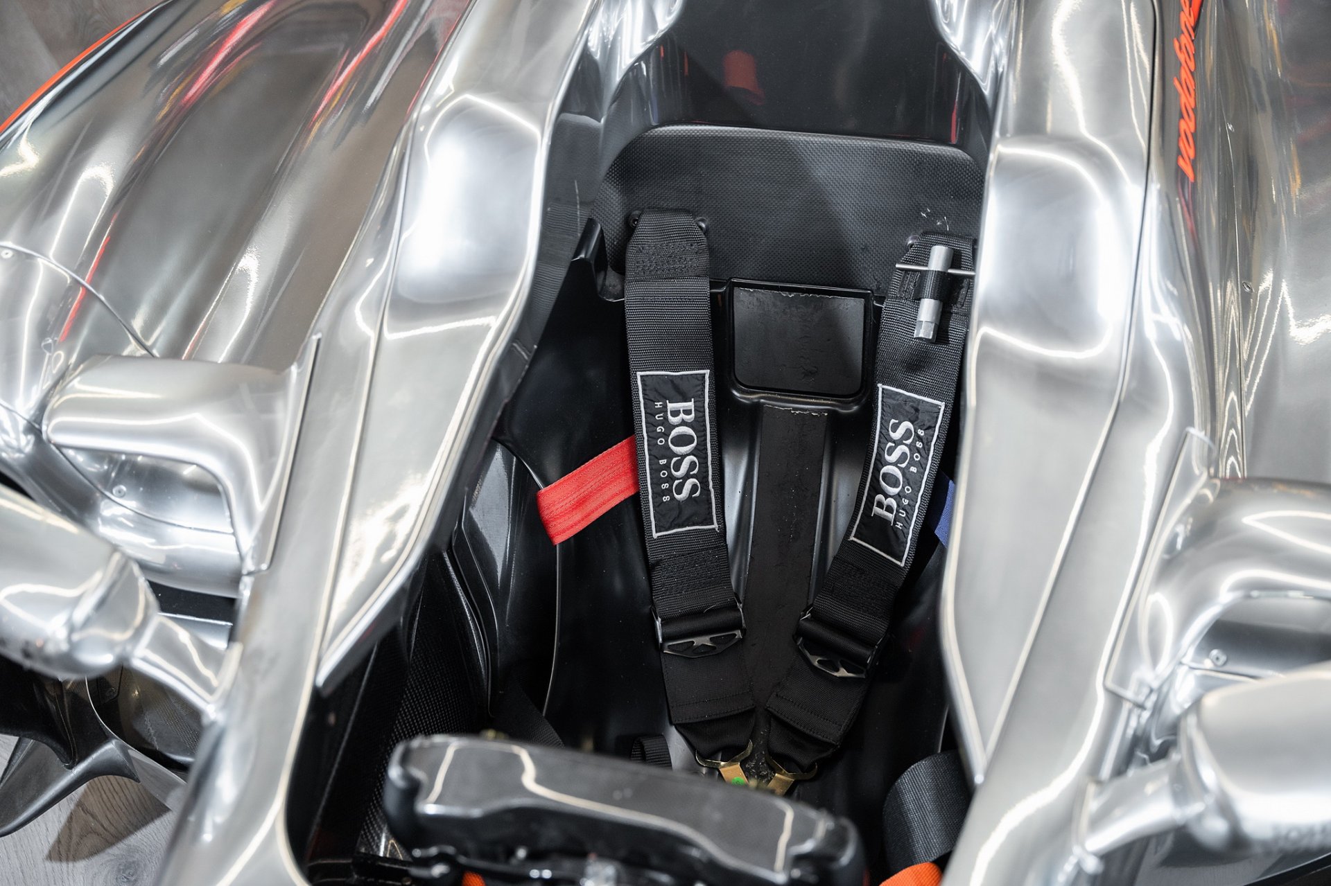 ภายในค็อกพิทอ่างโมโนค๊อกคาร์บอนไฟเบอร์ ติดตั้งพวงมาลัยจำลองเป็นงานคาร์บอนไฟเบอร์ หน้าจอสามารถโชว์ไฟเปลี่ยนเกียร์ปุ่มโหมดต่างๆ ได้สมจริง เข็มขัดนิรภัยแบบ 4 จุด จาก Schroth ปักโลโก้ Hugo Boss และก็มีแถบโลหะระบุหมายเลขประจำรถไว้