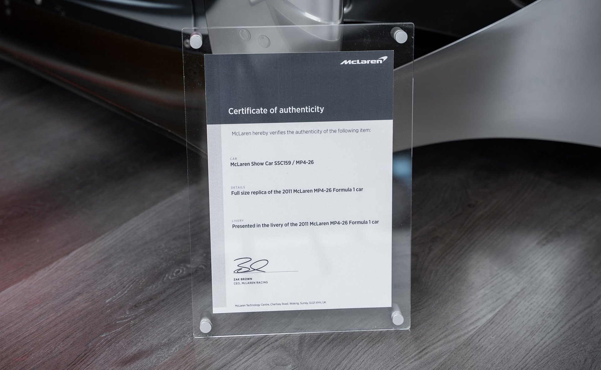 รถจำลอง McLaren MP4-26 เปิดประมูลผ่านทาง collectingcars ผู้ประมูลชนะจะได้รถพร้อมใบรับรองของแท้ใส่กรอบ ซึ่งลงนามโดย Zak Brown ซีอีโอของ McLaren Racing ถ้าคุณได้ครอบครองอยากเอารถไปไว้ส่วนไหนของบ้าน??